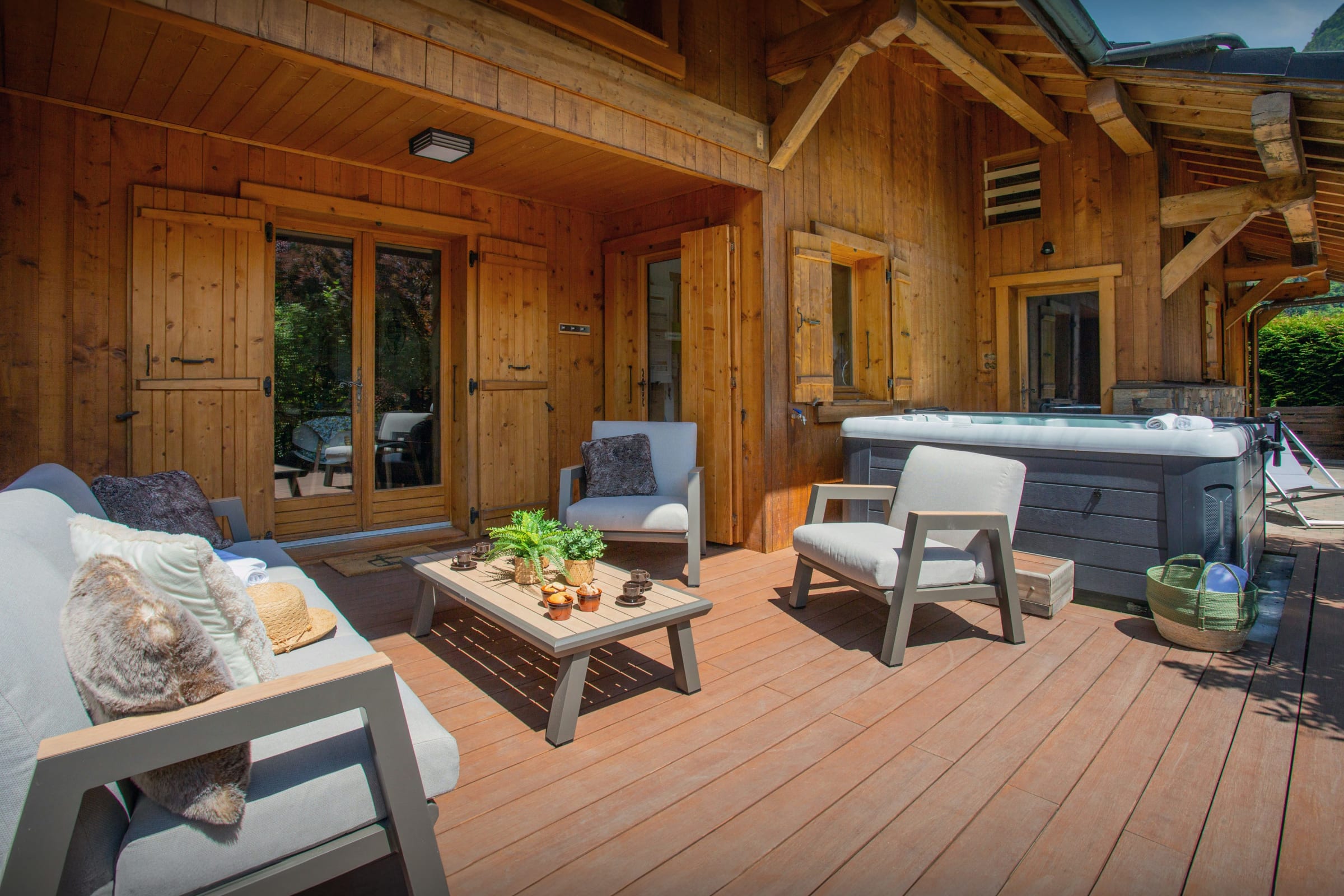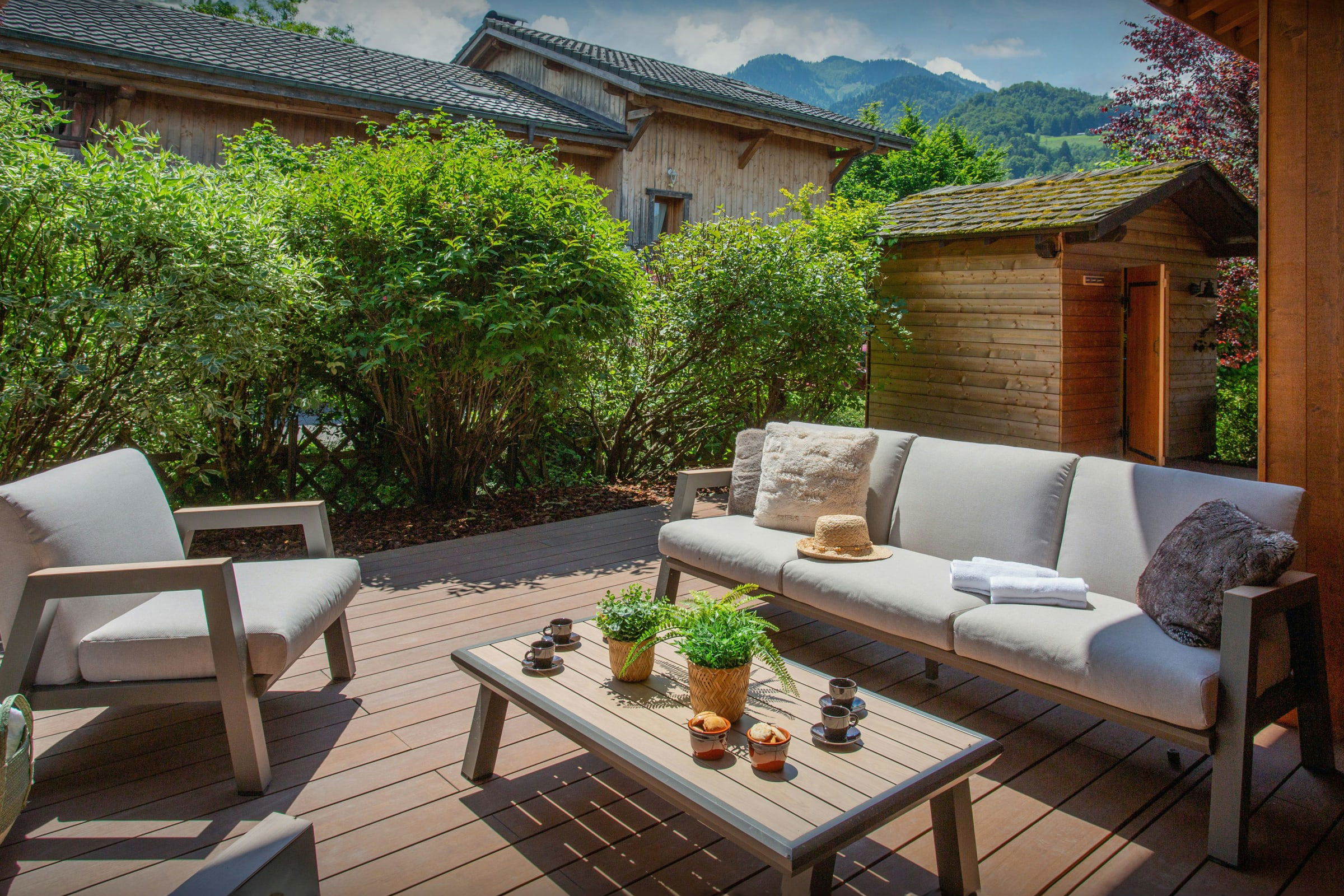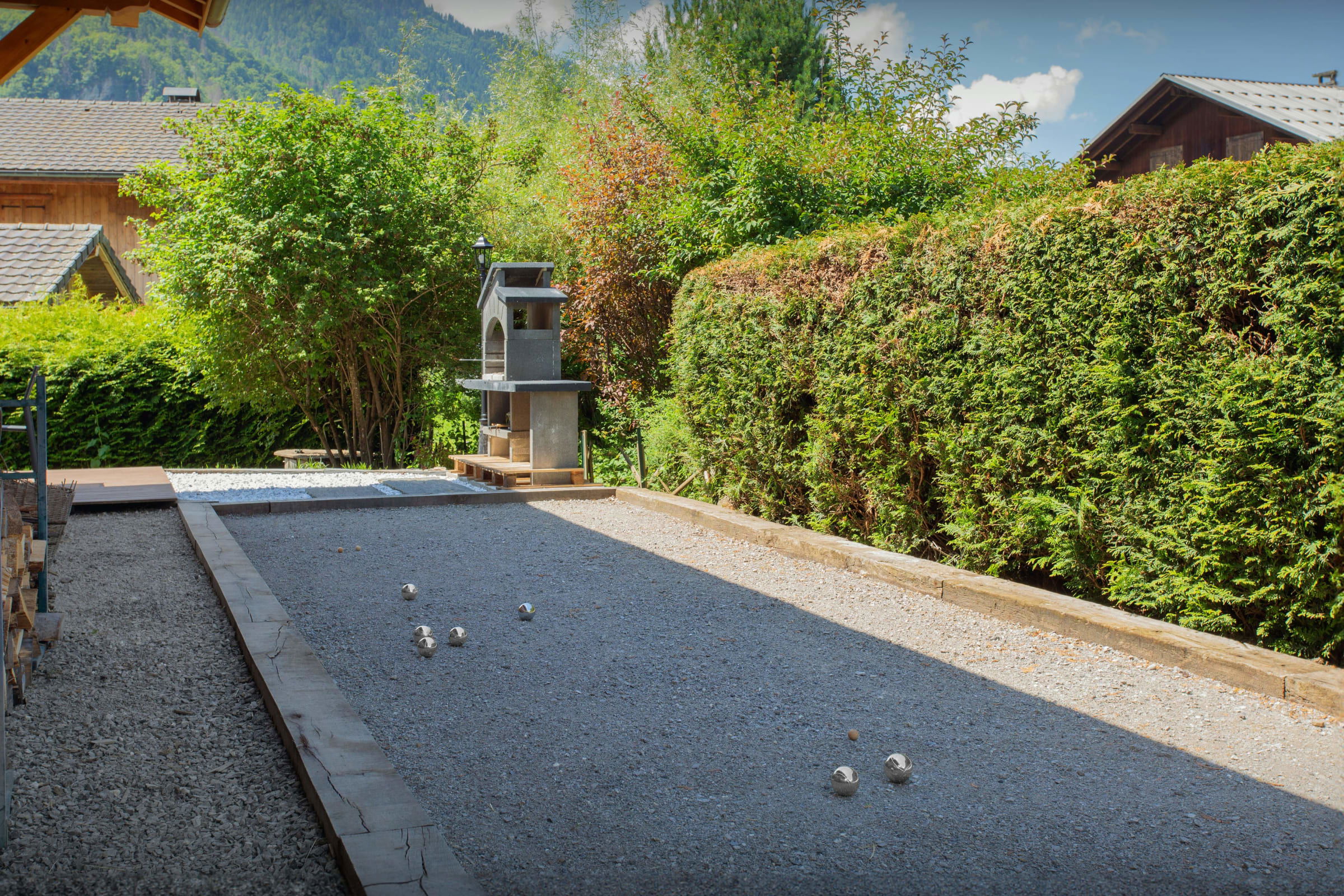 There's a spacious furnished terrace off the living area and a small garden with a petanque court. Although the chalet is in a residential area, the owners plan to keep the garden private by screening it with plants and trees.