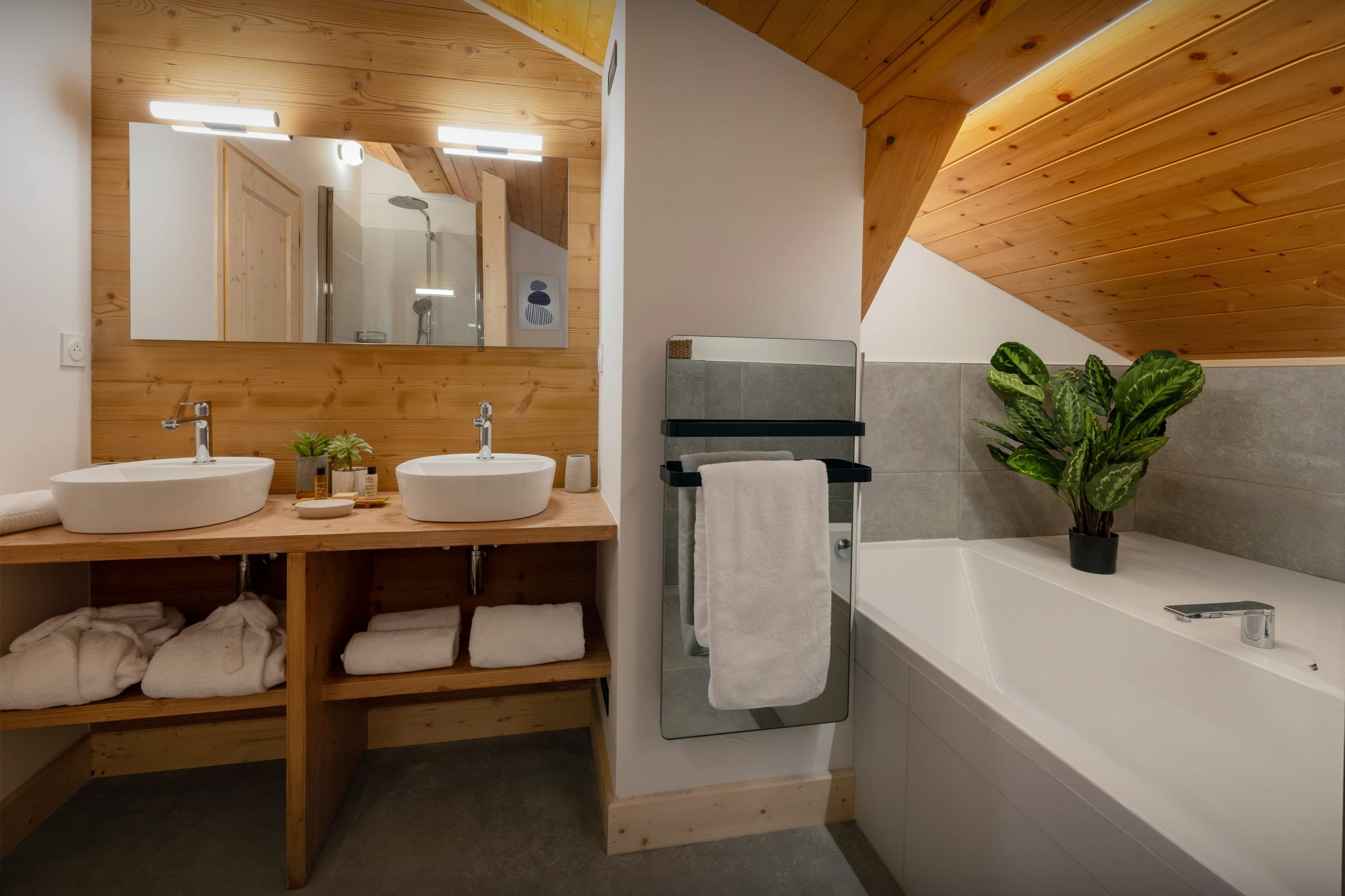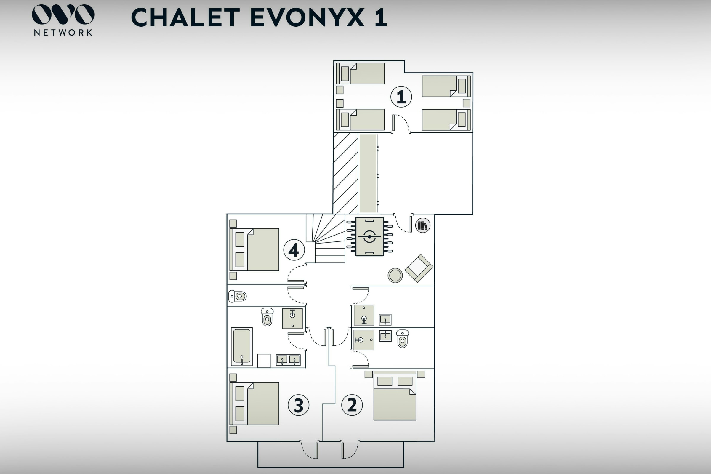 Chalet Evonyx is a two-storey chalet for up to 12 guests, with five bedrooms, four bathrooms, a hot tub, sauna and pétanque court.