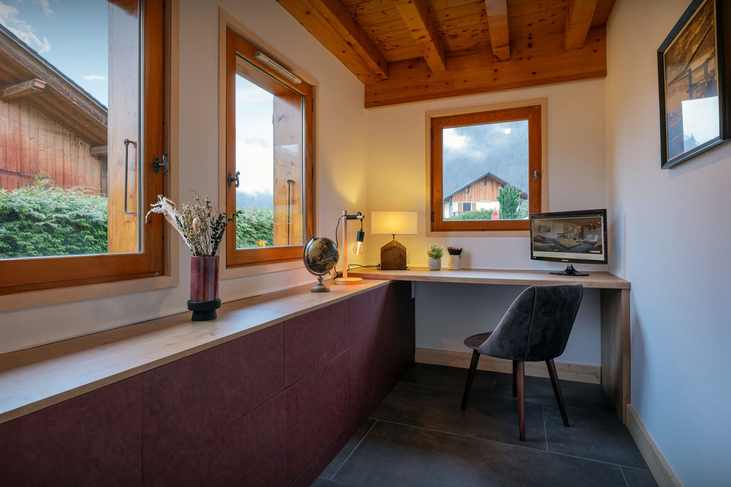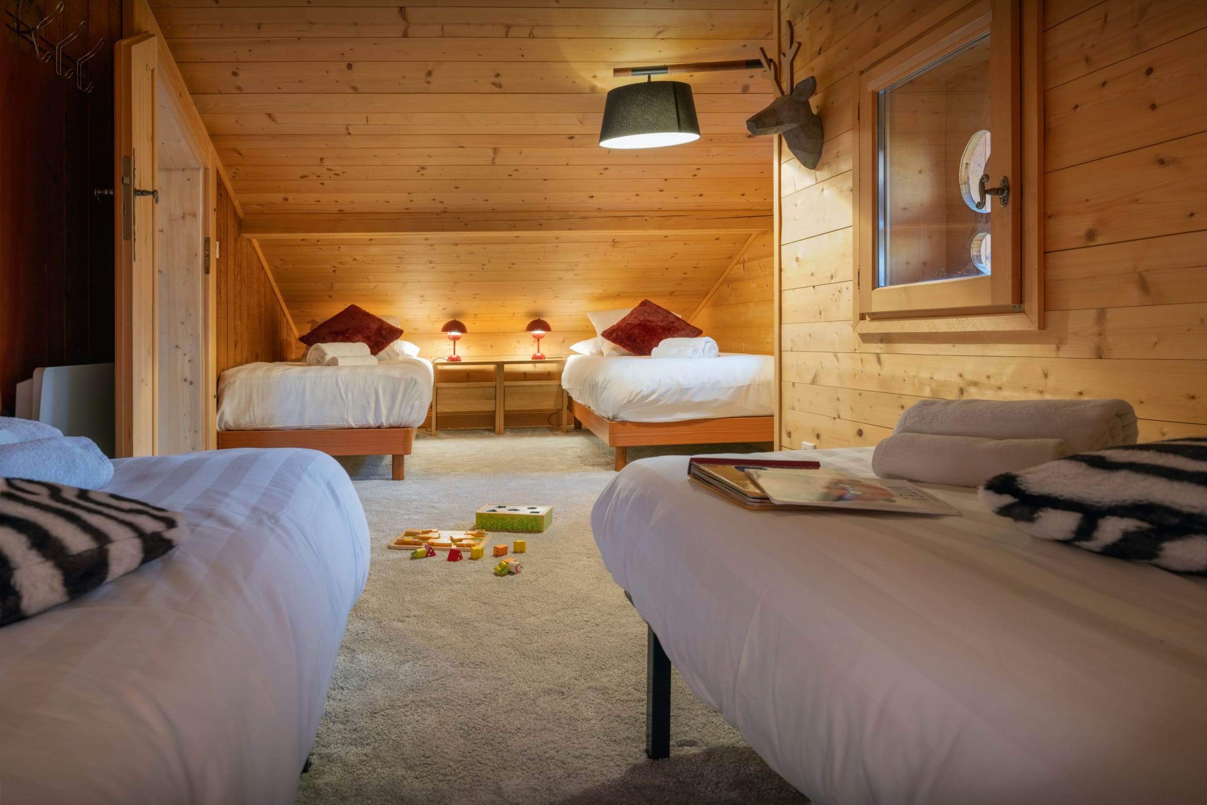 As well as flexible sleeping arrangements, family-friendly Chalet Evonyx also has a playroom for children, a reading area on the landing and an office space for guests who need to keep up with work during their stay.