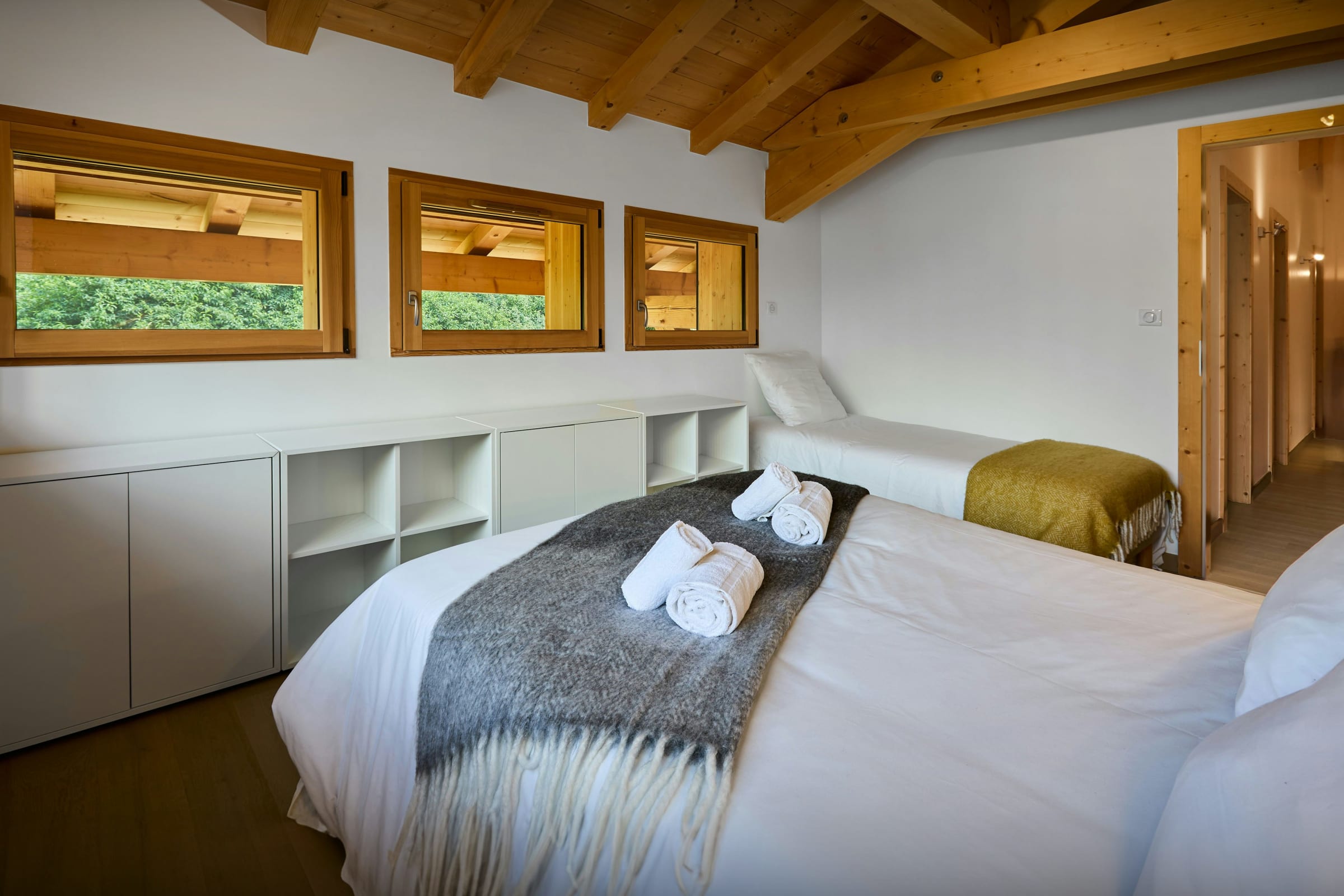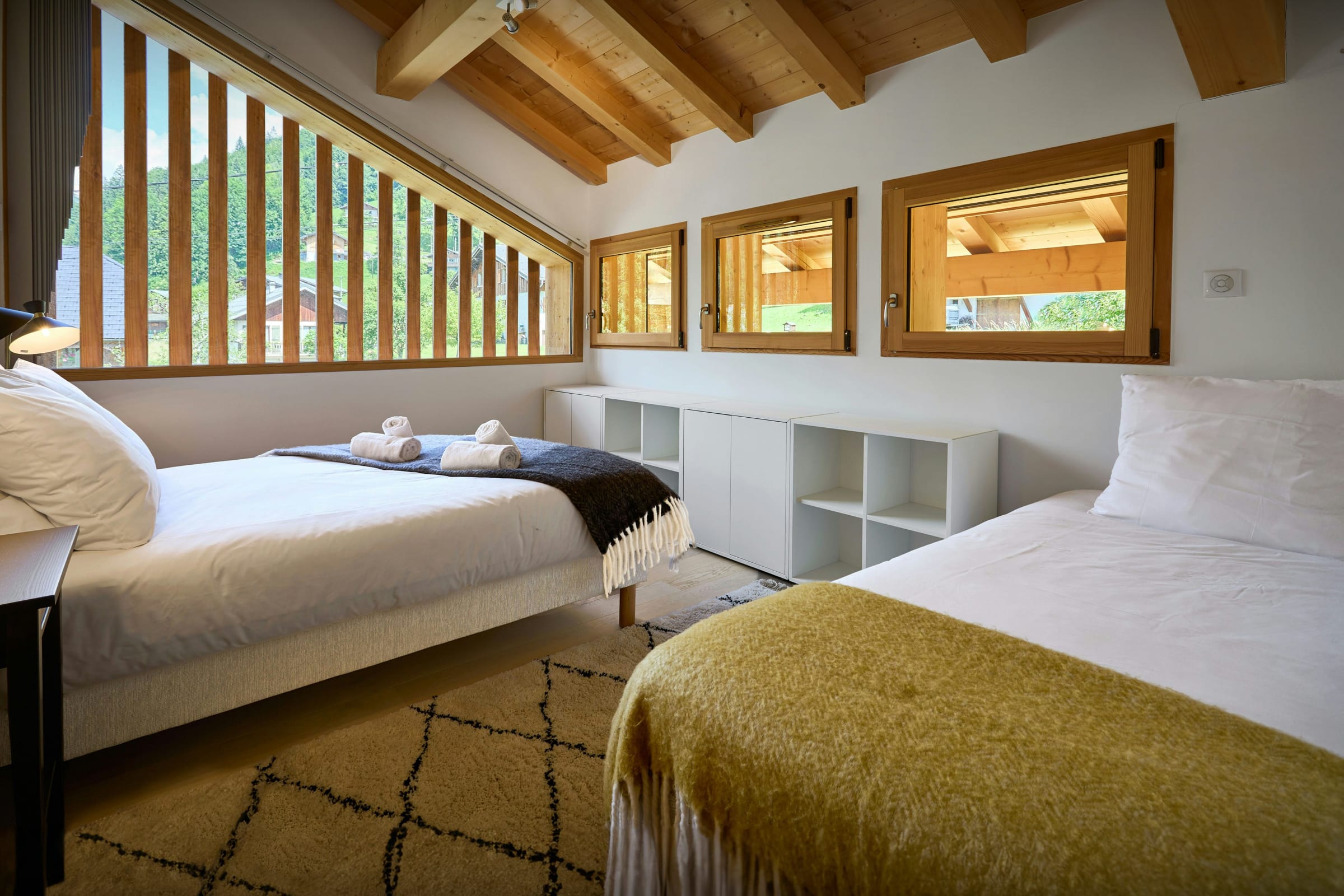 Chalet Morris is a two-storey chalet for up to 13 guests, with five bedrooms and three bathrooms.