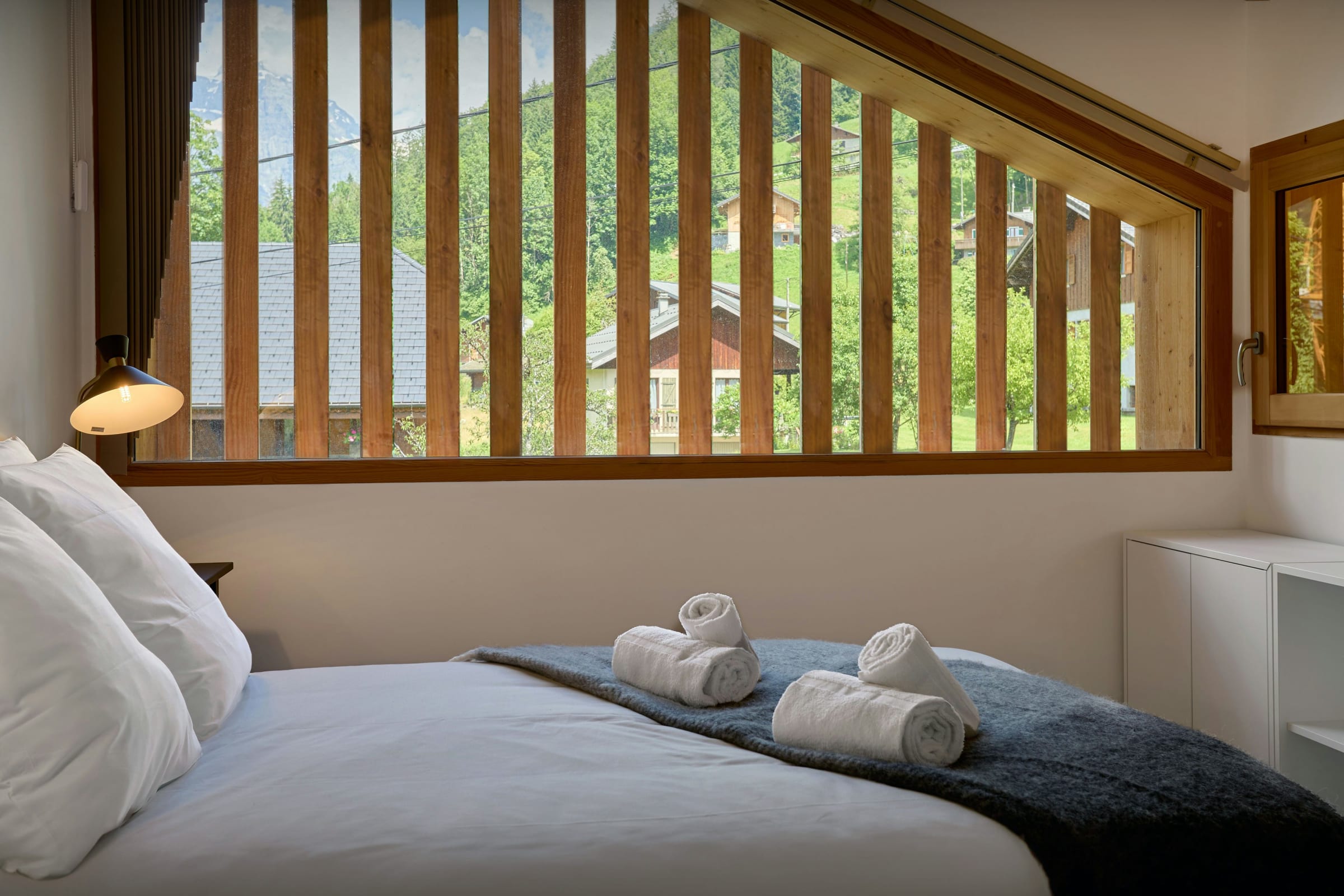 Its relaxing, neutral decor reflects its wonderful location in the beautiful village of Sixt-Fer-à-Cheval, which is surrounded by stunning scenery — don't miss the Cirque du Fer-à-Cheval, a wonderful natural granite amphitheatre, and the wonderful waterfall walks nearby.