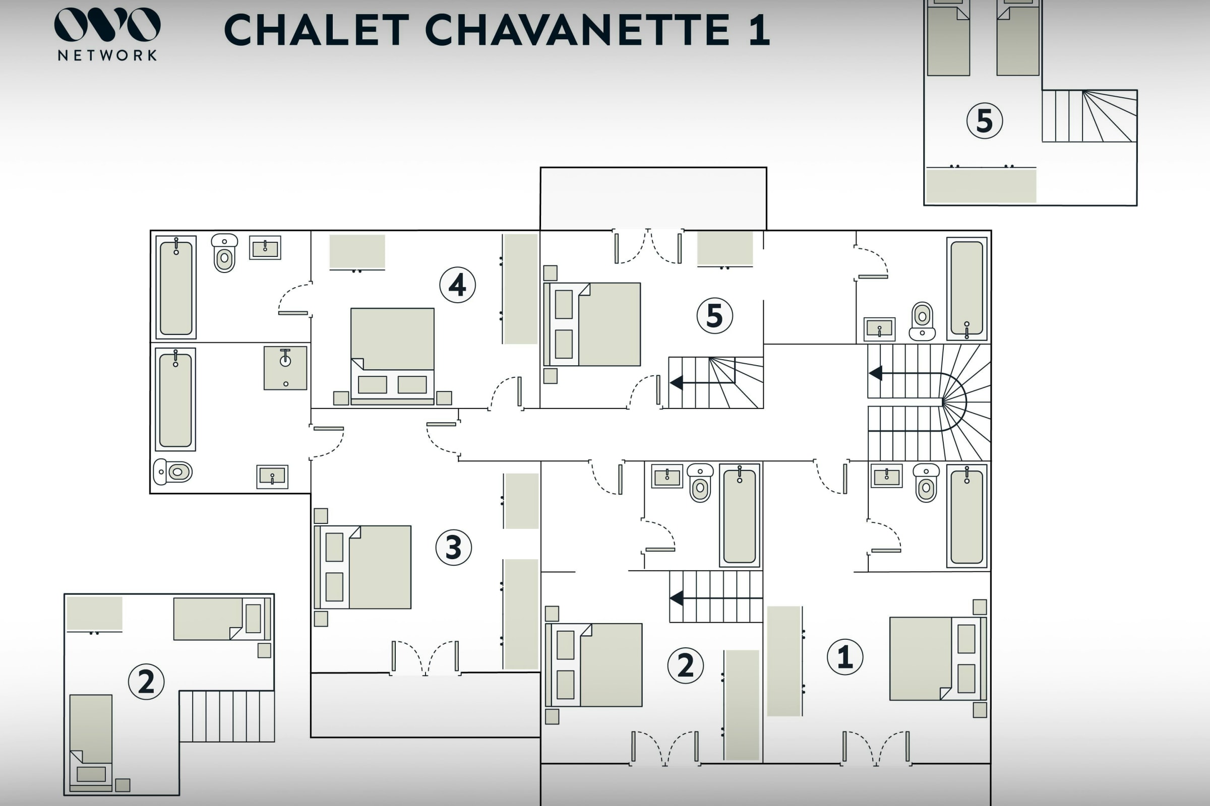 PLEASE NOTE: The maximum capacity for Chalet Chavanette is 12 guests (10 adults maximum), to ensure that all guests enjoy plenty of space. However, there are two extra children’s beds on the mezzanine, to allow for more flexible sleeping arrangements. A tenant/caretaker lives in an apartment on the lower ground floor. However, he has his own entrance and parking area and will not affect your privacy.