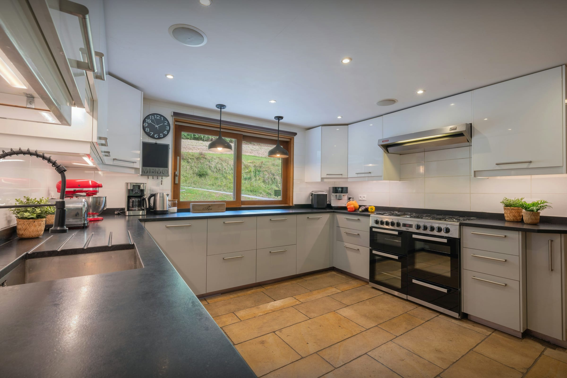The kitchen is separate from the rest of the living area and has everything you need to cater for a large group, including a large fridge, a freezer and two dishwashers.