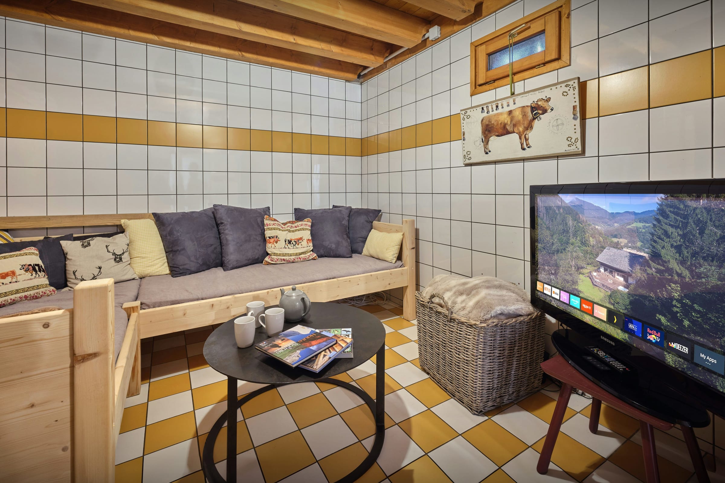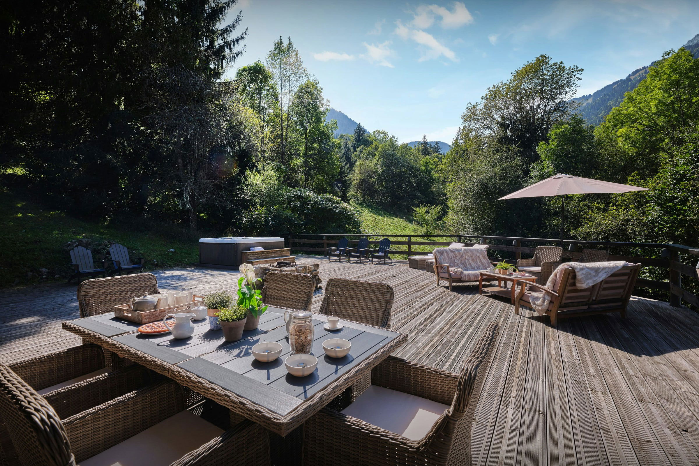 In good weather, the terrace is the place to be – there's a hot tub with great views of the mountains, a dining table where you can enjoy a barbecue, or sunbeds where you can relax and listen to the nearby river. And in the winter, you can light the fire pit and enjoy some stargazing!