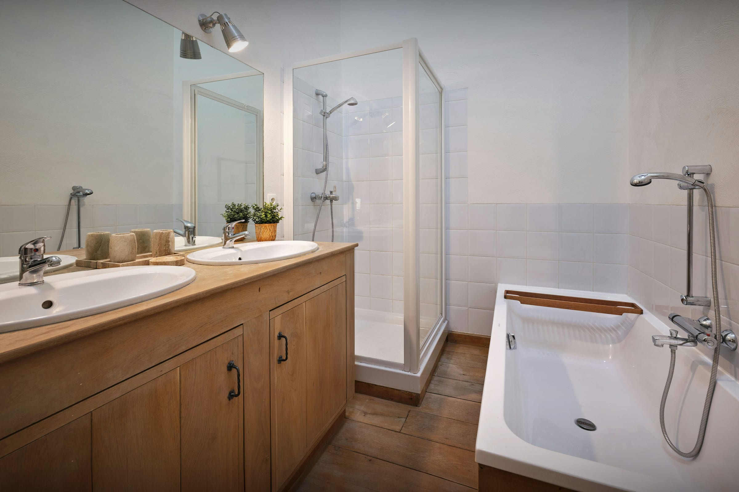 There are six double bedrooms on the floor, including two master suites with televisions and their own bath/shower rooms. These rooms can be arranged with a king-size bed or two single beds. The remaining four bedrooms each have large double beds (two can also be arranged with two single beds) and en-suite shower rooms.