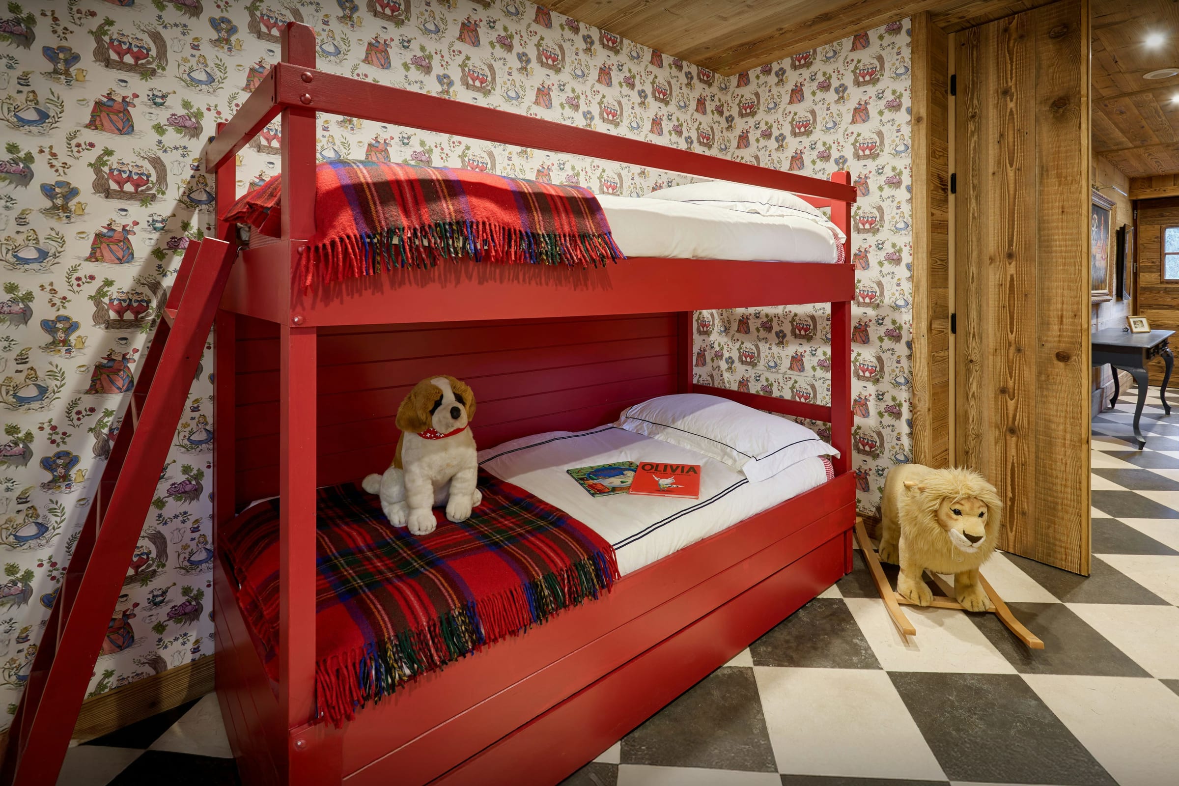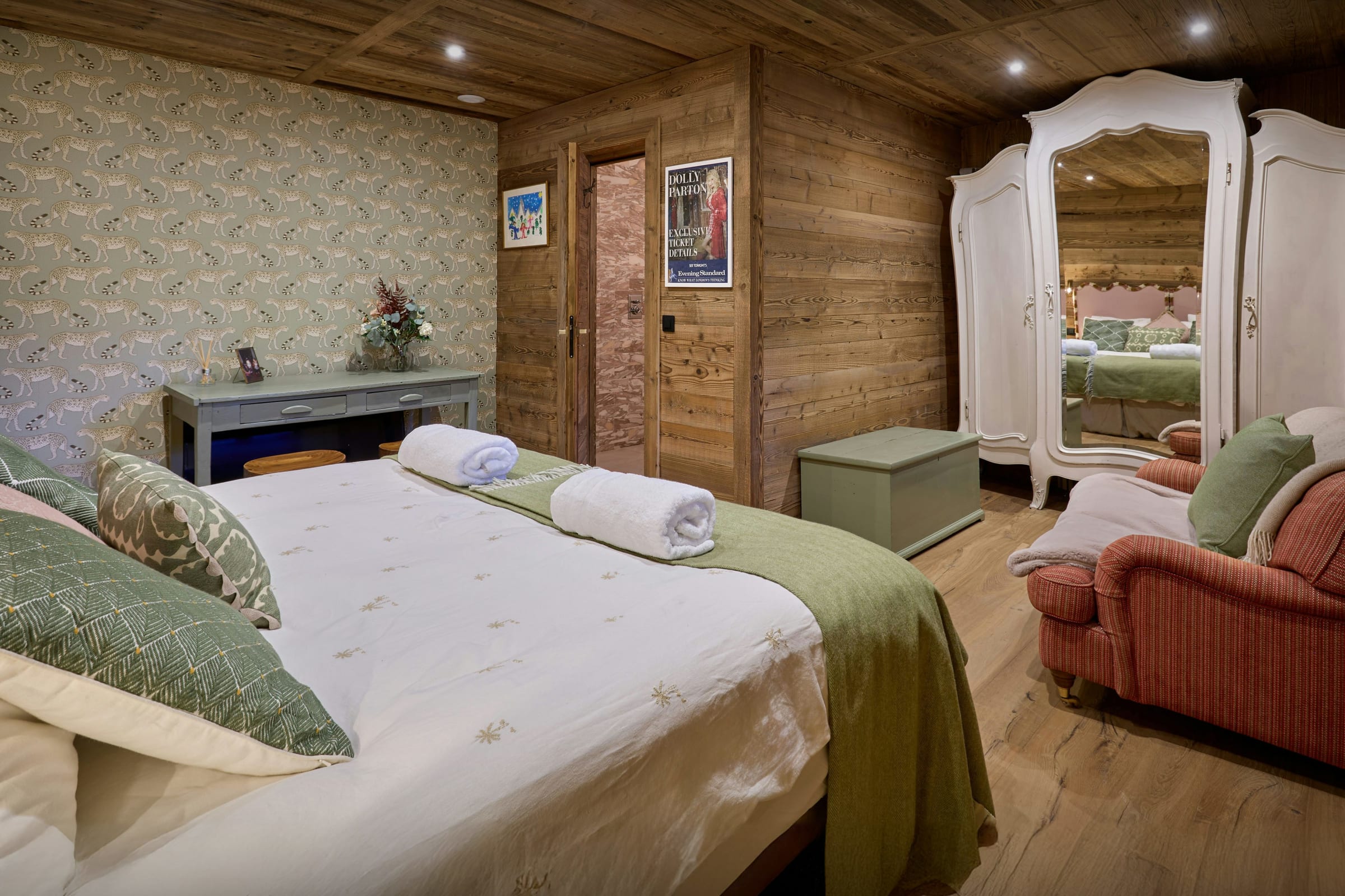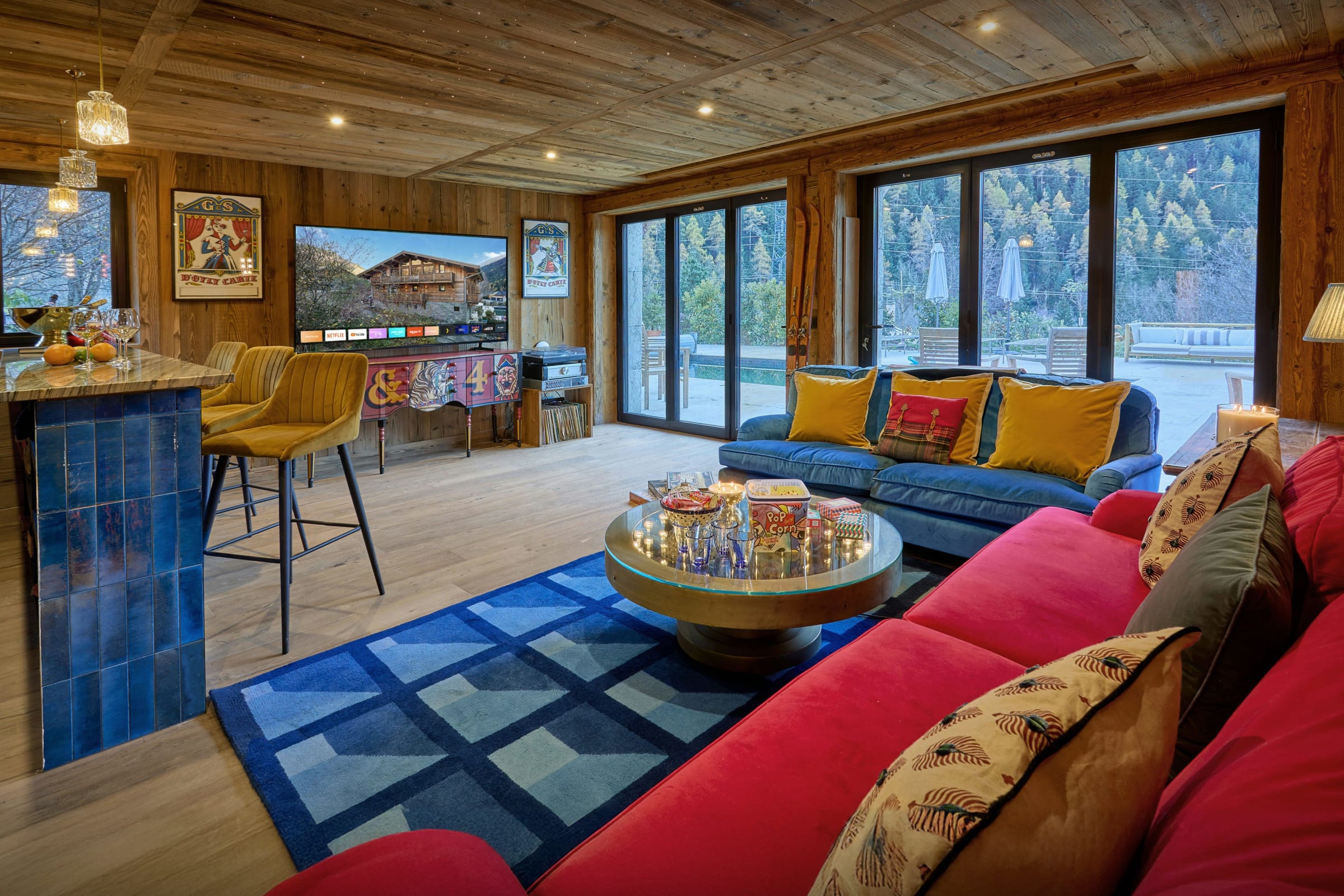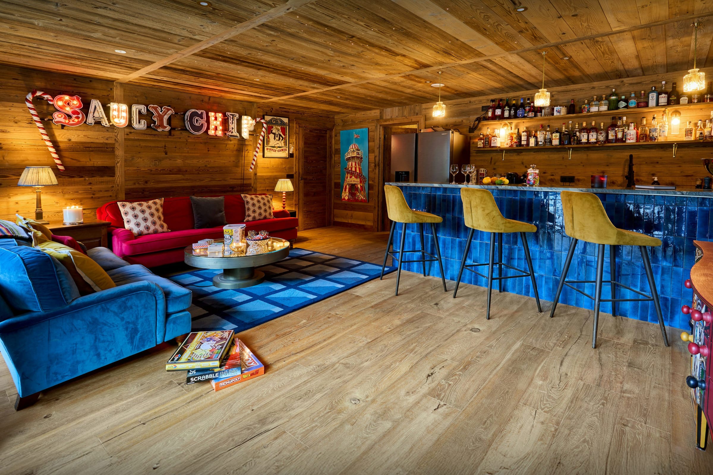 There's a huge sense of fun about this chalet – it really lives up to its name of Chalet Wonderland! The ground floor bar and TV room is decorated in a vintage fairground style, and the colourful vibe runs throughout the property. The games room opens onto the terrace, where you can take a dip in the outdoor pool from 15 June to 15 September.
