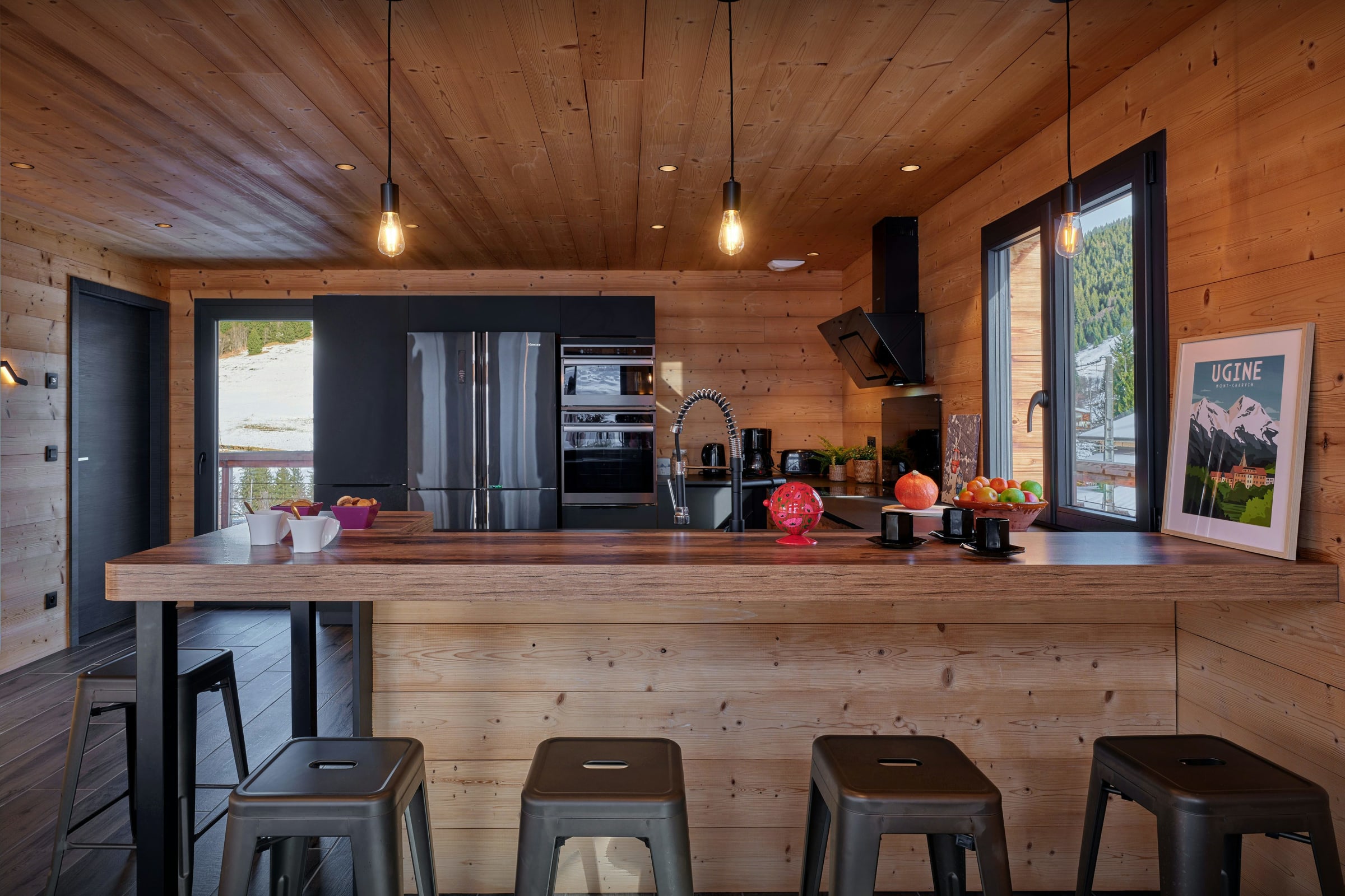 Chalet NDB is a four-bedroom, two-bathroom ski-in ski-out chalet on three floors. It is also right next door to one of Notre-Dame-de-Bellecombe's ski slopes, and just 700m from the lift.