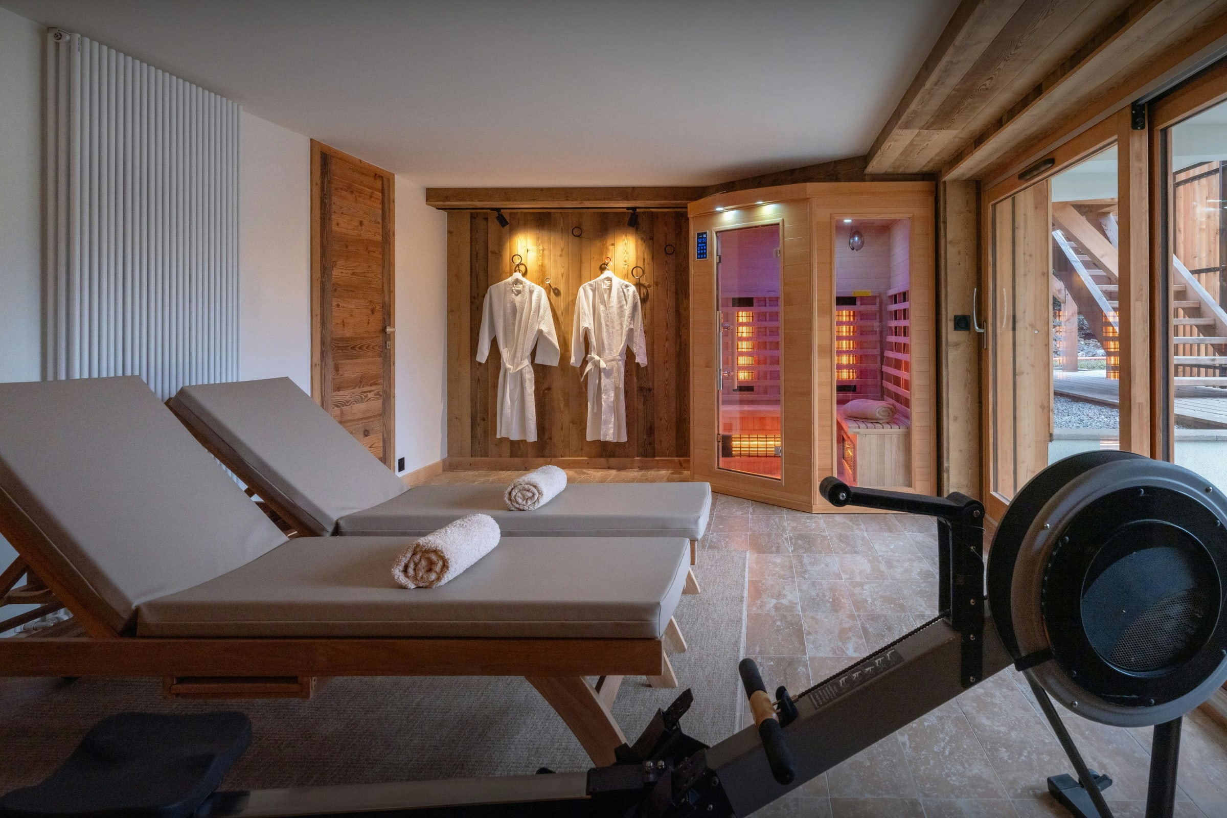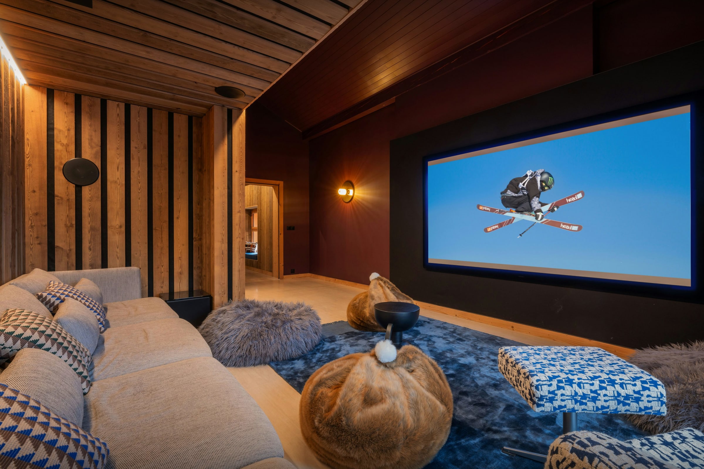 Chalet La Parenthèse is a contemporary , three-storey chalet for 15, with up to seven bedrooms and six bathrooms, as well as a cinema room, sauna, relaxation area and outdoor hot tub.