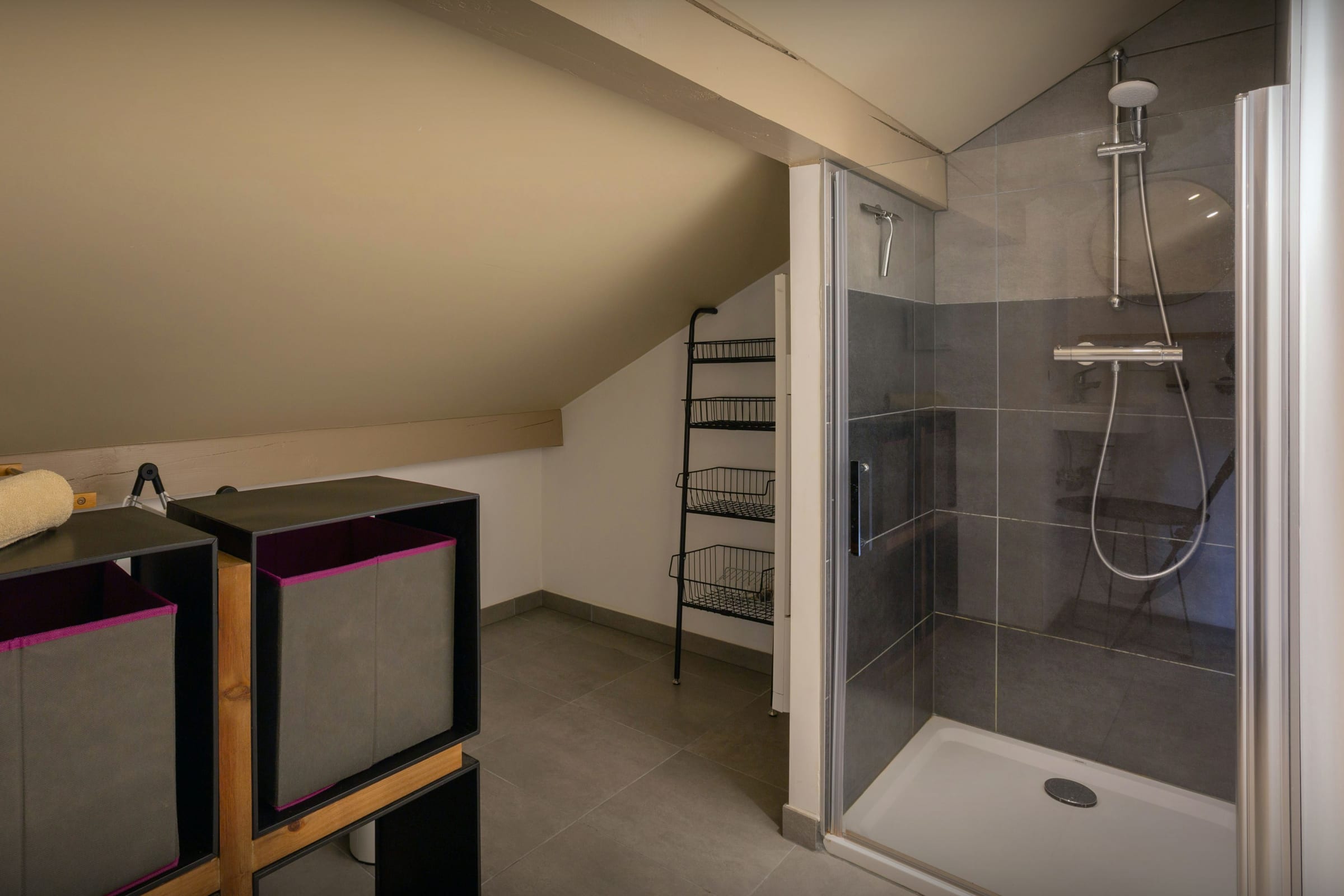 The property has four bedrooms, spread over three floors. There is one double room with an en-suite shower room, another with a desk and TV, and a third double room with an extra single bed and washbasin. Finally, there is a children’s room with three single beds under the eaves. The bedrooms on the top floor share a large shower room and separate toilet. The floor has a separate toilet. The ground floor has a shower room with toilet.