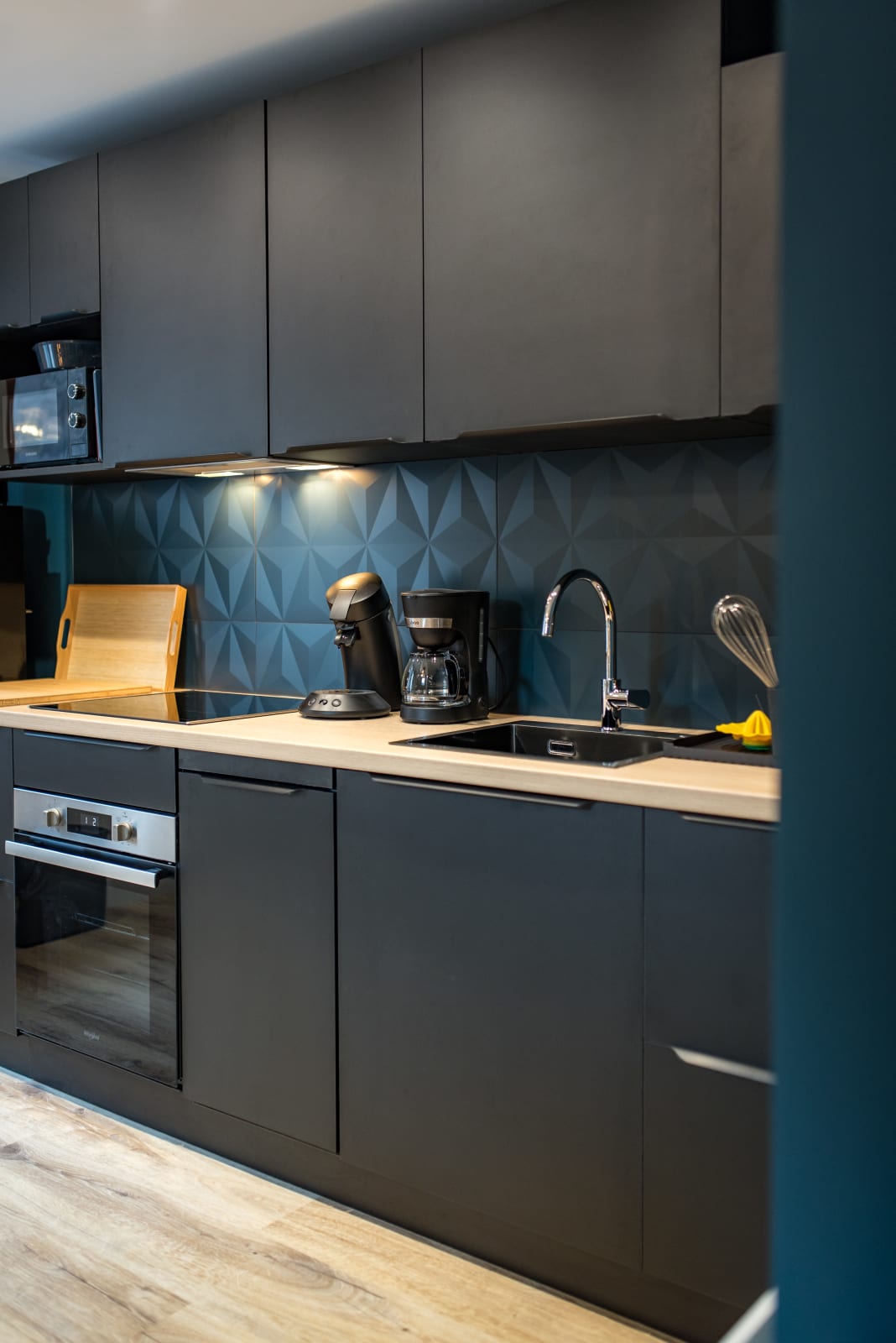 Along with the sofa bed, the apartment includes one bedroom with a queen-size bed (160 x 200 cm), one single bed, and one pull-out bed (90 x 190 cm), suitable for adults and offering a total of six sleeping spots.