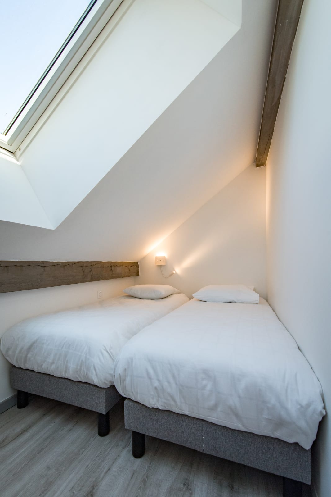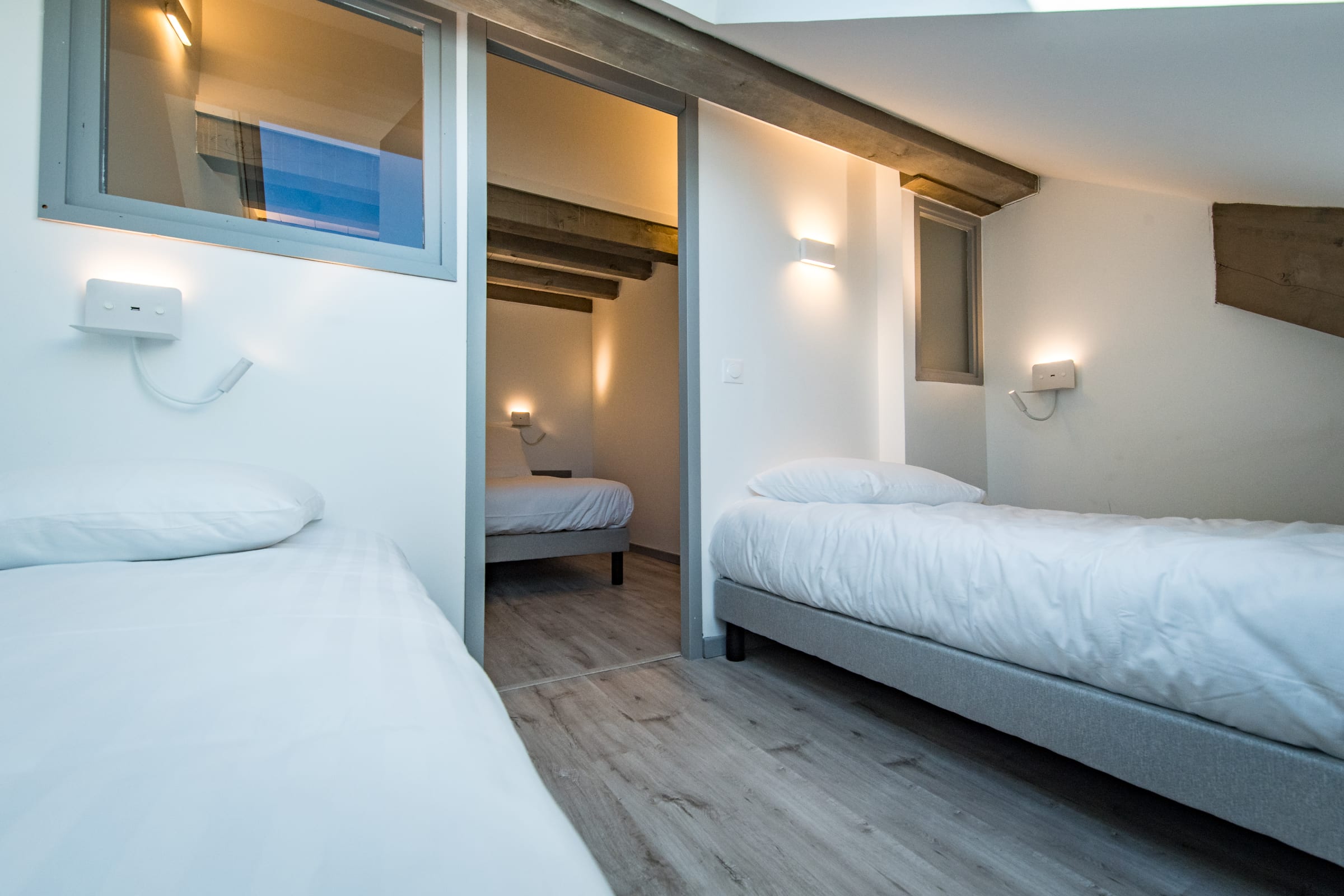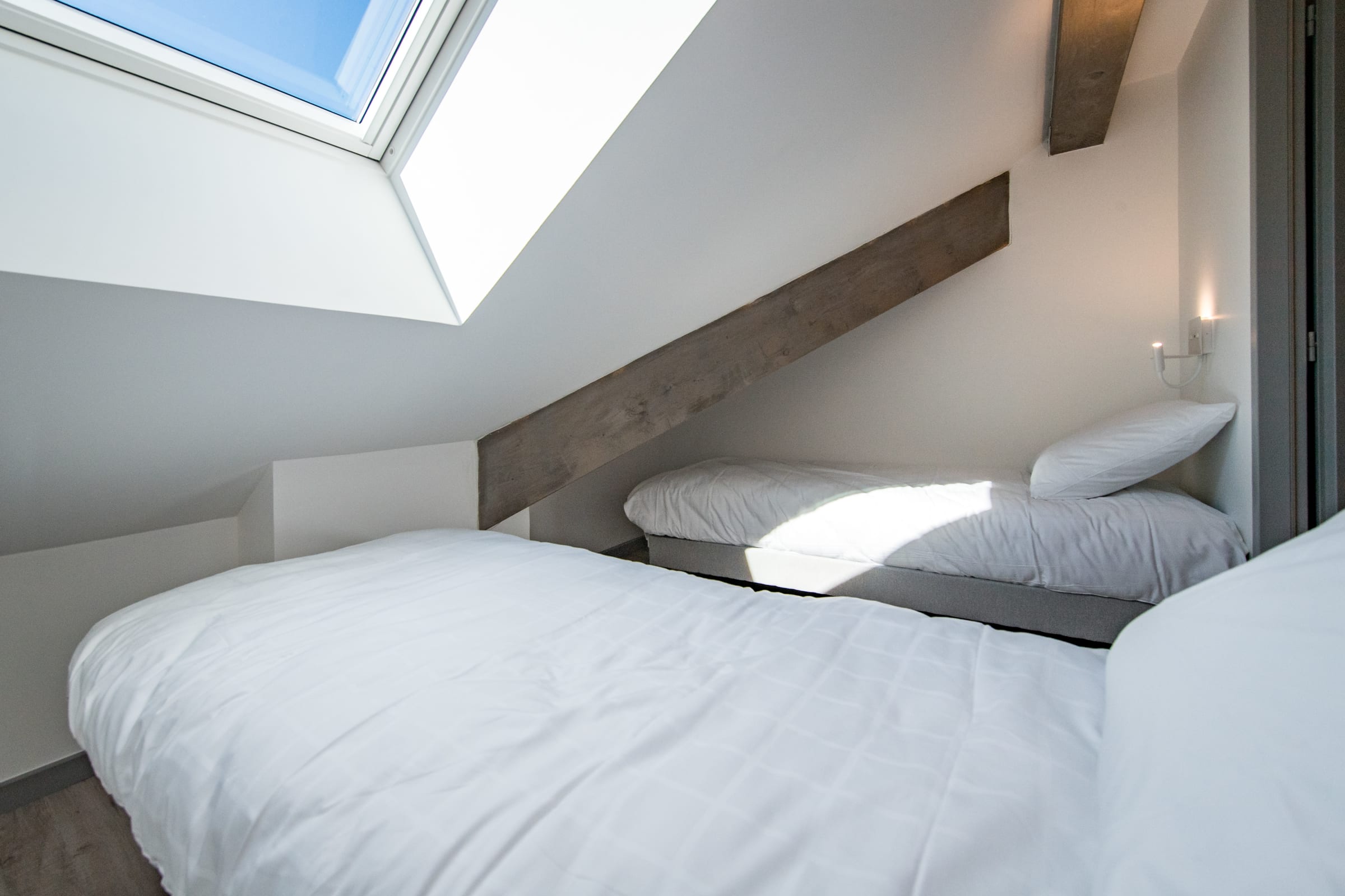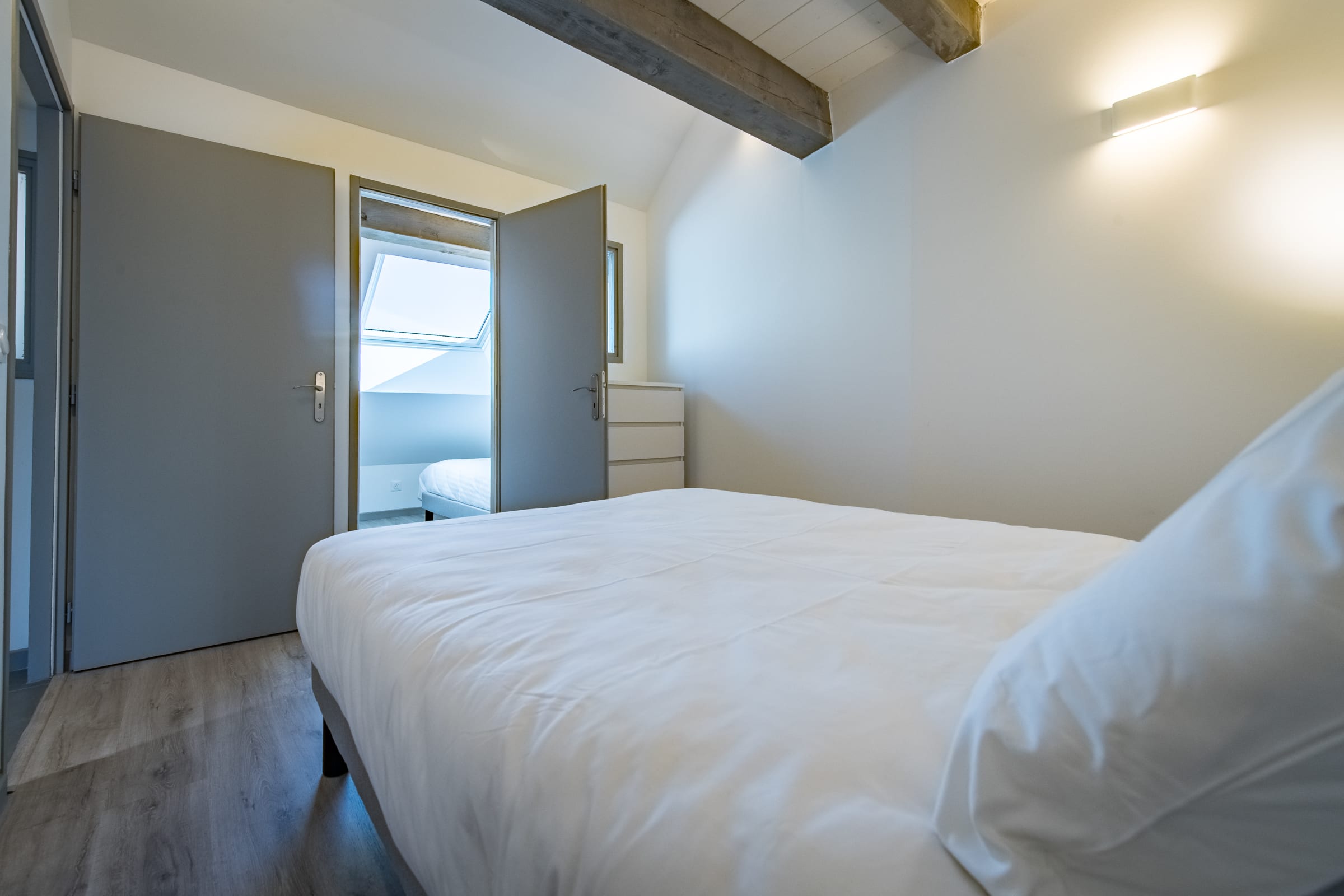 Ground floor: 2 bedrooms, each with a double bed (140 x 200 cm), and each with and an annex with 2 single beds (80 x 190 cm).