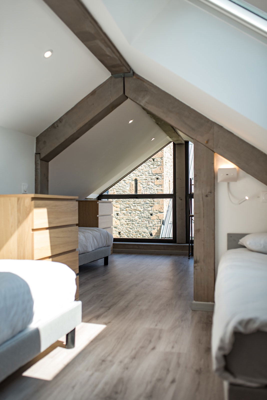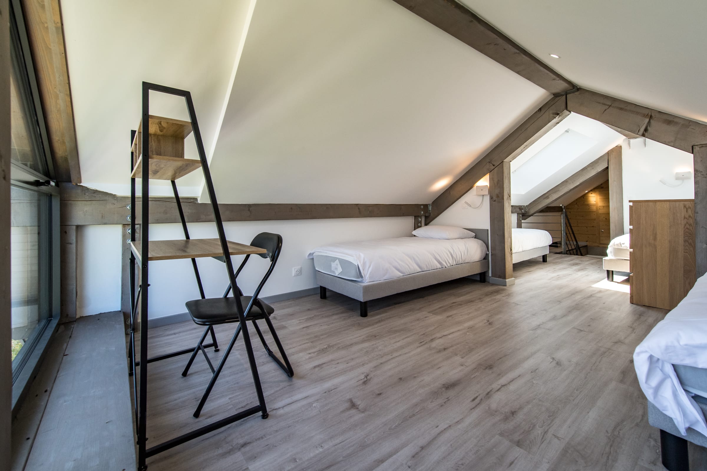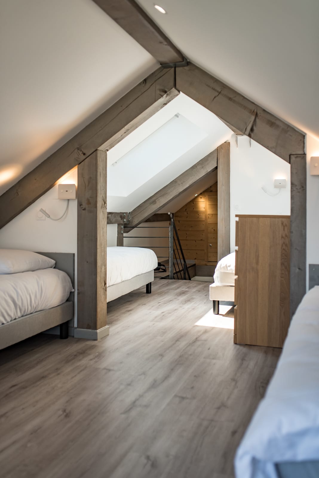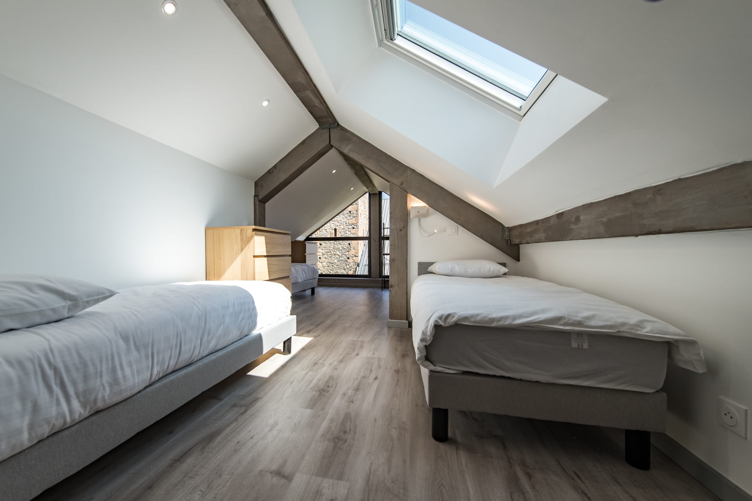 - 1 upstairs bedroom with 4 single beds (80 x 200 cm), ideal for children.