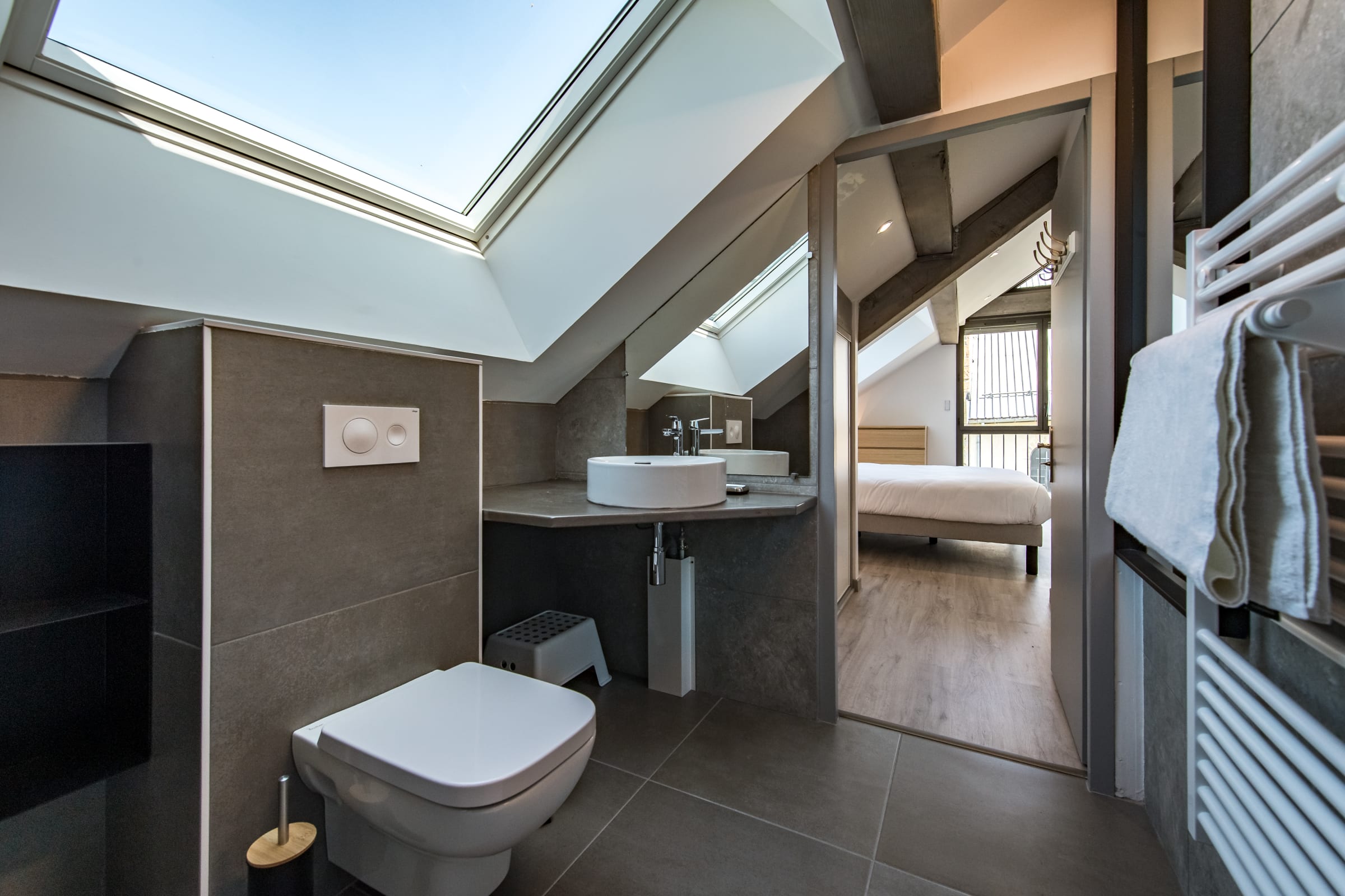 - The bedroom with the single beds is located upstairs and accessible by stairs, which may be difficult for guests with reduced mobility. However, the building is equipped with an elevator, and the main bedroom as well as the bathrooms and toilets are on the ground floor.
