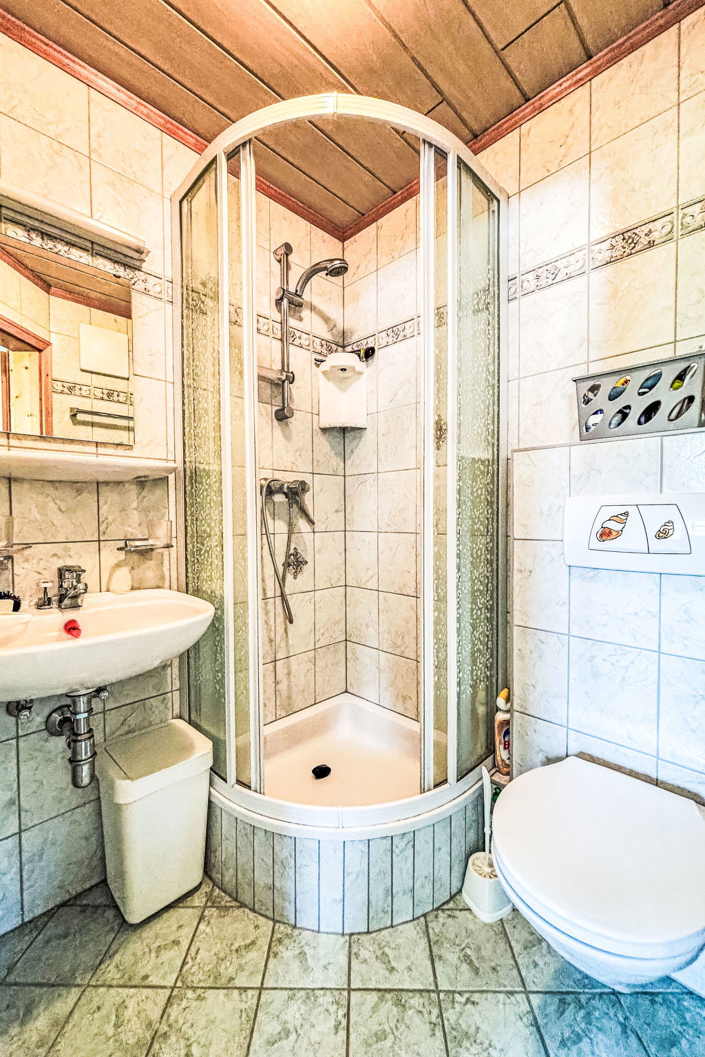 "Ferienwohnung Christoph", 3-room apartment 90 m2 on 1st floor. Spacious and bright, cosy furnishings: entrance hall. Exit to the balcony. Living/dining room with dining nook, satellite TV and international TV channels (flat screen). 1 double bedroom with shower/WC, satellite TV and international TV channels (flat screen). 1 double bedroom with shower/WC. Open kitchen (oven, dishwasher, 4 ceramic glass hob hotplates, toaster, kettle, microwave, freezer, electric coffee machine). Parquet floors. Balcony. Balcony furniture. Facilities: children's high chair, baby cot for up to 2 year olds. Internet (WiFi, free). Please note: one double bedroom is outside the apartment. Non-smokers only. Maximum 1 pet/ dog allowed. Smoke alarm.