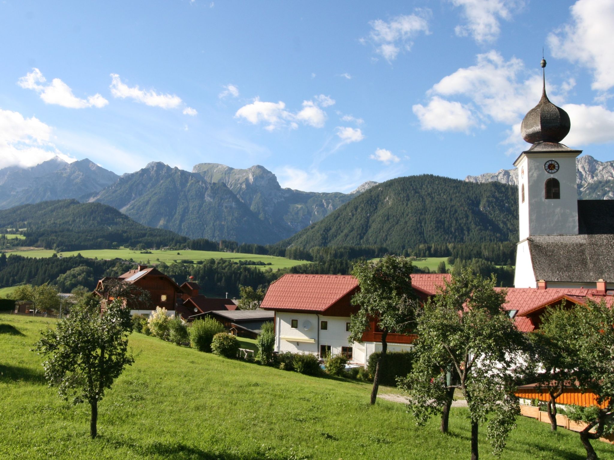 Weißenbach bei Haus 2 km from Haus im Ennstal: Apartment house, 2 storeys. In the district of Weissenbach bei Haus, in a central, sunny position. For shared use: small garden, orchard. Tennis (2 x hard court), garden furniture. In the house: WiFi, storage room for bicycles, storage room for skis, central heating system. Roofed, parking at the house. Supermarket 3 km, bakery 2.5 km, café 100 m, bus stop 30 m, railway station "Haus im Ennstal" 2 km, bathing lake "Aicher Badesee" 2 km. Golf course (18 hole) 4 km, tennis 450 m, riding stable 200 m, cycle lane 50 m, cable car 2 km, slopes 2 km, ski rental 2 km. Nearby attractions: Dachstein Südwandbahn 20 km, Steirischer Bodensee 10 km, Zipline Stoderzinken 15 km. Well-known ski regions can easily be reached: Hauser Kaibling 2 km, Planai 9 km, Ramsau am Dachstein 10 km. Hiking paths: Schladming 9 km, Ramsau am Dachstein 10 km, Gröbming 12 km. Note: A garden house with a cozy seating area and wood-burning stove can be shared upon request. Two tennis courts (250 m away) can be used free of charge.