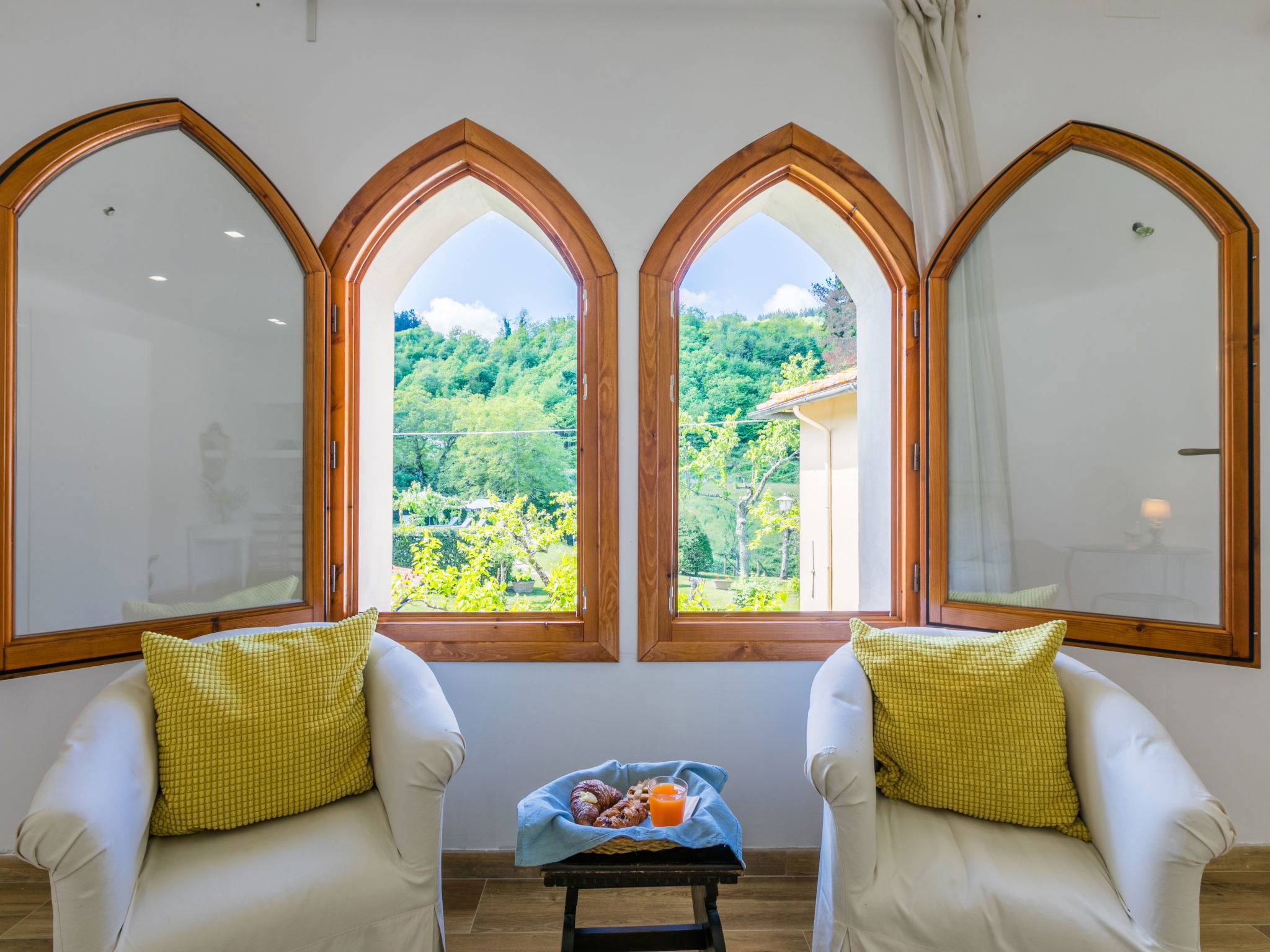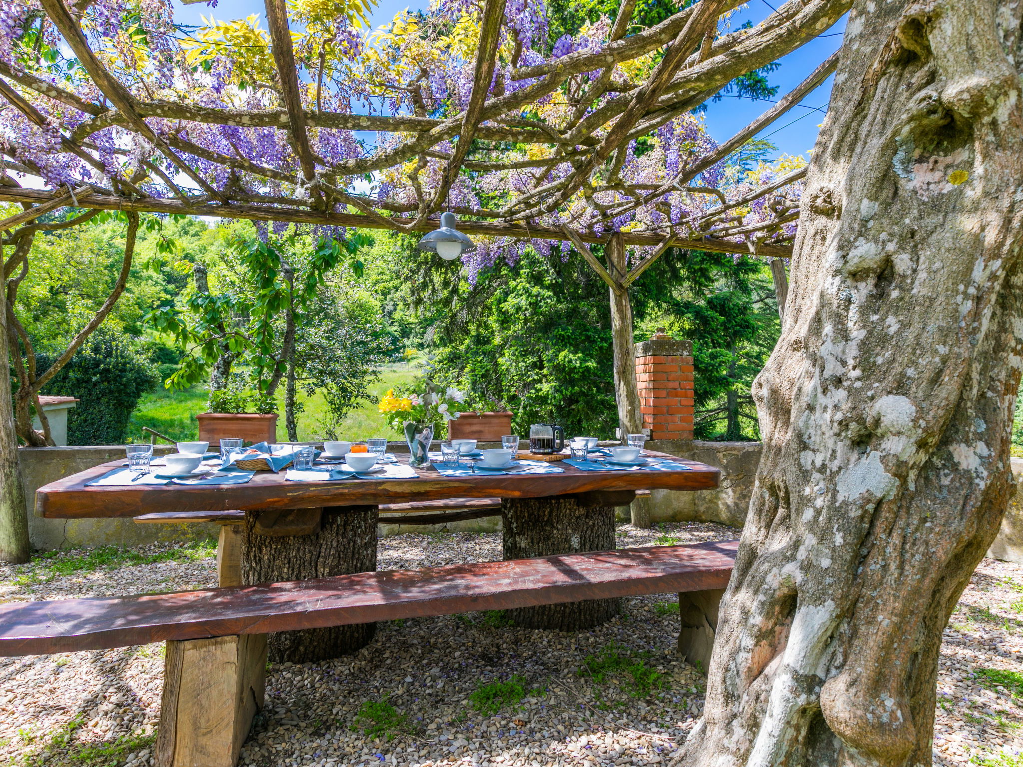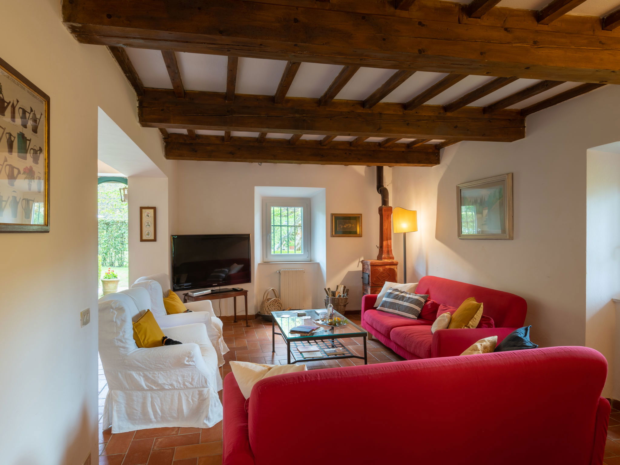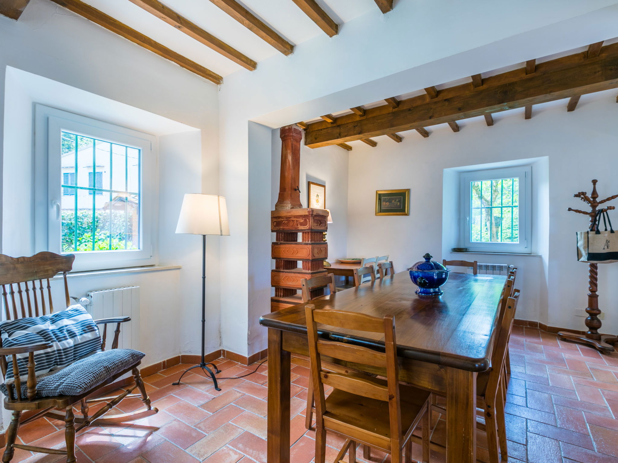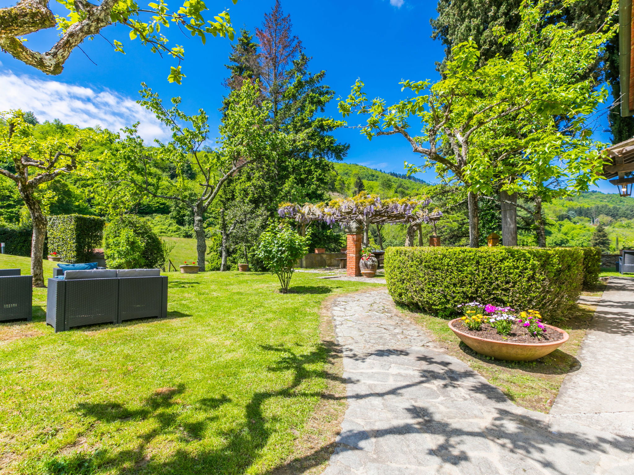 "Villa Castagnoli", 7-room villa 250 m2 on 2 levels. Comfortable and wooden furniture furnishings: living/dining room with open-hearth fireplace, dining table and satellite TV (flat screen). Exit to the garden. Open kitchen (oven, dishwasher, 5 gas rings, freezer, electric coffee machine) with open-hearth fireplace. Sep. WC. Upper floor: 3 rooms, each room with 1 french bed (160 cm). 2 rooms, each room with 2 beds (80 cm). Bath/WC, 2 showers/WC. Gas heating. Parquet floors. Terrace roofed. View of the valley and the garden. Facilities: washing machine, iron, baby cot for up to 2 year olds. Internet (WiFi, free). Parking (4 cars) at the house. Please note: non-smokers only. Maximum 1 pet/ dog allowed. No mandatory extra charges to be paid on-site except for local tax. IT048021B49F5V68X8