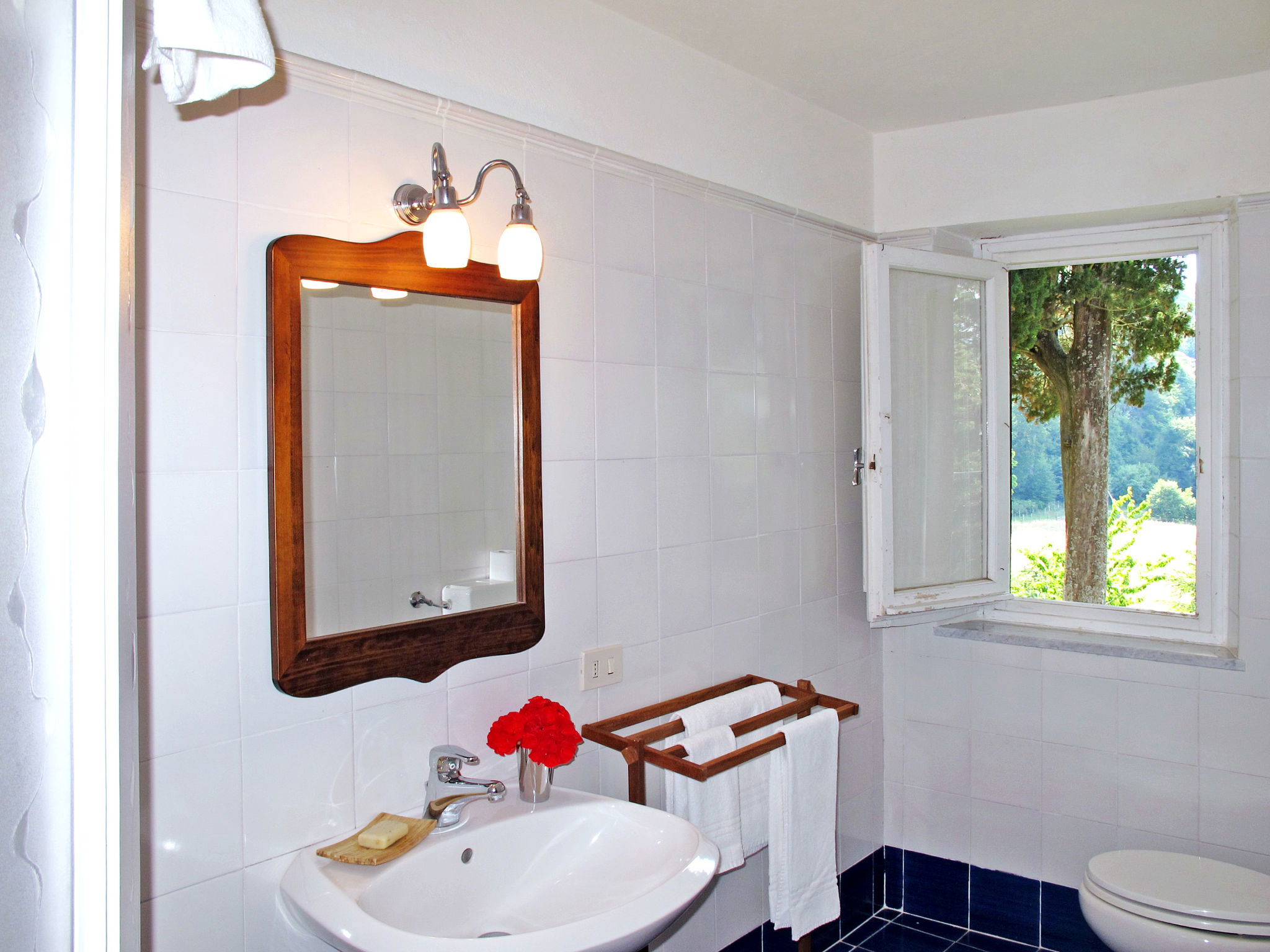 Manor house "Castagnoli", 650 m a.s.l., surrounded by fields and vineyards. 12 km from the centre of Greve in Chianti, 2 km from the centre of Lucolena, in a secluded position, in the countryside. Private: property 40 ha, park, beautiful, well-kept garden (not fenced) with flowers and trees, lawn for sunbathing, swimming pool (10 x 5 m, depth 100 - 200 cm, seasonal availability: 10.May. - 10.Oct.). Outdoor shower, terrace, barbecue, pool maintenance by the owner/gardener. 500 m long bumpy motor access (via unmade road). Parking on the premises. Shop 2 km, supermarket 10 km, bus stop 3 km, sandy beach "Marina di Cecina" 85 km. Golf course (18 hole) 20 km, walking paths from the house 50 m. Nearby attractions: Siena 30 km, Volterra 44 km, Firenze 50 km, Arezzo 75 km. Please note: car recommended. Baby equipment (included). Groups of teenagers on request only.