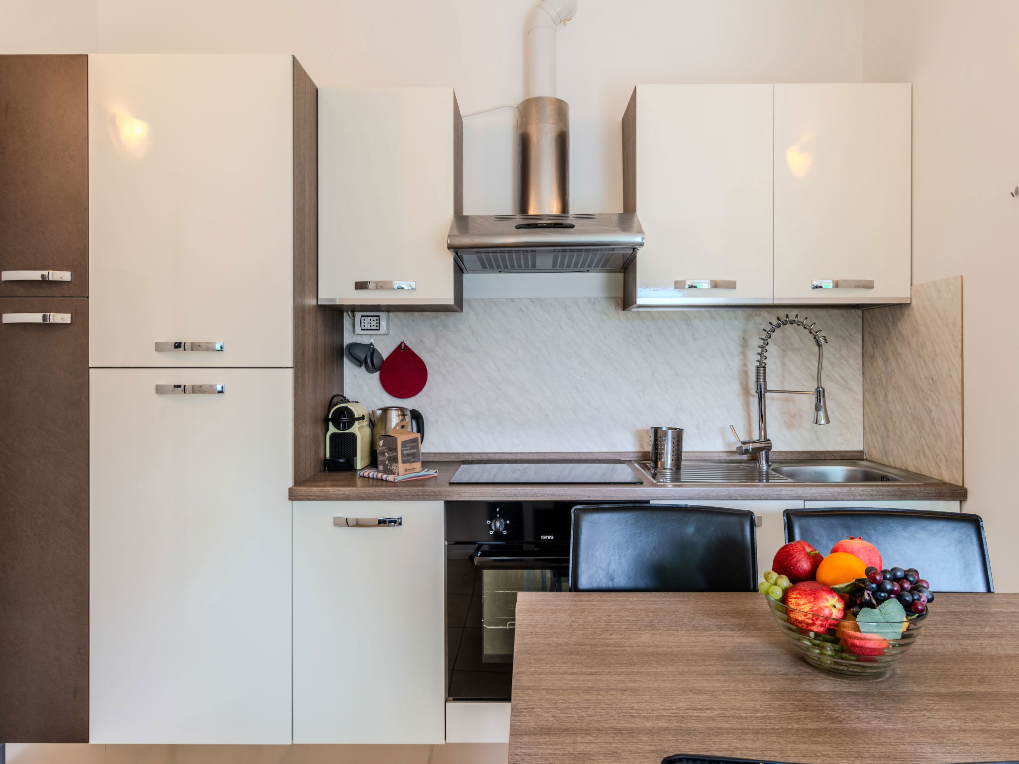 "Nancy", 2-room apartment 40 m2 on 2nd floor. Comfortable furnishings: open living/sleeping room with 1 double sofabed and TV. Exit to the balcony. 1 double bedroom. Small, open kitchen (oven, 4 induction hot plates, toaster, kettle, electric coffee machine, Capsules for coffee machine (Nespresso) extra) with dining table. Shower/bidet/WC. Gas heating, air-conditioning. Heating available only from 15.10. to 15.04. Balcony. Balcony furniture. Very beautiful view of the countryside. Facilities: washing machine, children's high chair, baby cot for up to 2 year olds, hair dryer. Internet (WiFi, free). Garage (1 car), height 210 cm, width 250 cm. Please note: non-smokers only. Maximum 1 small pet/ dog allowed. Fire extinguisher. IT013089C228V2YYK7