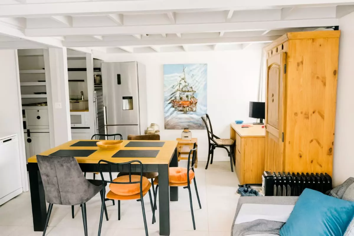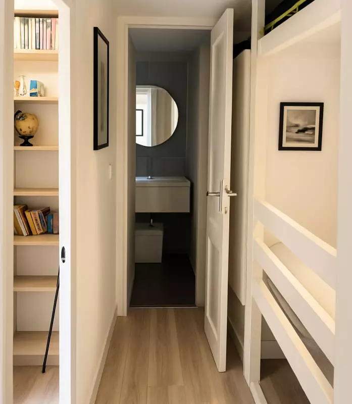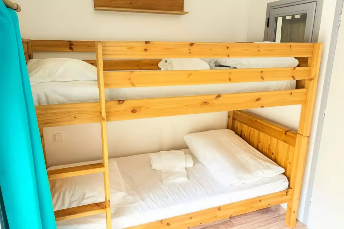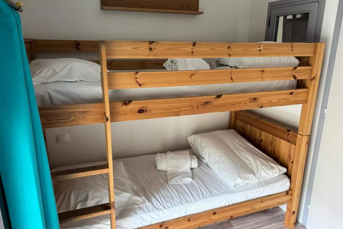 This accommodation is composed of three bedrooms with a double bed, a single bed and a bunk bed (no window); a fully equipped kitchen; a bathroom; and a living room with a sofa bed, a television and a dining area.