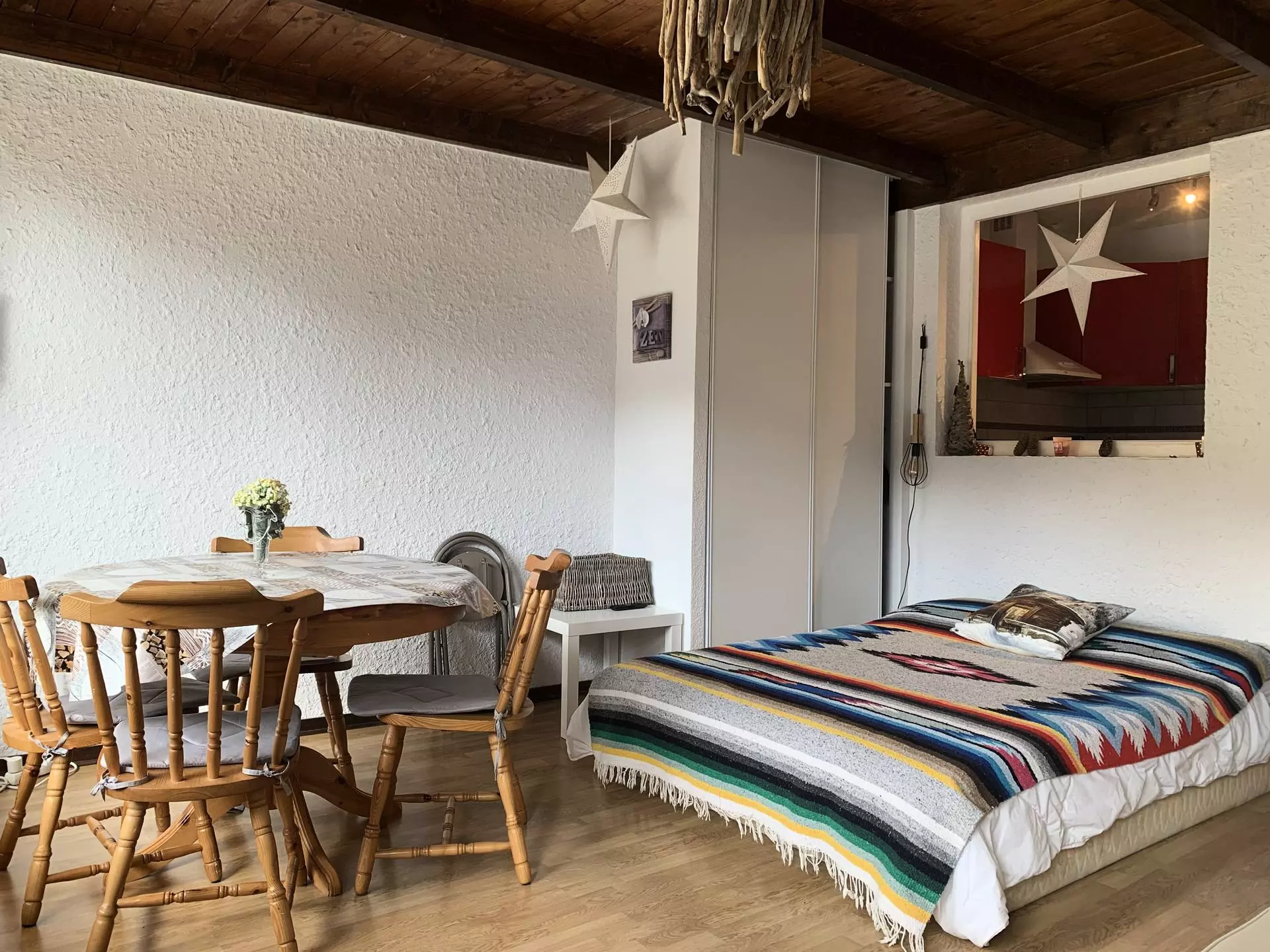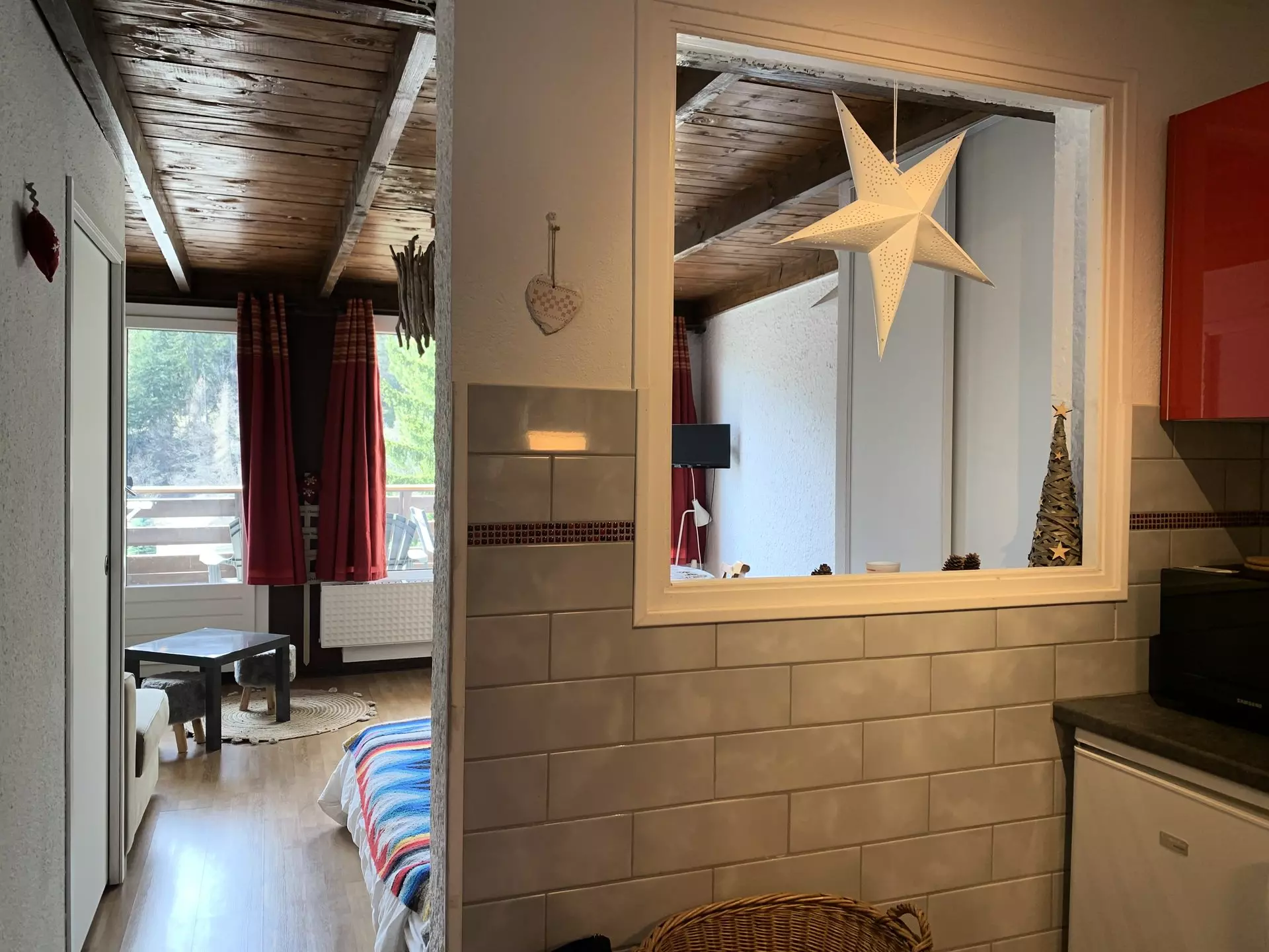 Studio for 4 people, approximately 30m². Located on the 3rd floor with elevator. South-facing with a large balcony/terrace and mountain view.
