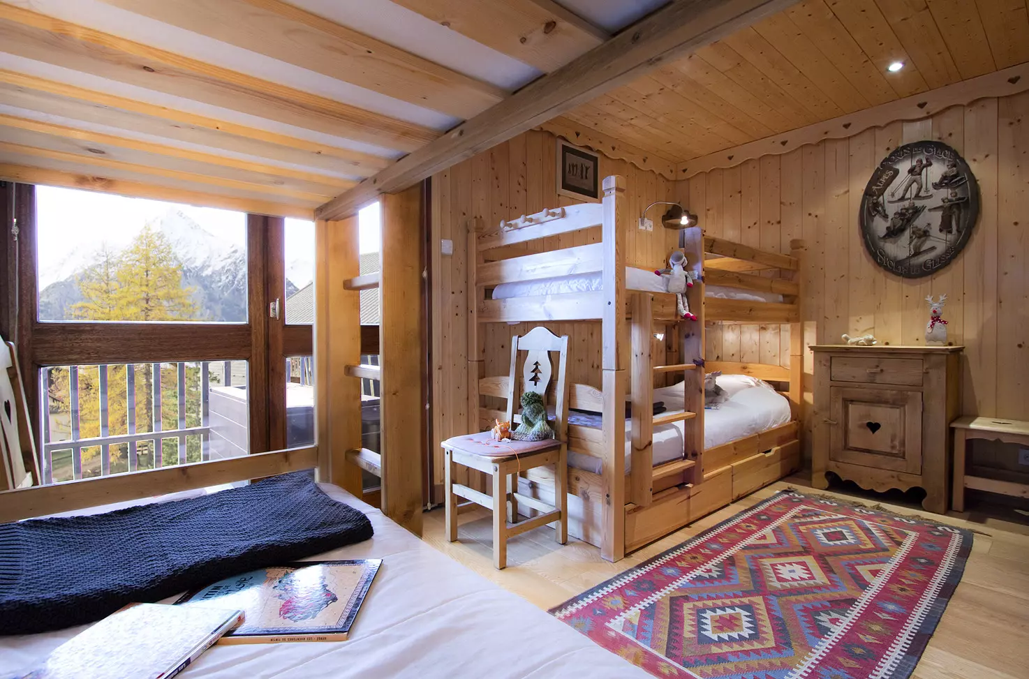 A bedroom with 2 bunk beds