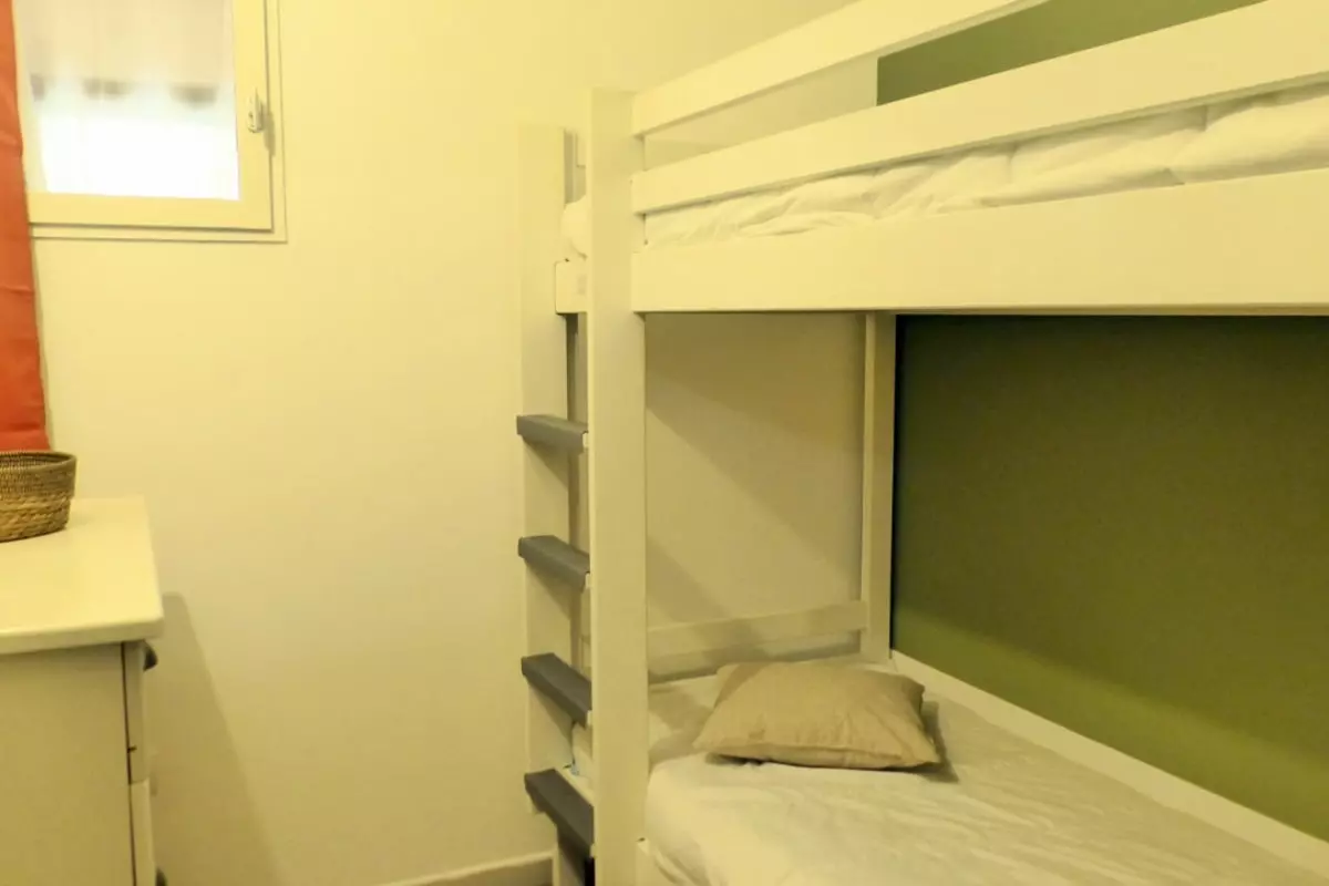 - a bedroom with a bunk bed;