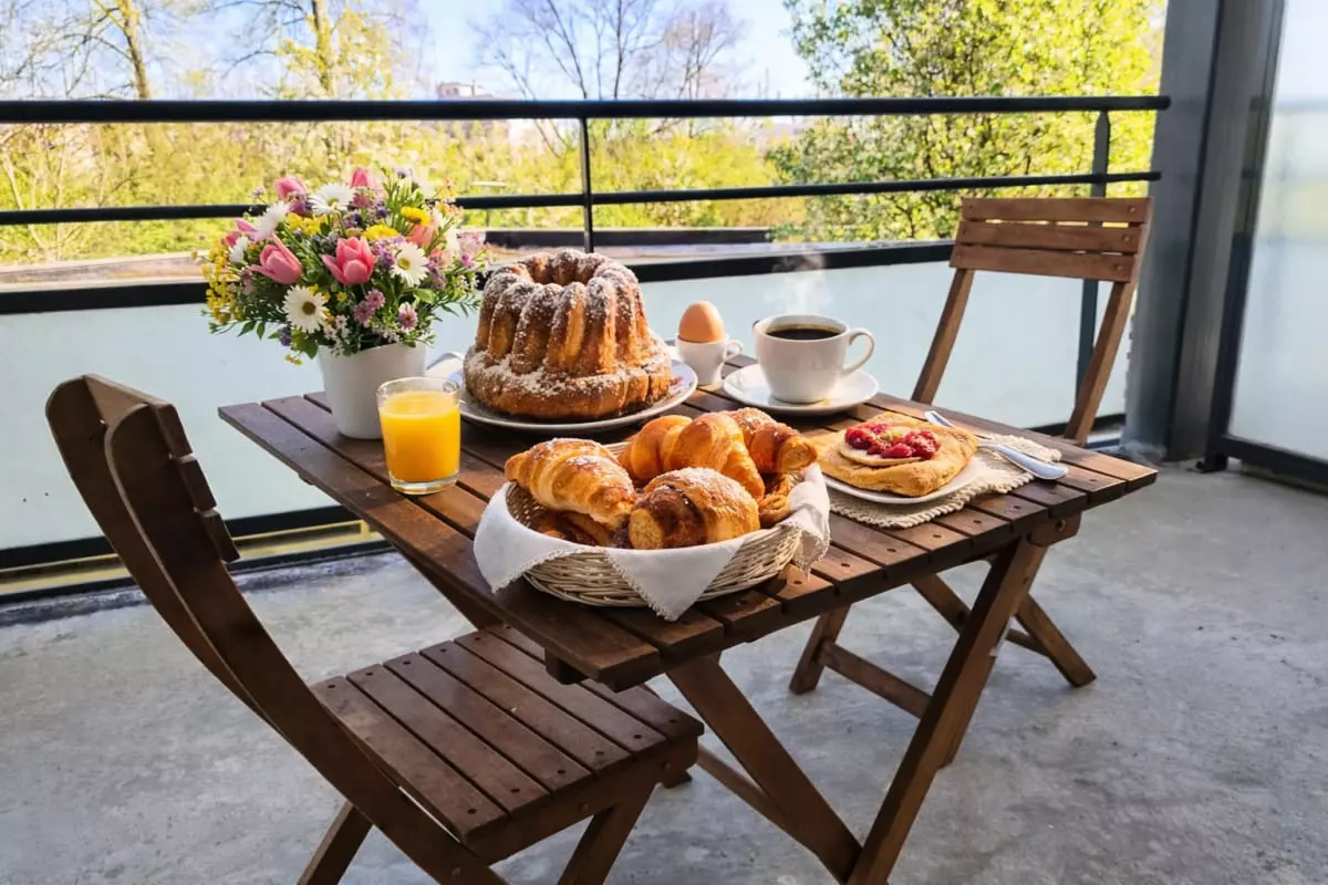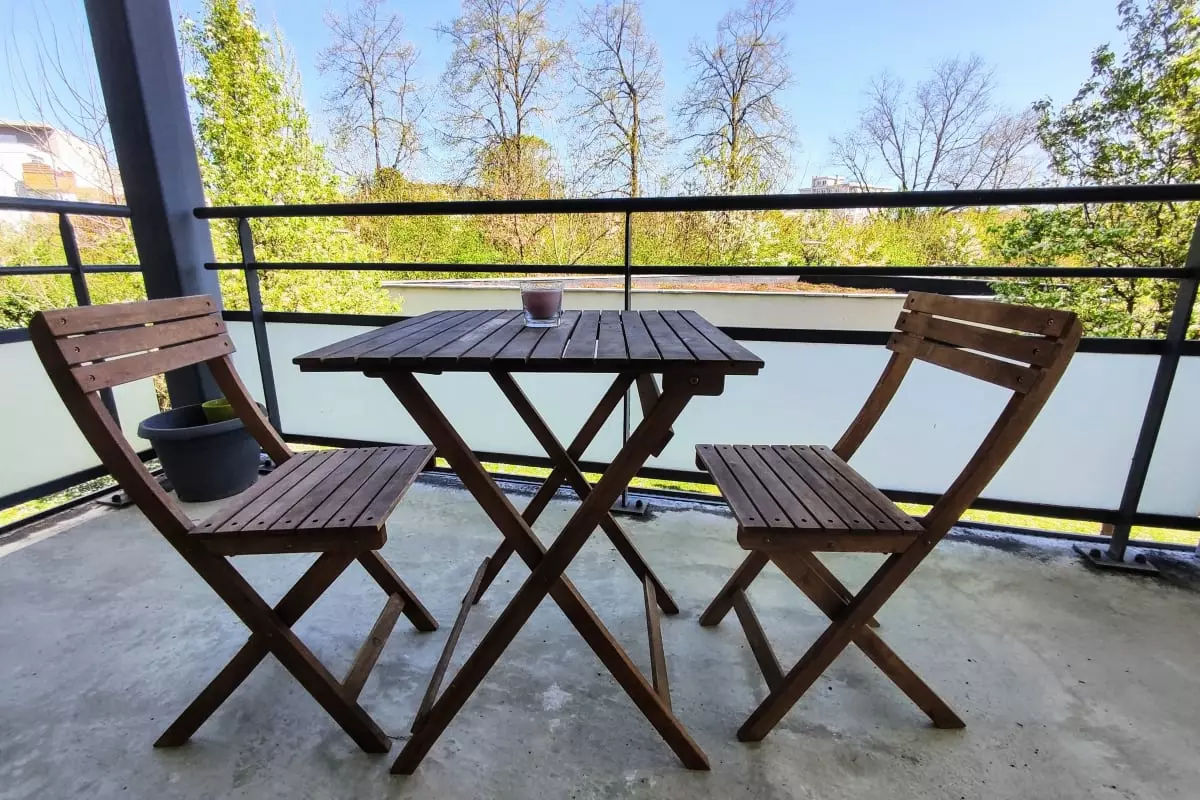 - the balcony, not overlooked, offers a peaceful and green setting for a quiet outdoor meal.