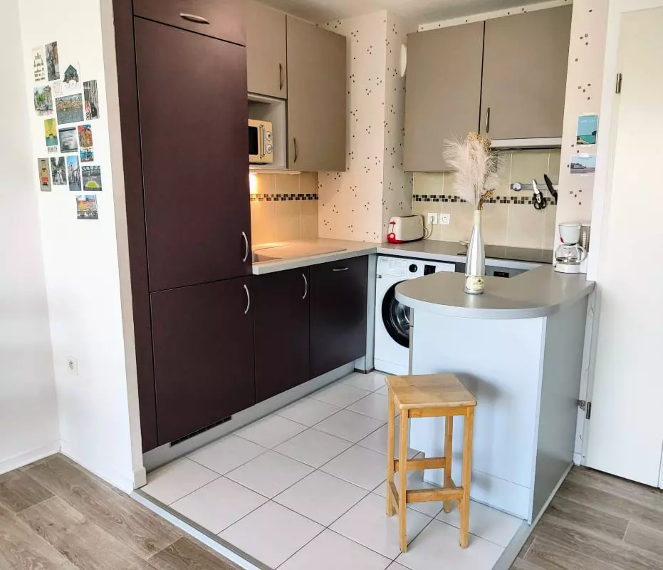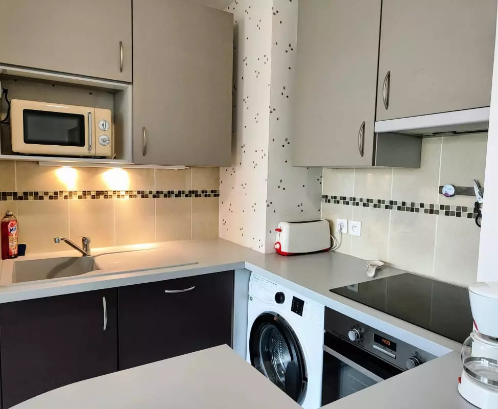 - a fully equipped kitchen with an oven, microwave, dishwasher, washing machine, convenient for extended stays.