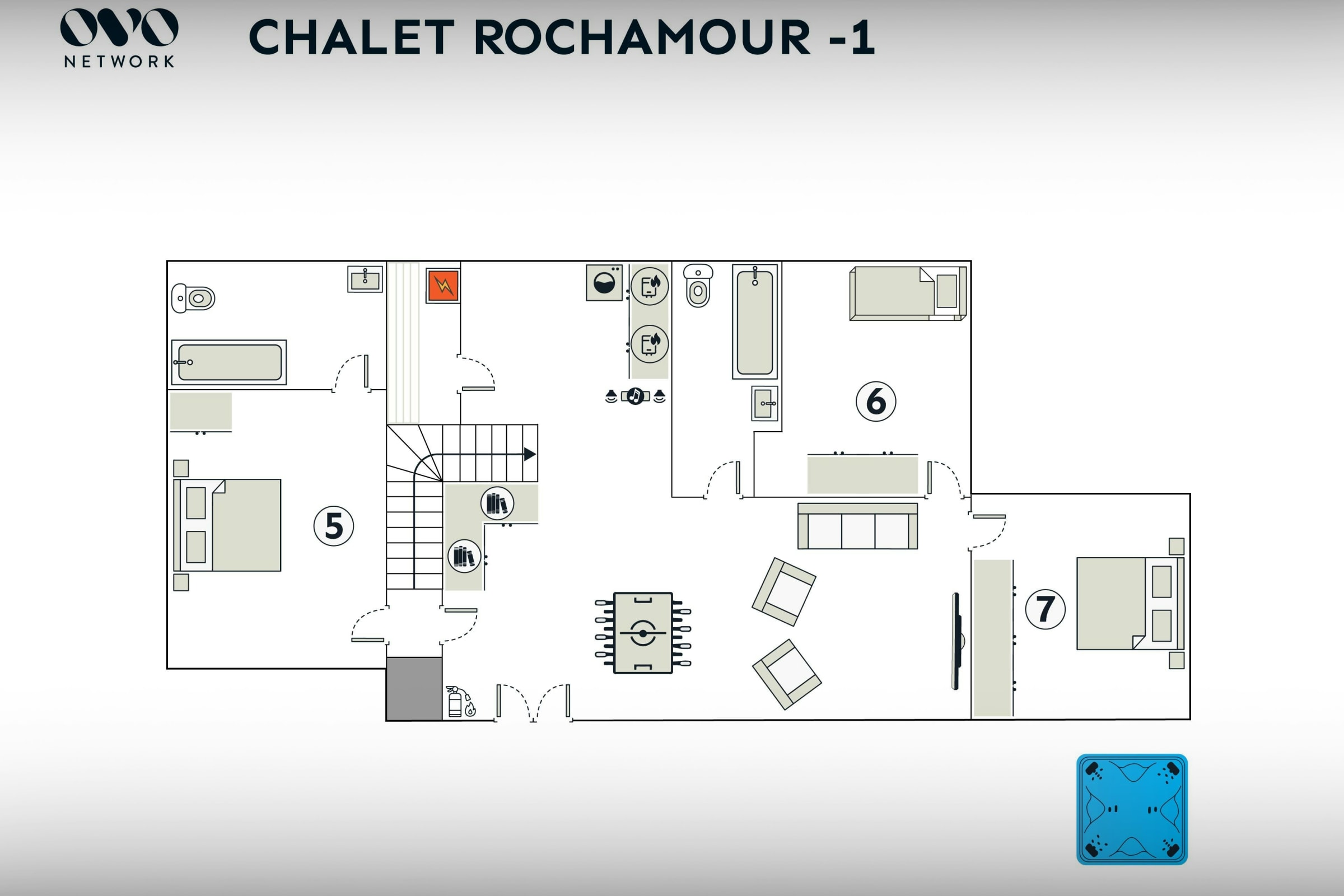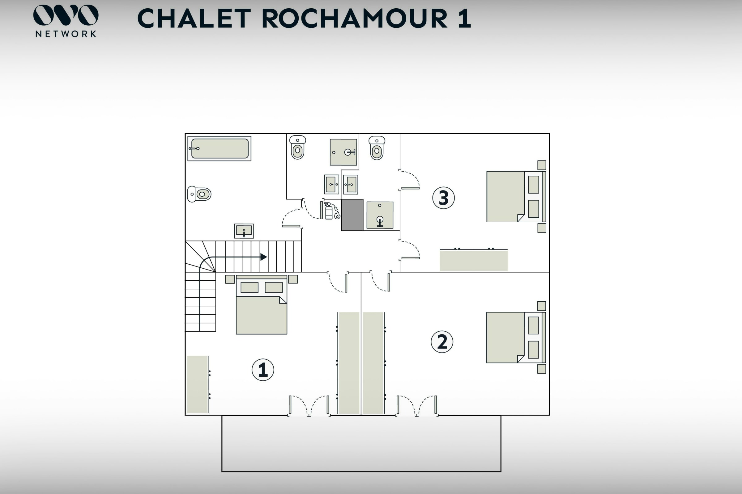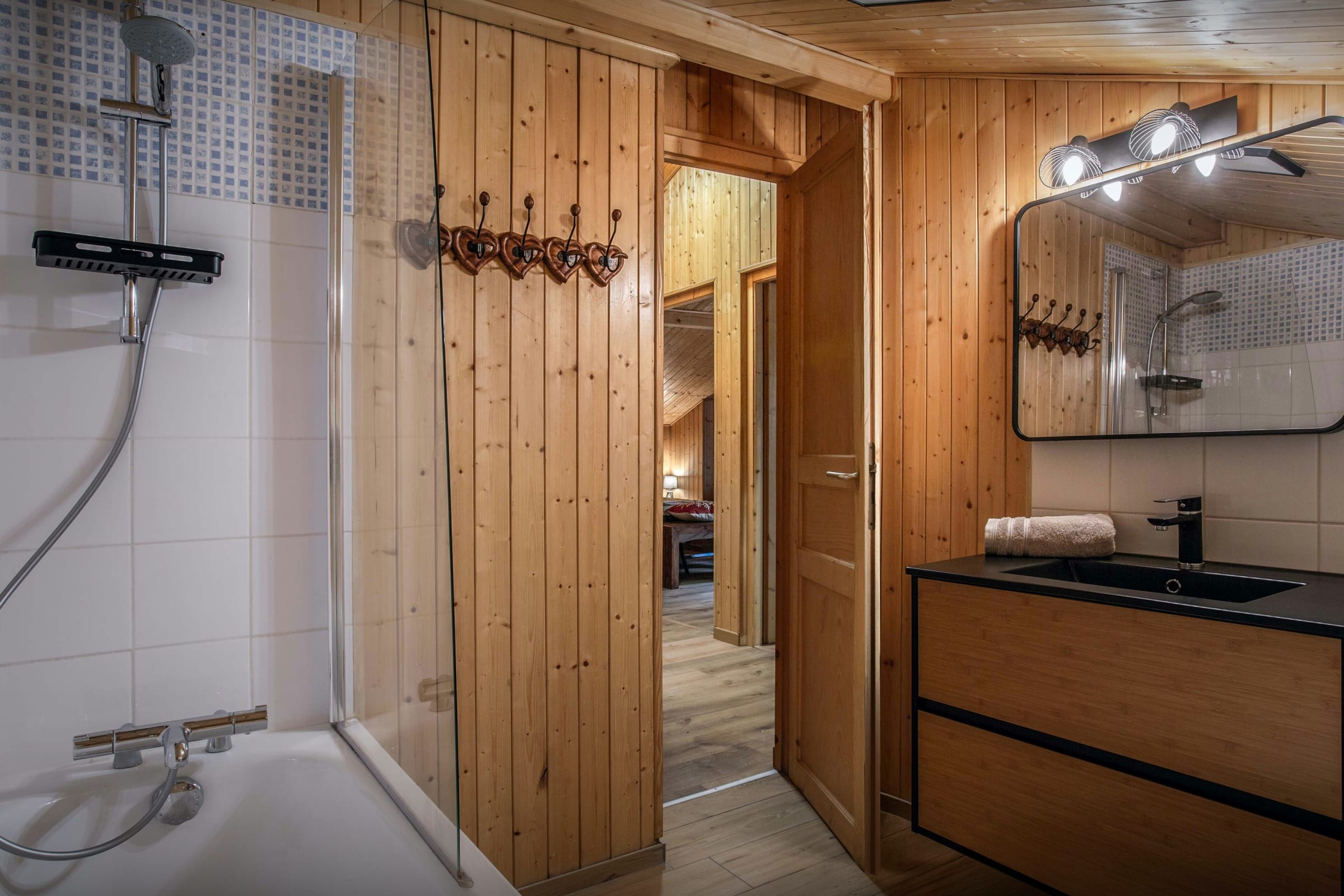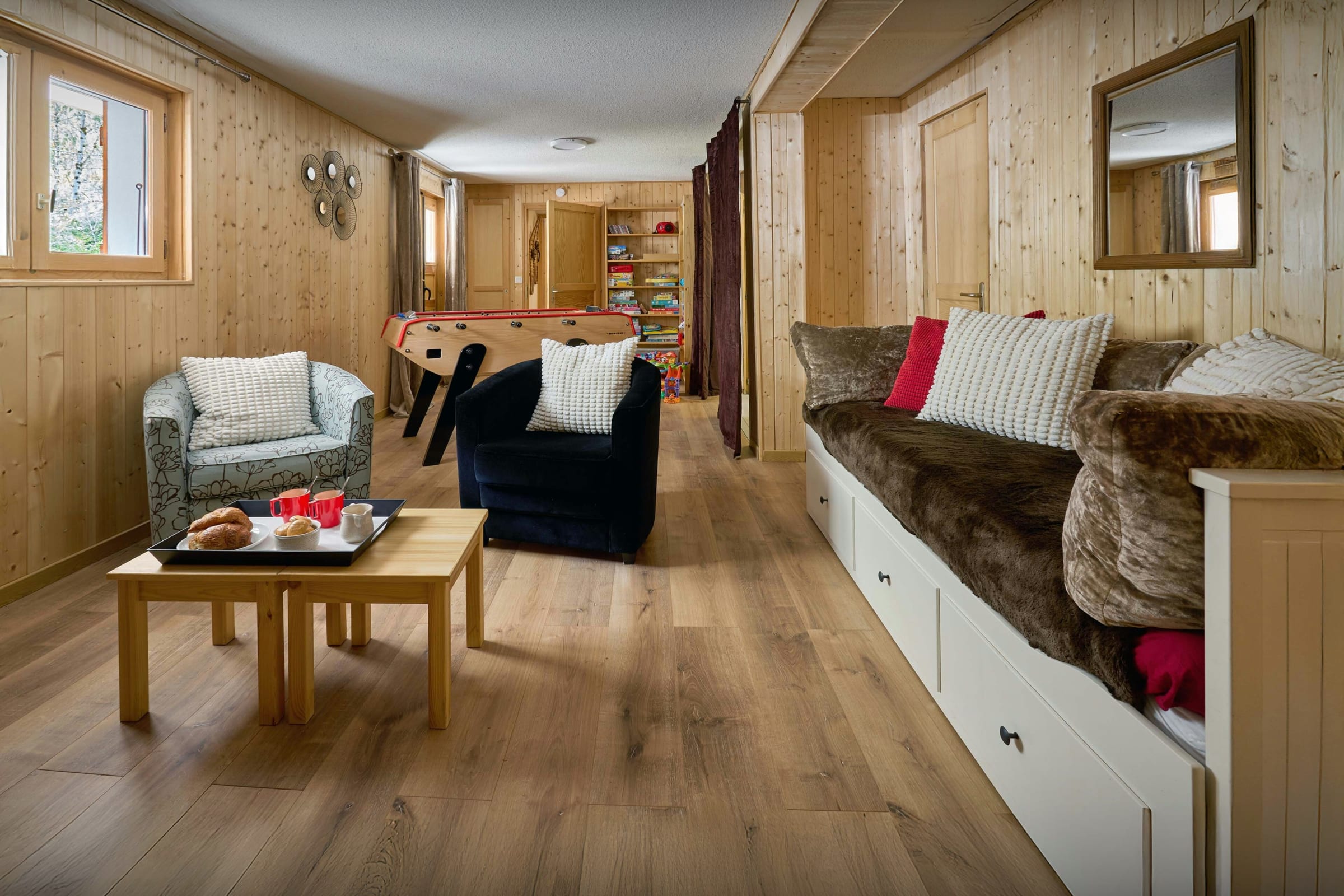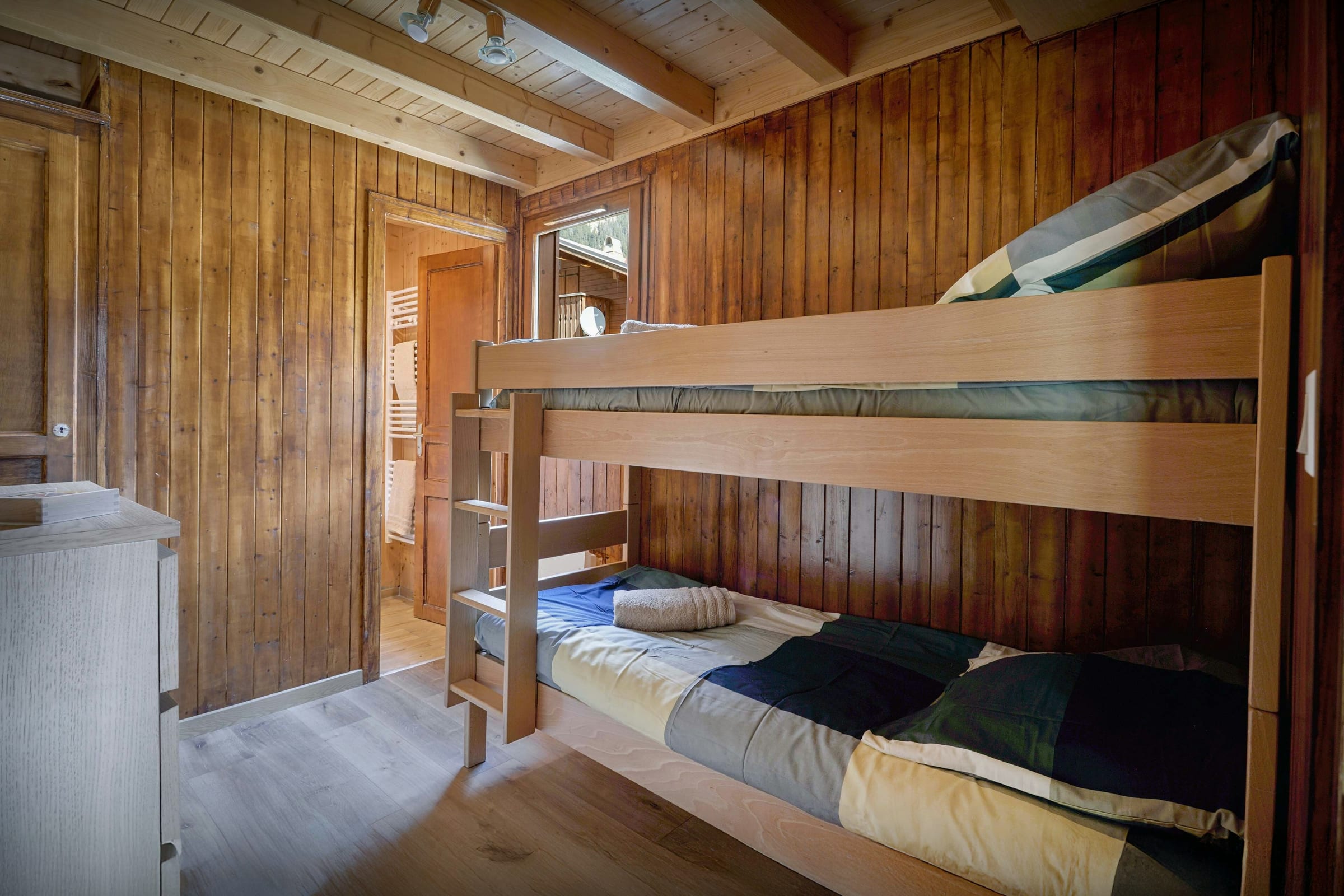 Three bedrooms are on the garden level, including two doubles and a bunk room for two kids/one adult. There is a second bunk room of same capacity on the ground floor, and three double rooms on the floor. Three of the chalet's seven bedrooms have en-suite bathrooms.