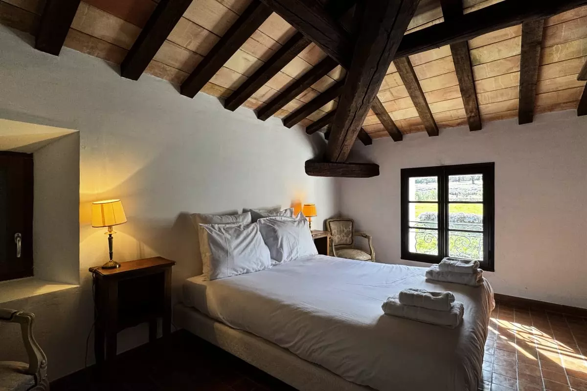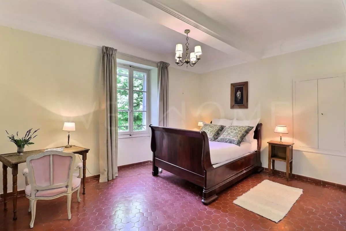 - Suite 4: Master bedroom of 22 m² with old fireplace, bathroom of 13 m² with bathtub and toilet, exceptional view of the Lubéron massifs and the park, queen size bed 160x200.