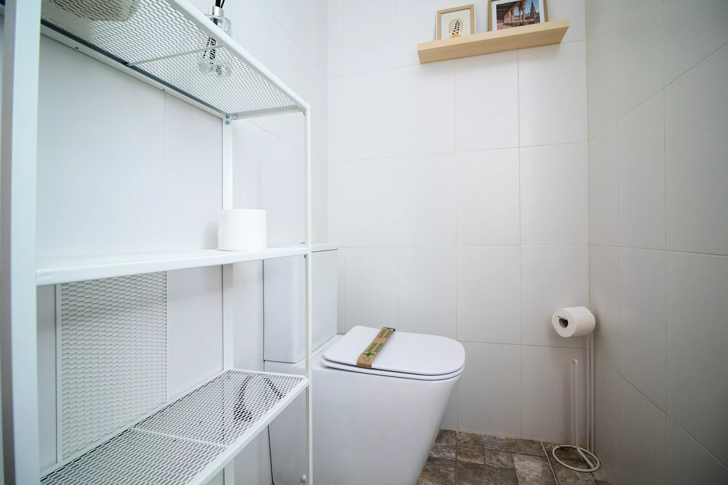 The fully equipped and independent kitchen has all the necessary elements for a functional use but especially to enjoy its charming little corner for breakfasts and its coffee area. It includes a ceramic hob, an oven, a refrigerator, a freezer, a coffee maker, a toaster, a kettle, dishes and kitchen utensils.