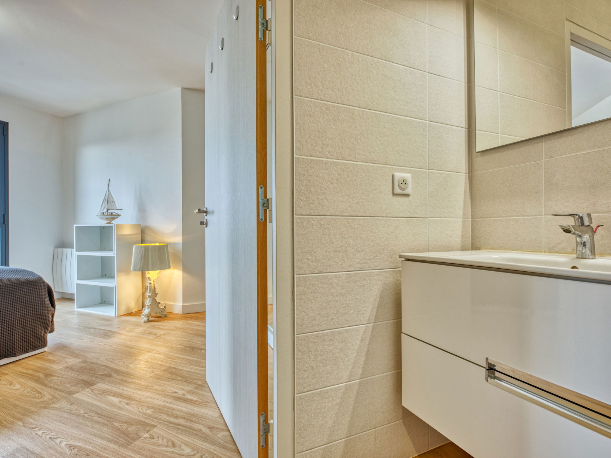 2-room apartment 55 m2 on 3rd floor. Modern furnishings: living/dining room with 1 double sofabed (140 cm, length 190 cm), TV (flat screen). Exit to the balcony. 1 room with 1 french bed (140 cm, length 190 cm). Kitchen (oven, dishwasher, 4 ceramic glass hob hotplates, toaster, kettle, microwave, electric coffee machine) with dining table. Shower/WC, sep. WC. Heating. Balcony 8 m2, south facing position. Balcony furniture, deck chairs. Side view of the ocean. Facilities: washing machine, dryer. Internet (WiFi, free). Parking space n 3B (fenced). Please note: non-smokers only. Offer by a private individual according to Art. 155, IV of CGI.