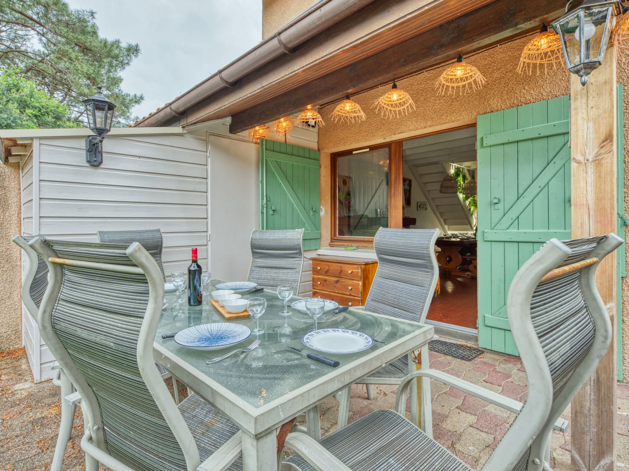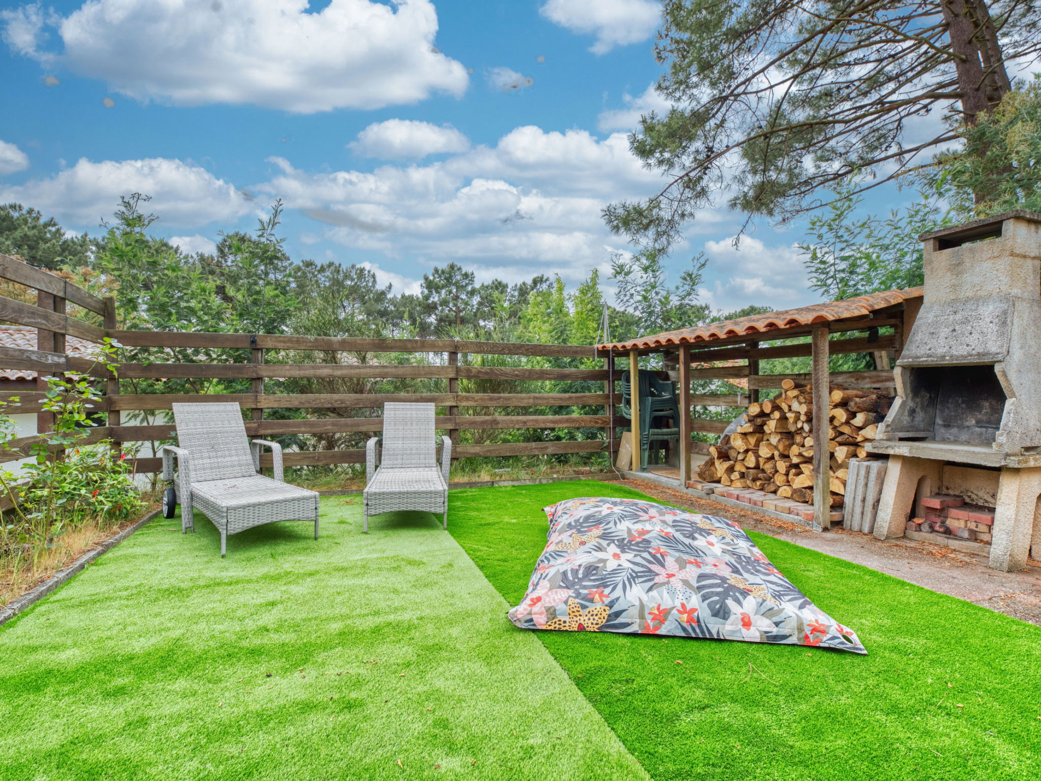 All houses in the residence have a fenced terrace residence "Les Cracks - Les As". In the resort, 1.6 km from the centre, 2 km from the sea, 2 km from the beach. Motor access to 100 m from the house. Stepped path to the house. Parking. Shop 1.5 km, supermarket 1.5 km, bus stop "Marie Curie" 950 m, sandy beach 2 km. Golf course (18 hole) 1.5 km, tennis 300 m, riding stable 15 km.
