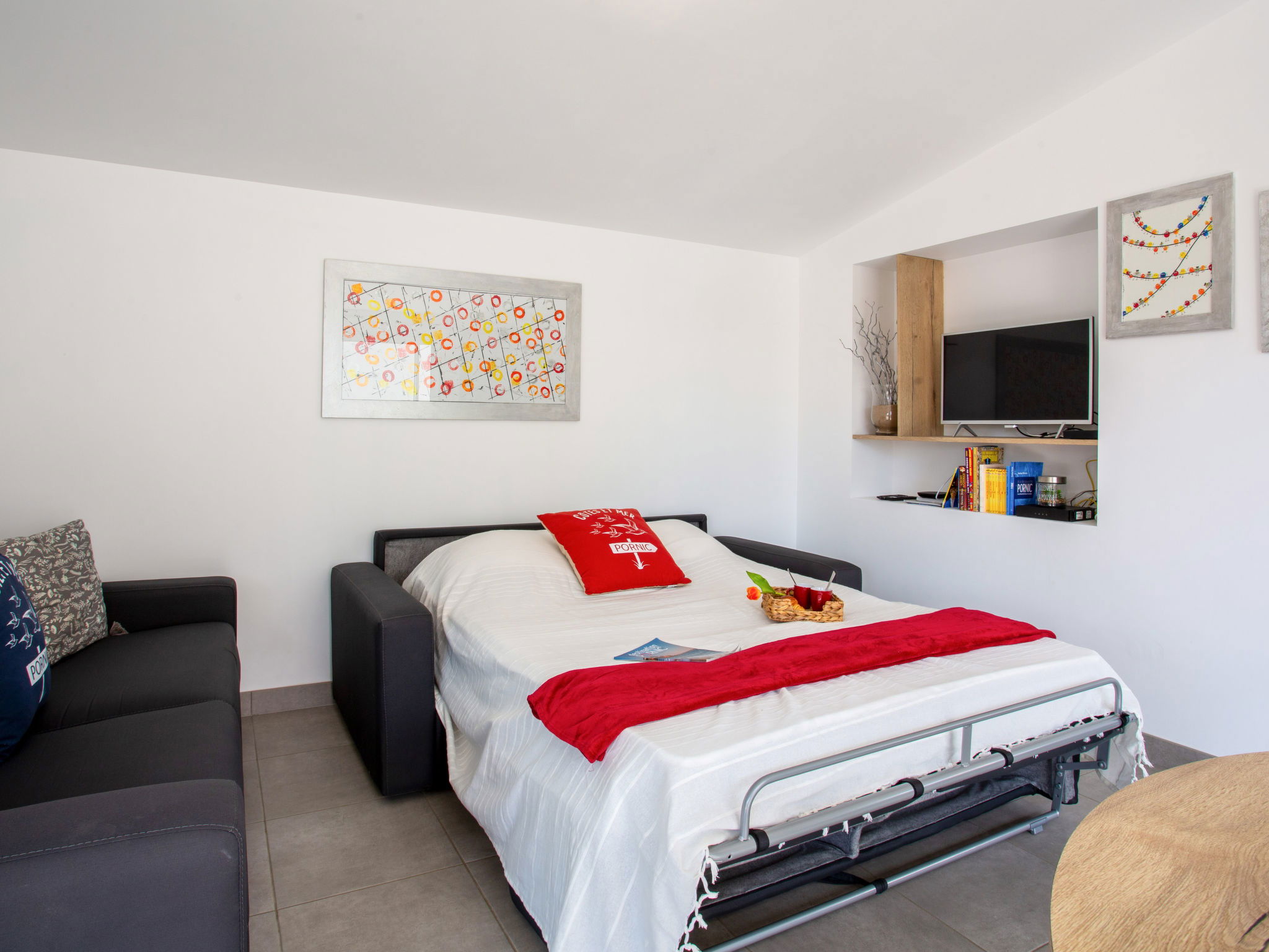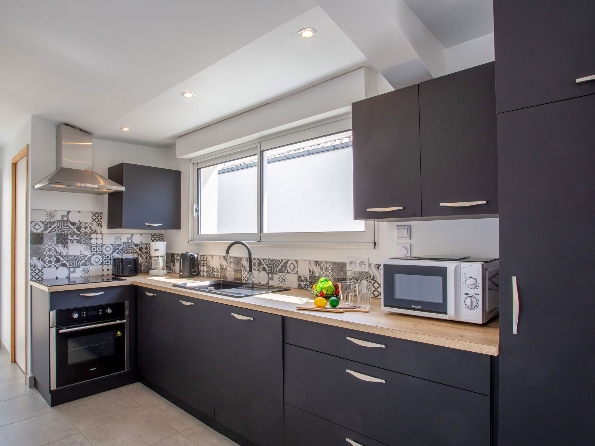 "L'Effet Mer", 2-room house 46 m2. Modern and cosy furnishings: living/dining room with 2 double sofabeds " 2 km, railway station "La Bernerie en Retz" 2.5 km, sandy beach "Plage de Crève Coeur" 900 m, thermal baths "Alliance Pornic Thalasso & Spa" 7 km. Sports harbour 5 km, golf course (18 hole) 8 km, tennis 1.5 km, minigolf 8 km. Nearby attractions: Marché de La Bernerie en Retz 2 km, Pornic 6 km, Port du Collet 22 km, Planète Sauvage 27 km, Les Machines de l'Ile de Nantes 52 km, Ile de Noirmoutier 65 km. Well-known lakes can easily be reached: Lac de Saint Viaud 27 km. Please note: Additional accommodations can be booked. Property ref. FR2542.802.1 is situated on the same property.