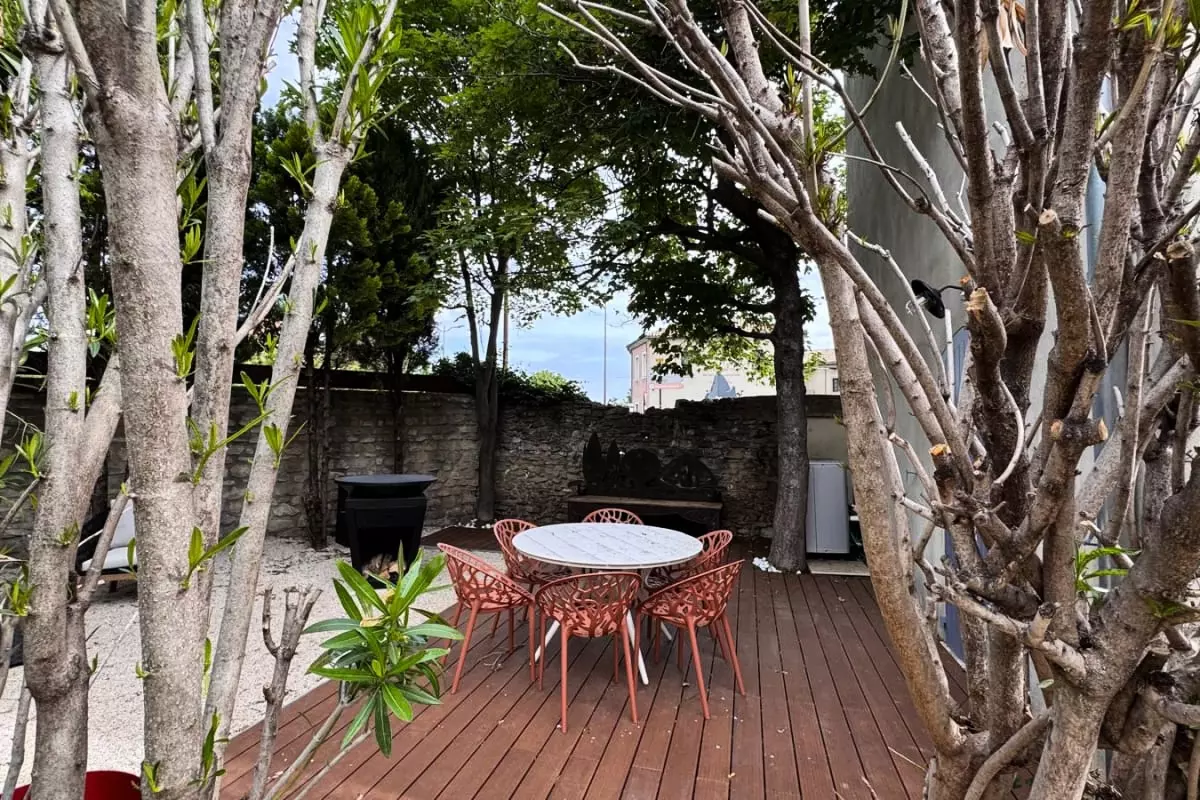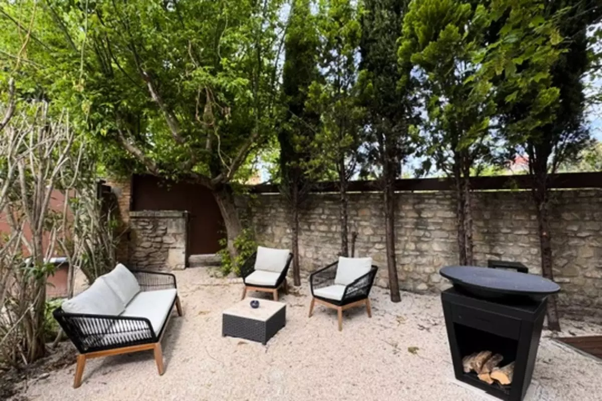 The house boasts a charming, intimate, and well-kept outdoor space, perfect for balmy summer evenings. There, you'll find a fire pit for entertaining under the stars, comfortable garden furniture for relaxing moments, and a large, convivial table for al fresco dining. Access to the property is via a secure electric gate, and a private parking space awaits you right in front of the house for your complete convenience.