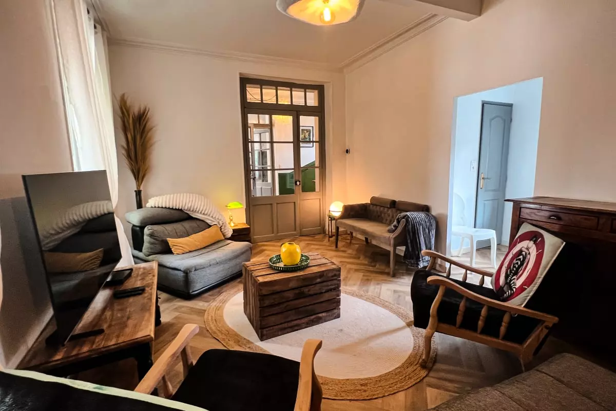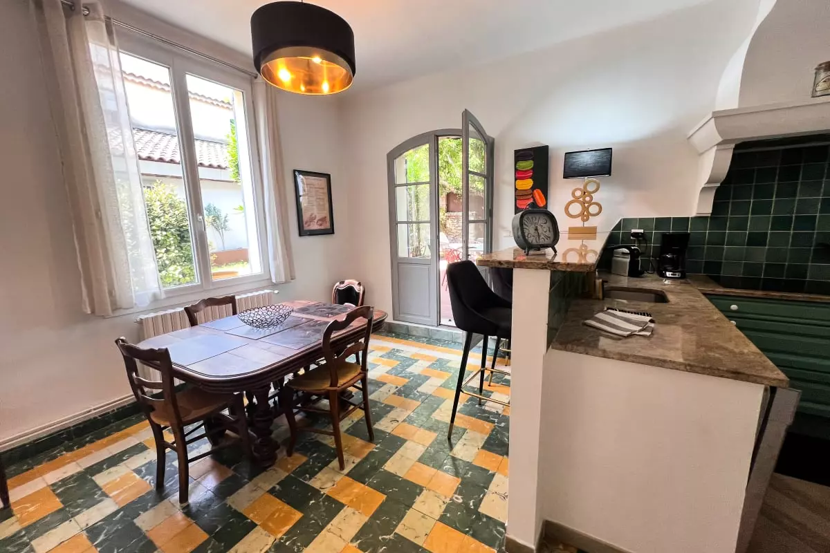 Let yourself be seduced by the unique charm of this superb townhouse with its elegant decor, inspired by Art Deco, located in L'Isle-sur-la-Sorgue, a true pearl of Provence. Just a stone's throw from the historic center, its picturesque streets, renowned antique dealers, and colorful markets, you can stroll freely on foot, savor the Provençal art of living, and enjoy every moment without having to move your car. It's an ideal vacation spot to recharge your batteries in an authentic, chic, and welcoming setting.