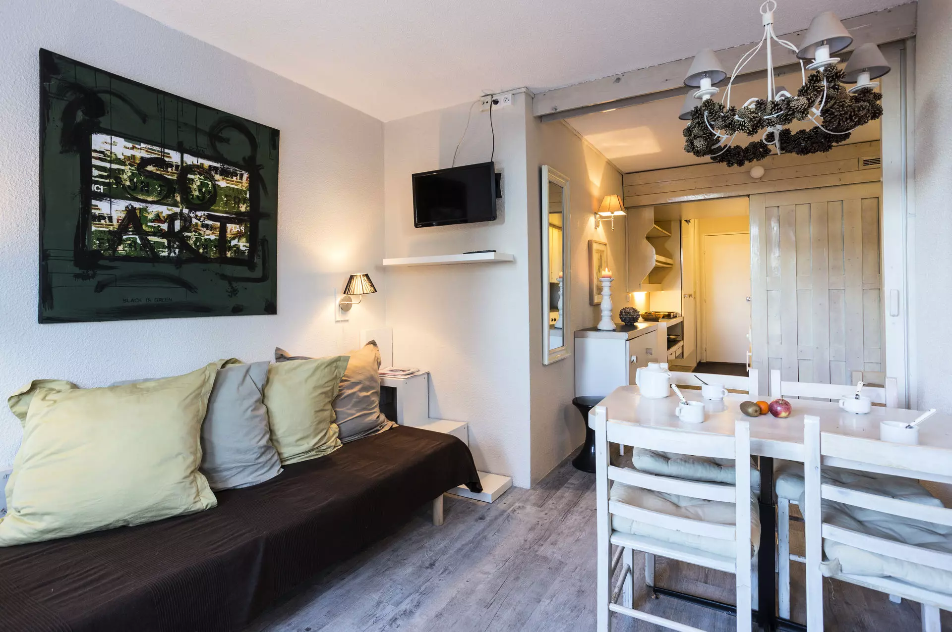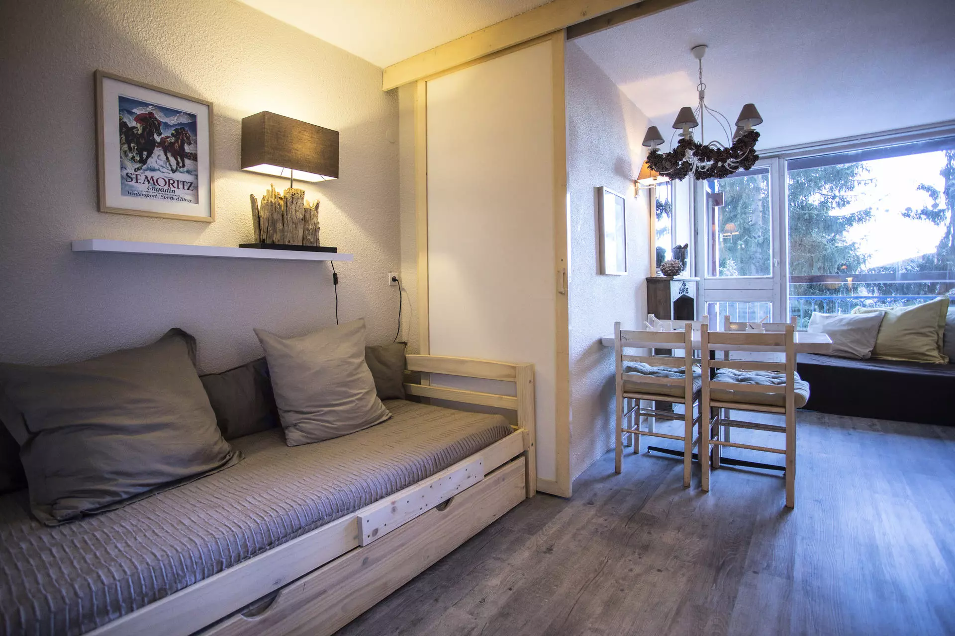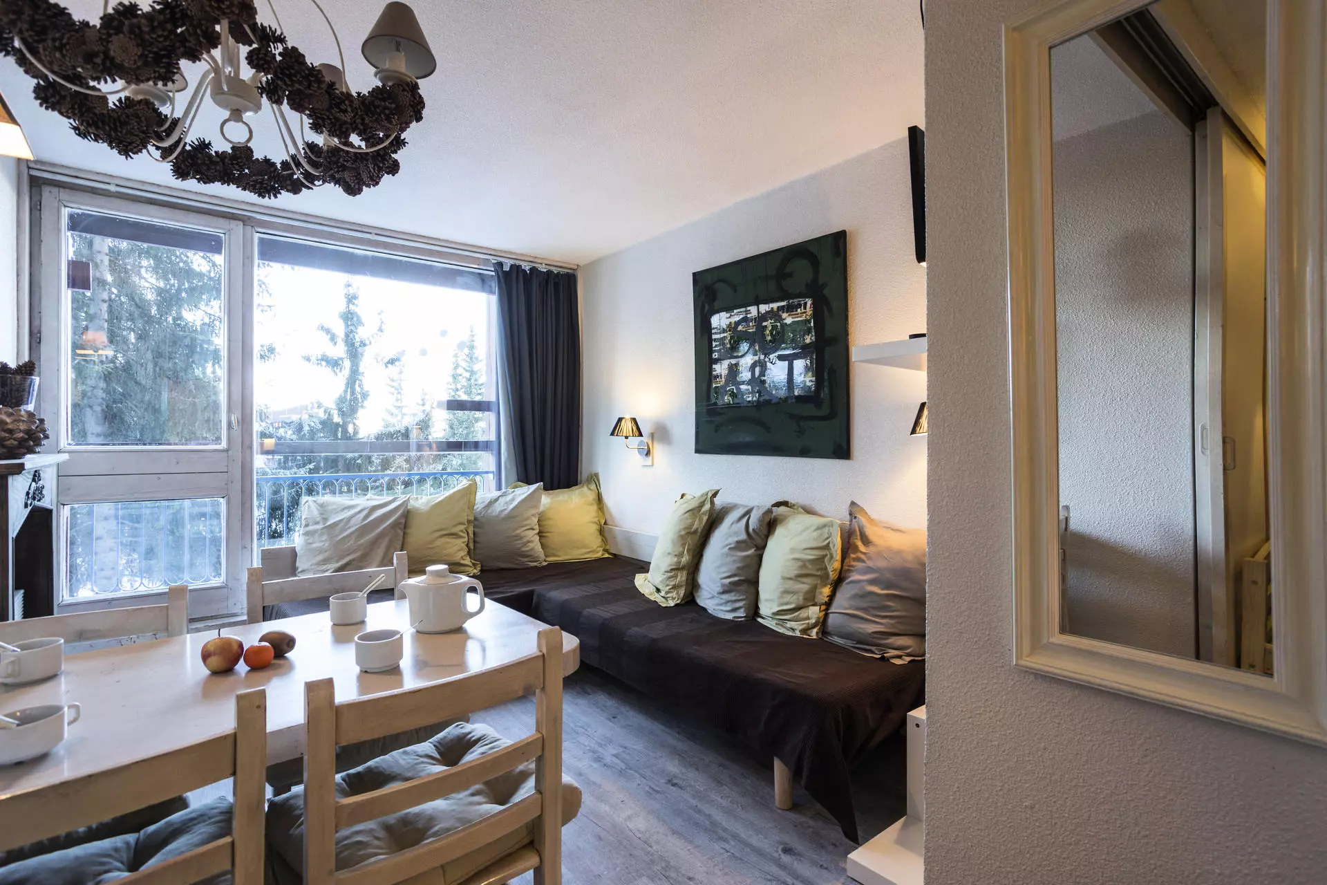 25m² studio cabin for 4 people, southwest-facing, on the 6th floor of the Belles Challes du Charvet residence, at the foot of the slopes and shops. With balcony.