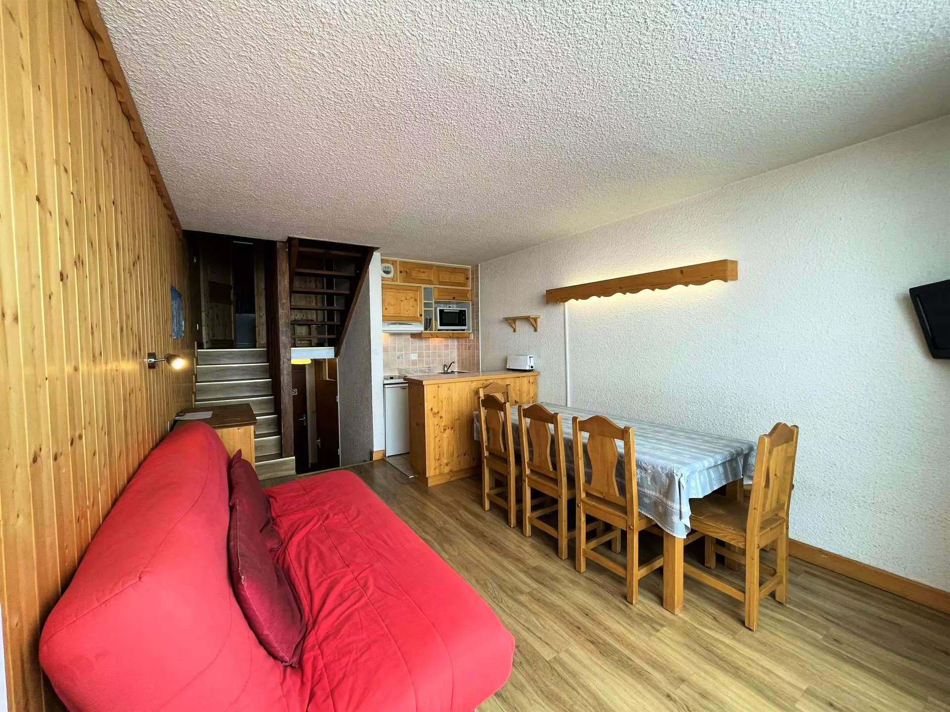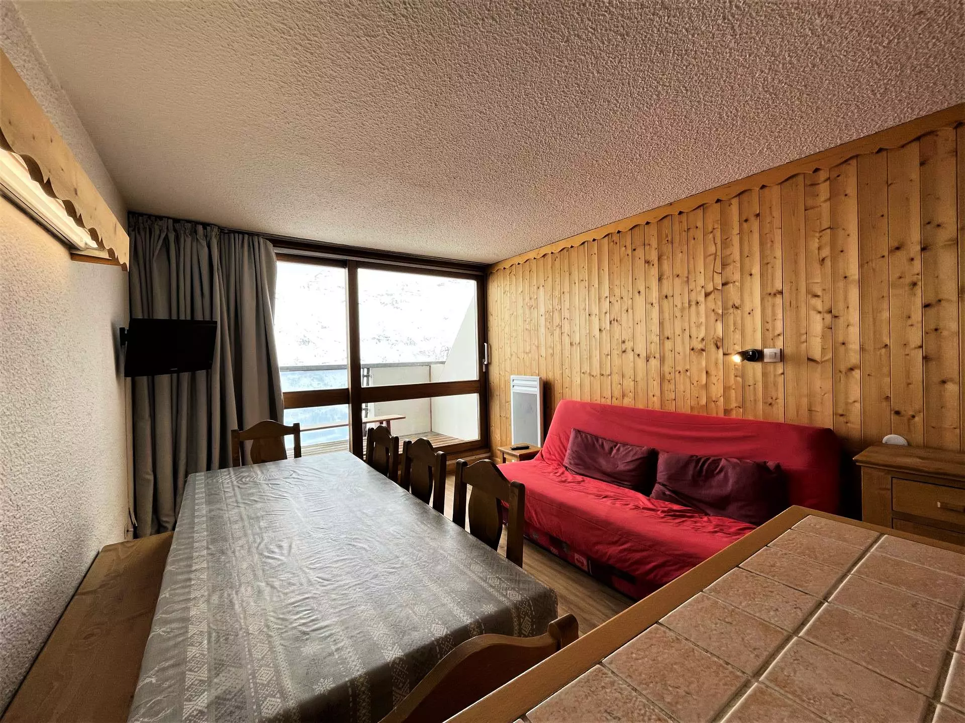 Residence Danchet (No. 628), 3-room triplex for 8 people, 55m², on the 6th floor with elevator, south-facing with balcony. Accommodation partially renovated in autumn 2018