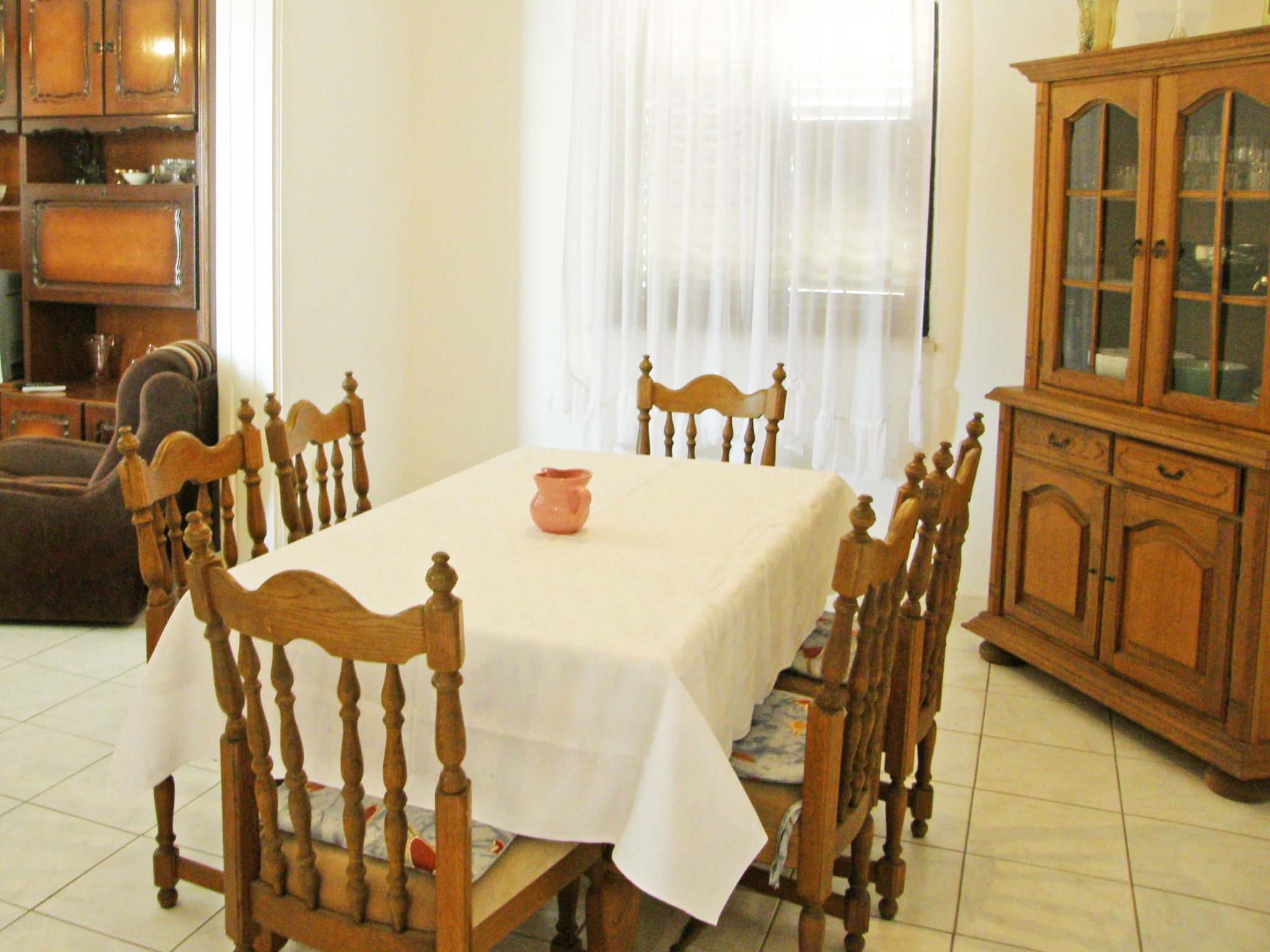 4-room apartment 140 m2 on 1st floor, west facing position. Living/dining room with 1 double sofabed (160 cm, length 190 cm), satellite TV. Exit to the terrace. 1 room with 1 french bed (160 cm, length 200 cm), shower/WC. 1 room with 1 french bed (160 cm, length 200 cm), shower/WC. 1 room with 1 french bed (160 cm, length 200 cm). Exit to the terrace. Open kitchen (4 hot plates, oven, freezer). Exit to the terrace. Shower/WC. Terrace 24 m2, roofed. Terrace furniture. Marvellous view of the sea and the resort. Facilities: Internet (WiFi, free). 1 small pet/ dog allowed.