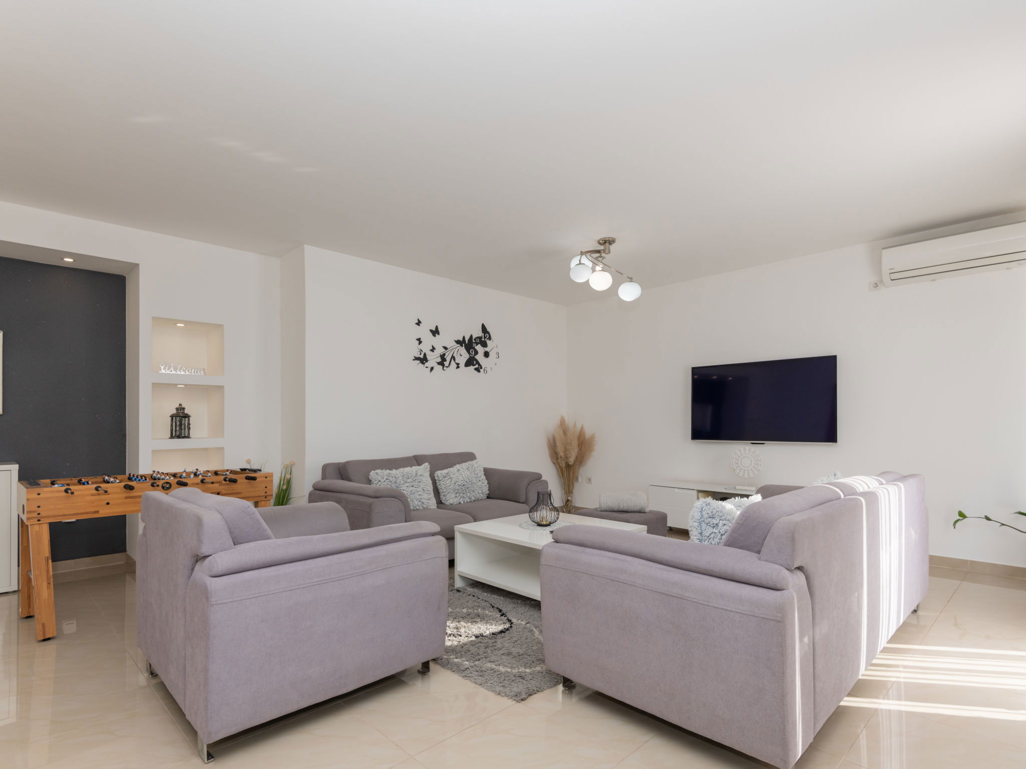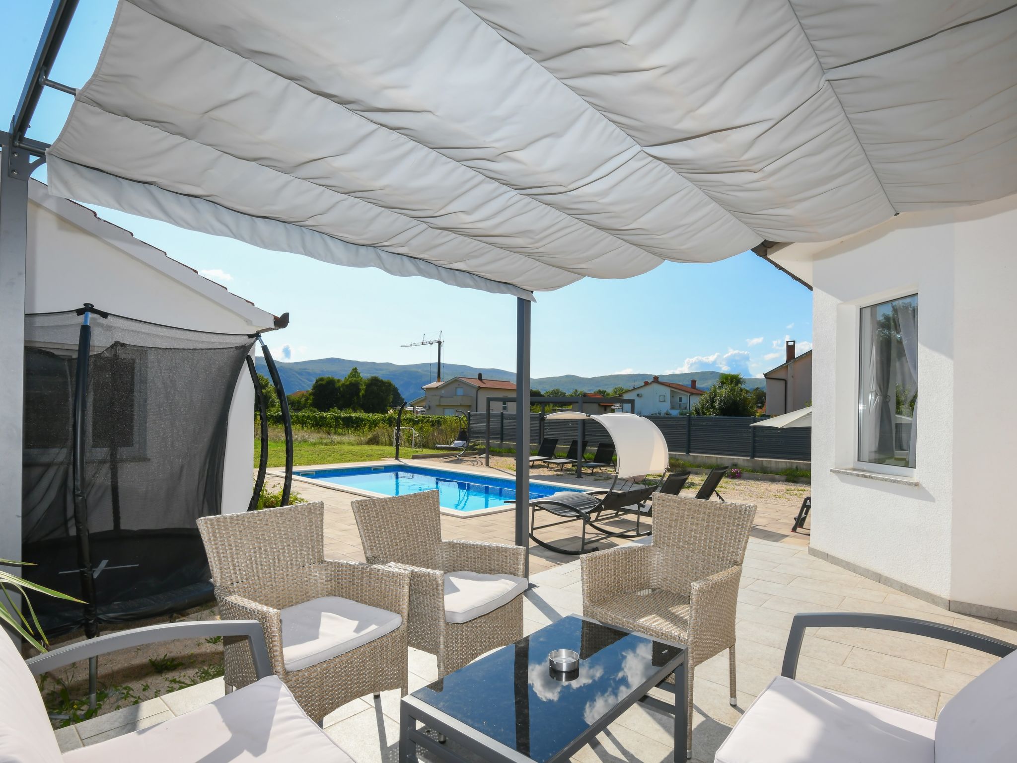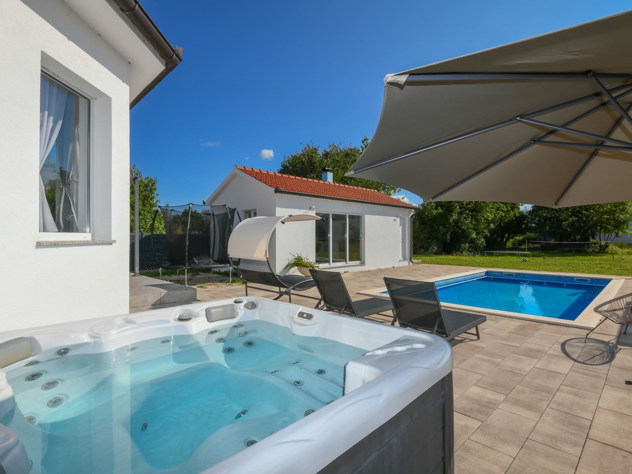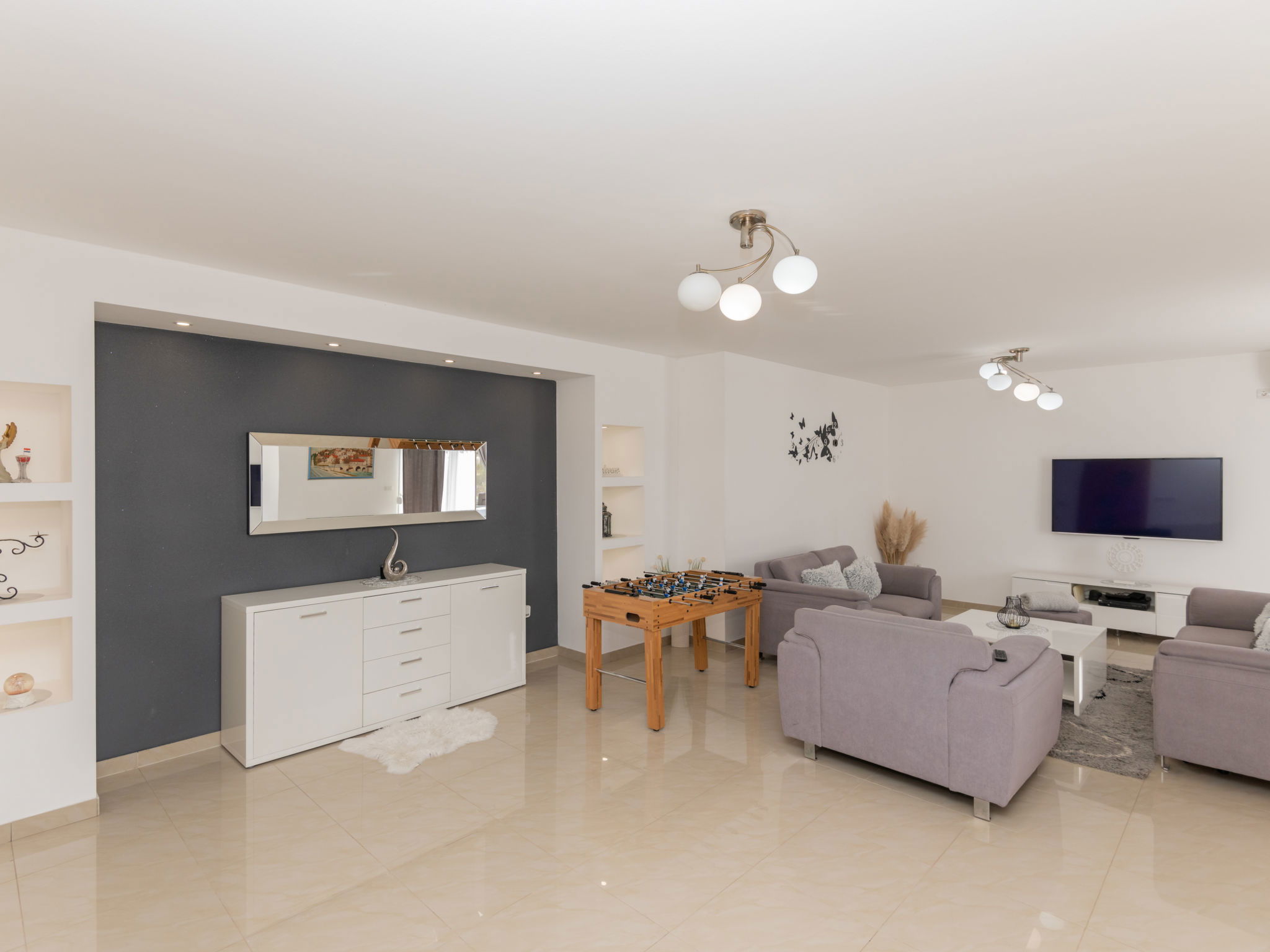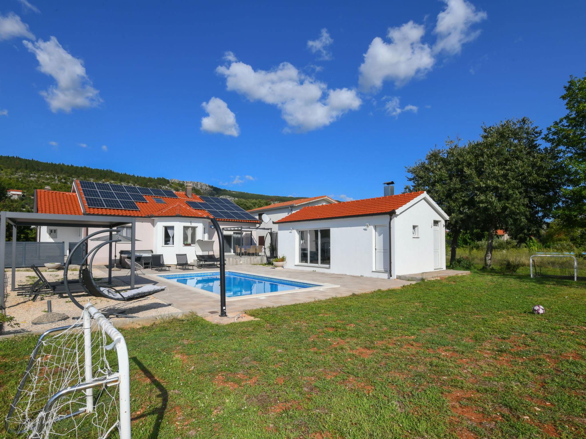 Donji Proložac 6 km from Imotski: Single-family house "Ana". 38 km from the sea, 5 km from the lake. Private: property 1'200 m2, swimming pool angular (8 x 4 m, depth 150 cm, seasonal availability: 01.May. - 01.Oct.) with internal staircase. Outdoor shower, hot tub, table tennis, terrace (250 m2), garden furniture, barbecue house, children's playground. In the house: internet access, table football, trampoline, washing machine. Parking (for 4 cars) at the house on the premises. Shop 2 km, restaurant 4 km, bus stop 5.5 km, pebble beach 38 km, rocky beach 38 km. Well-known lakes can easily be reached: Modro jezero 6 m, Crveno jezero 6 m.