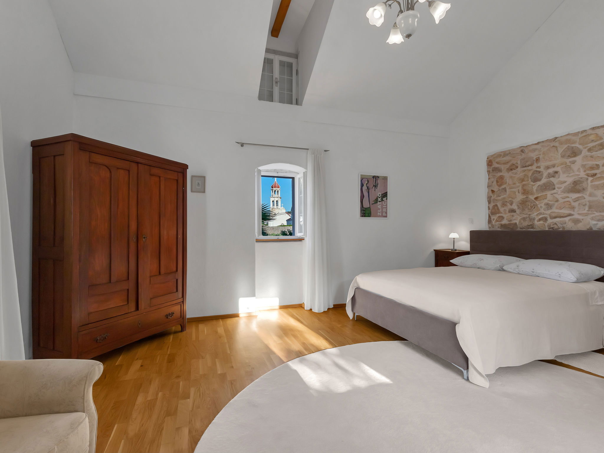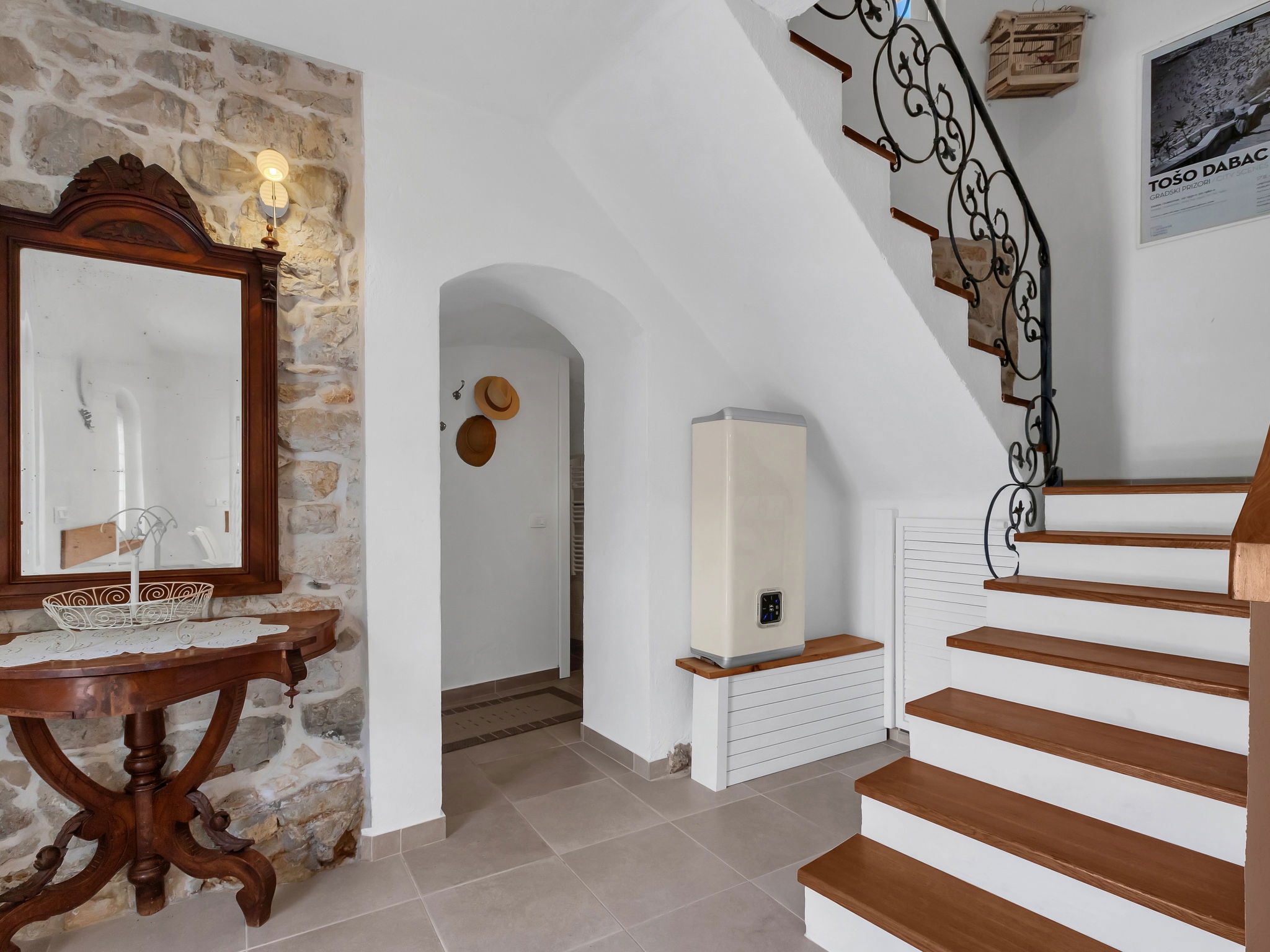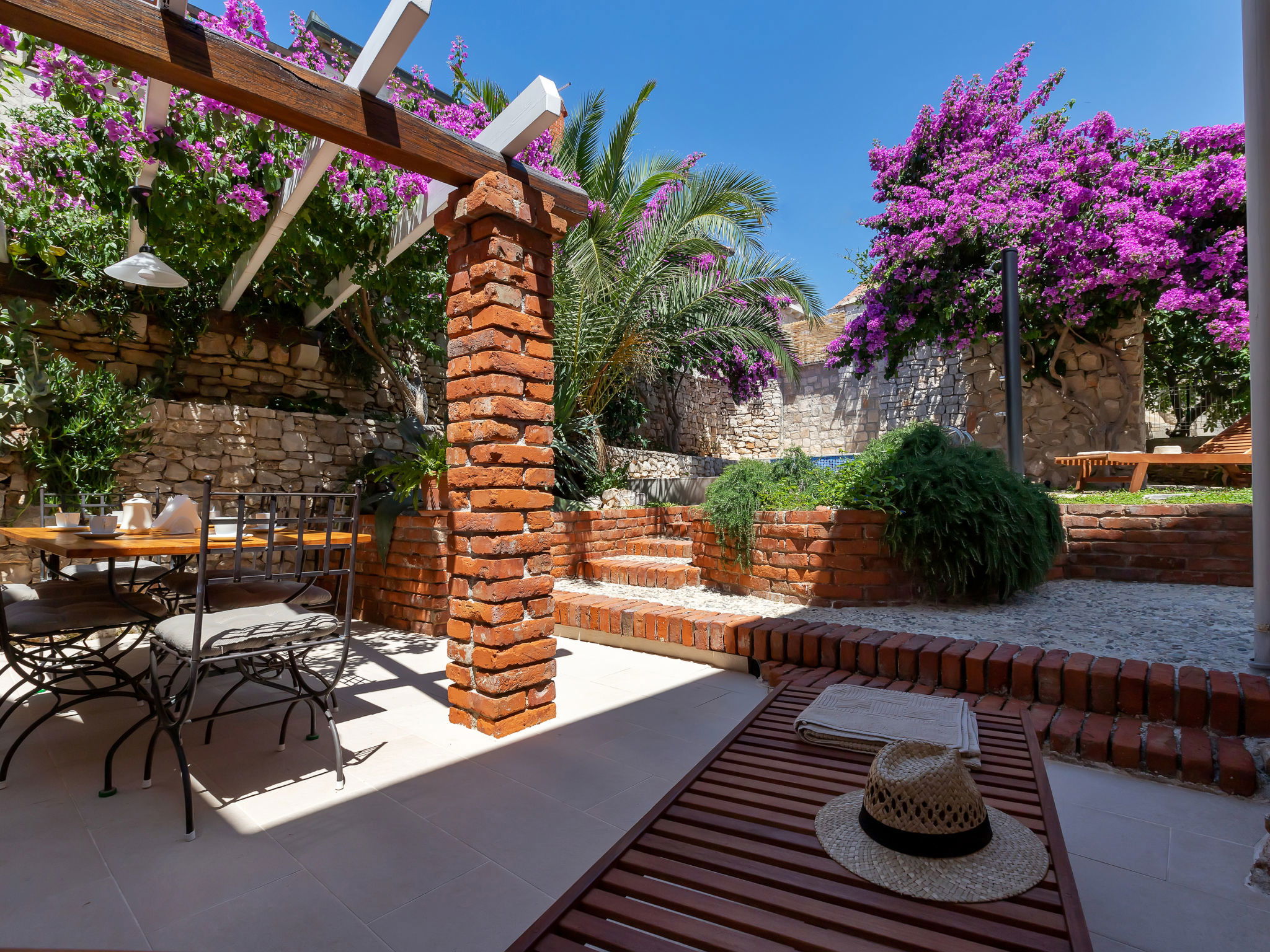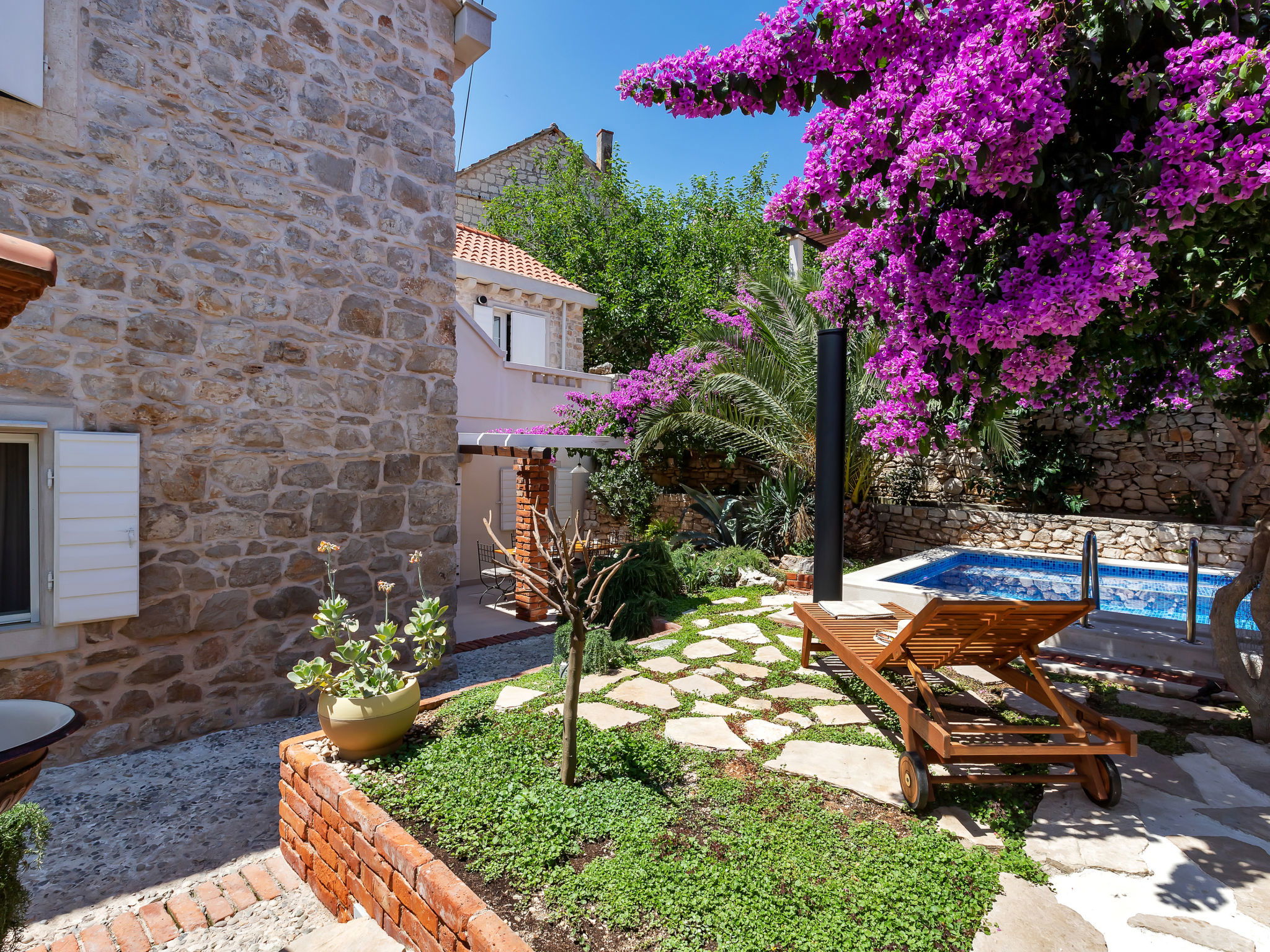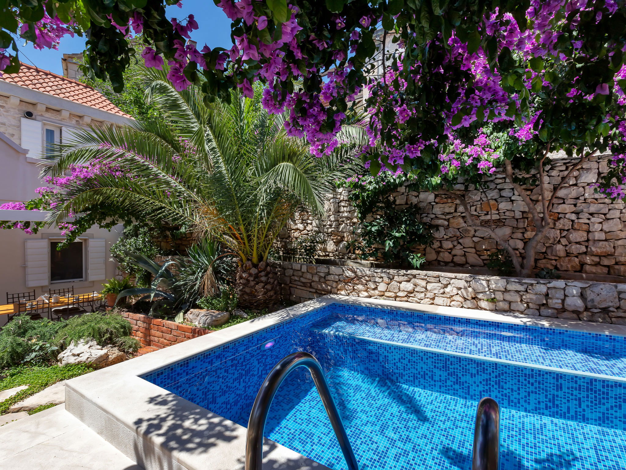 Single-family house "Marijan", 2 storeys. In a sunny position, excellent location: right in the centre but still quiet, in the heart of the city, 50 m from the sea, 50 m from the beach. Private: property 120 m2 (fenced), well-kept terraced garden, swimming pool angular, heated (4 x 3 m, 14 m2, depth 150 cm, seasonal availability: 10.Apr. - 10.Oct.) with salt-electrolysis pool-cleaning system. Outdoor shower, barbecue. In the house: internet access, roof terrace, washing machine. Parking (for 2 cars) at the house on the premises. Shop, restaurant 400 m, bus stop 1 km, pebble beach 50 m. Swimming pool with hydromassage. Parking space for 2 small cars.