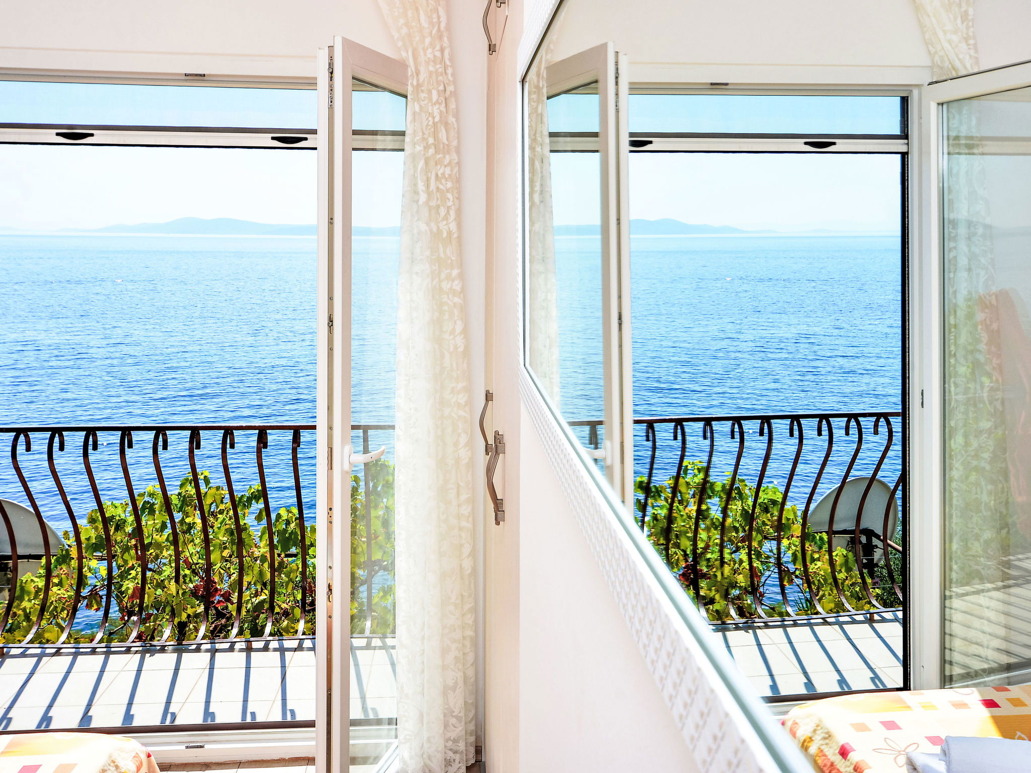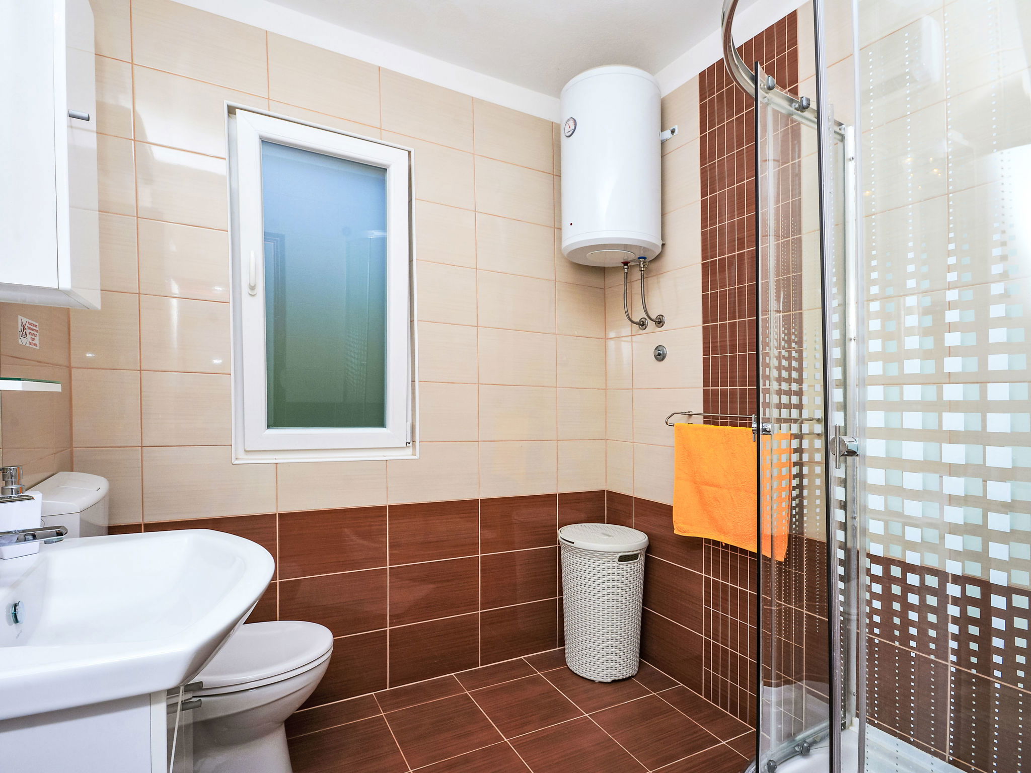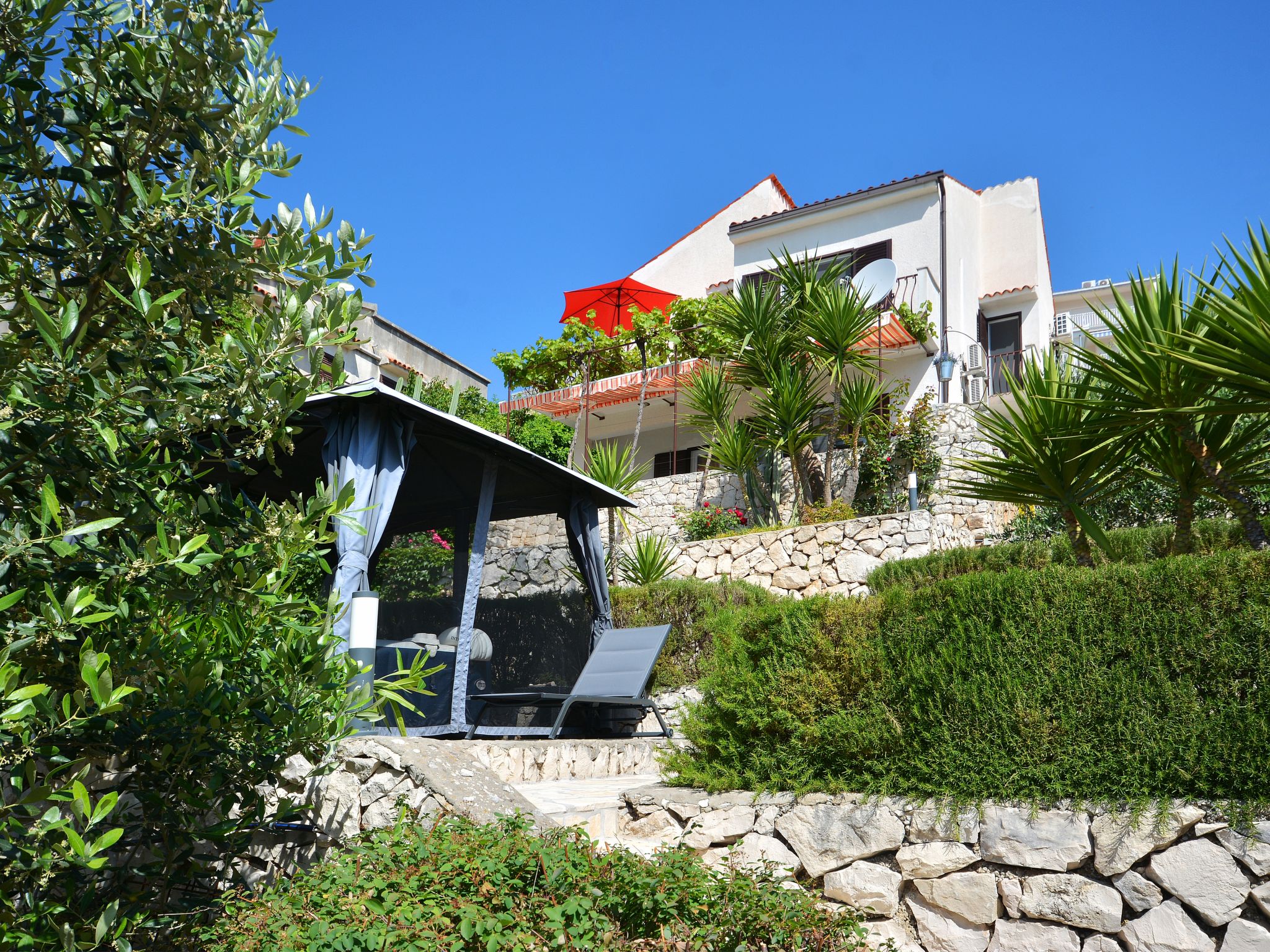 House "Teo", 2 storeys. 5 km from the centre of Trogir, in a sunny, elevated position on a slope, 30 m from the sea, 30 m from the beach. Private: property 650 m2 (fenced), terraced garden. Terrace (50 m2), garden furniture. In the house: internet access, washing machine. 40 m stepped path (50 steps) to the house. Roofed, parking (for 2 cars) at 80 m. Supermarket 1.2 km, restaurant 1.2 km, café 400 m, bus stop 1.6 km, rocky beach, concrete beach 30 m. Please note: airfield 9 km from the property.