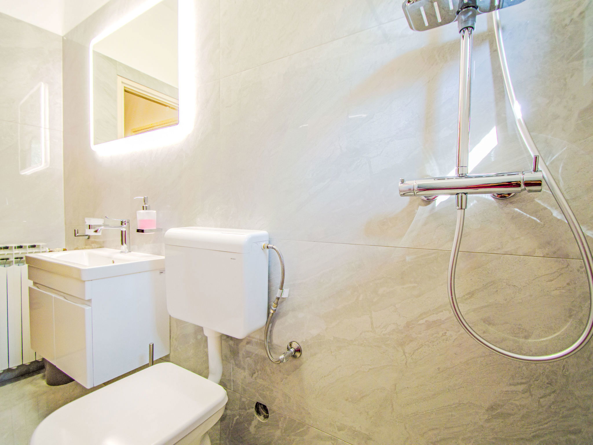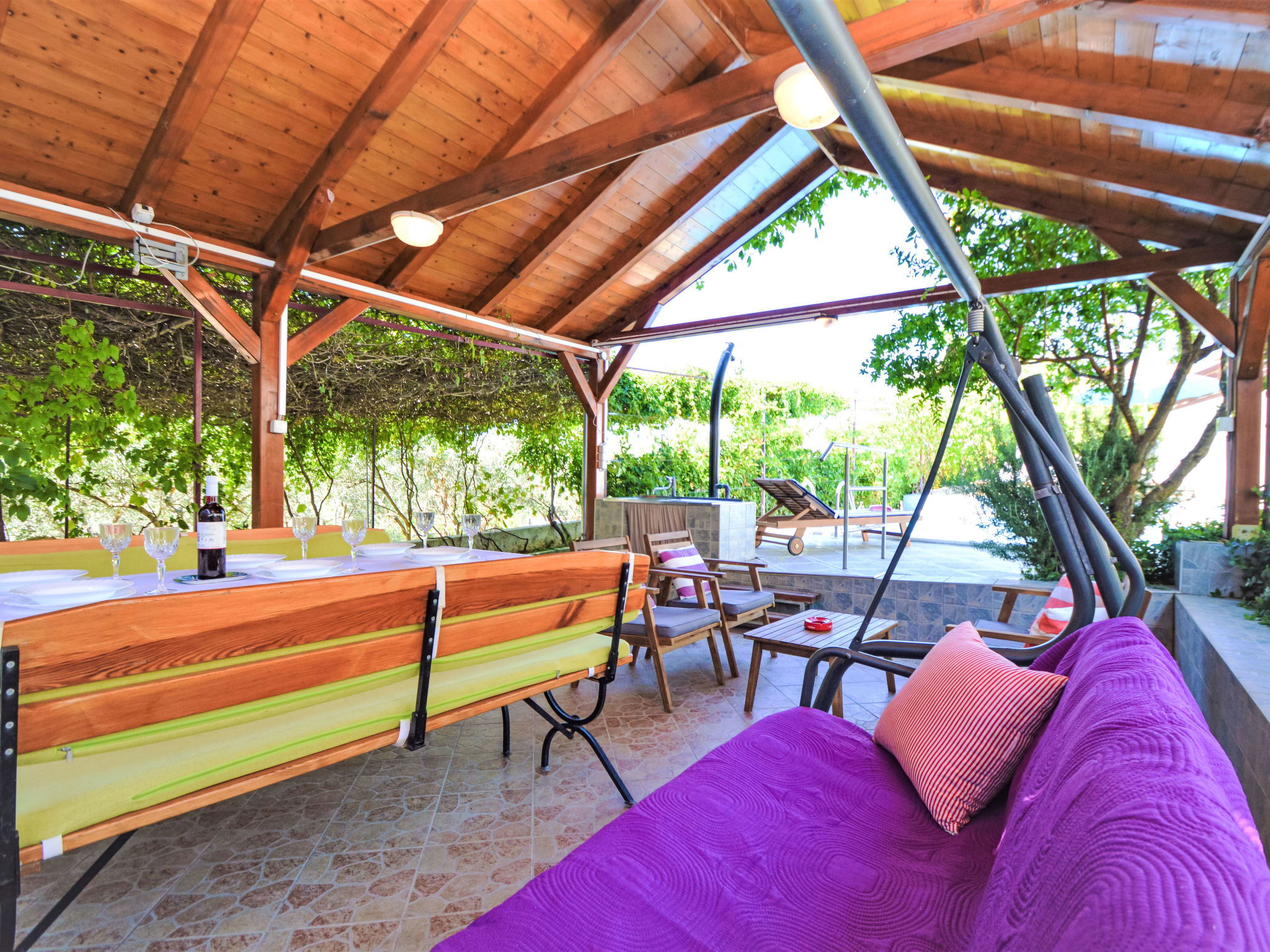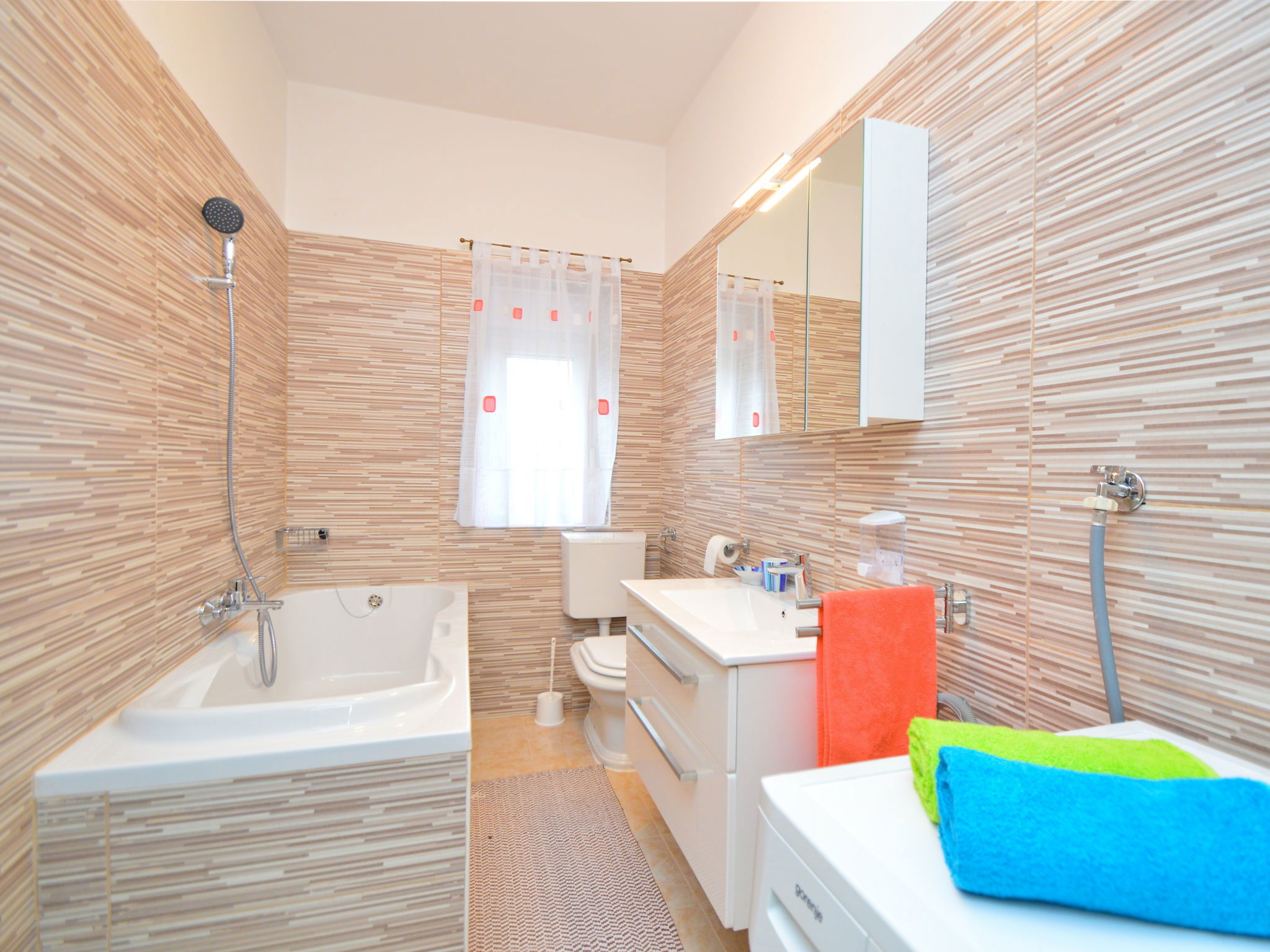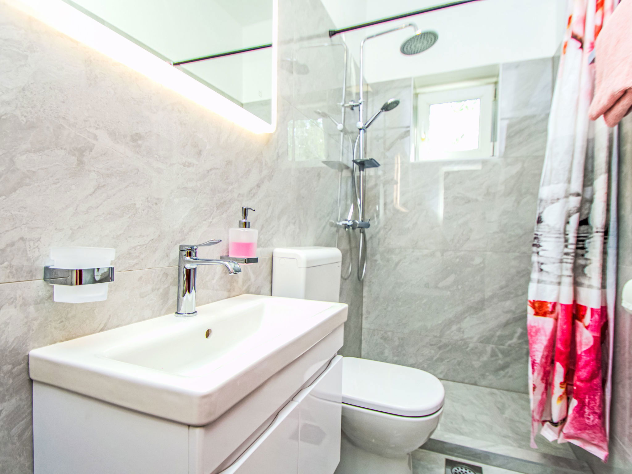 2-family house "Marija". 4 km from the centre of Šibenik, in a sunny position, 5 km from the sea. For shared use: property 1'500 m2 (fenced), garden. Barbecue. Private: swimming pool (6 x 4 m, depth 160 cm, seasonal availability: 01.May. - 01.Oct.). Outdoor shower, terrace (25 m2), garden furniture. In the house: internet access. Parking at the house on the premises, single garage. Shop 3.5 km, restaurant 5 km, bus stop 1.3 km, pebble beach 5 km. Nearby attractions: NP Krka 20 km. Well-known lakes can easily be reached: Prokljansko jezero 6.5 km.