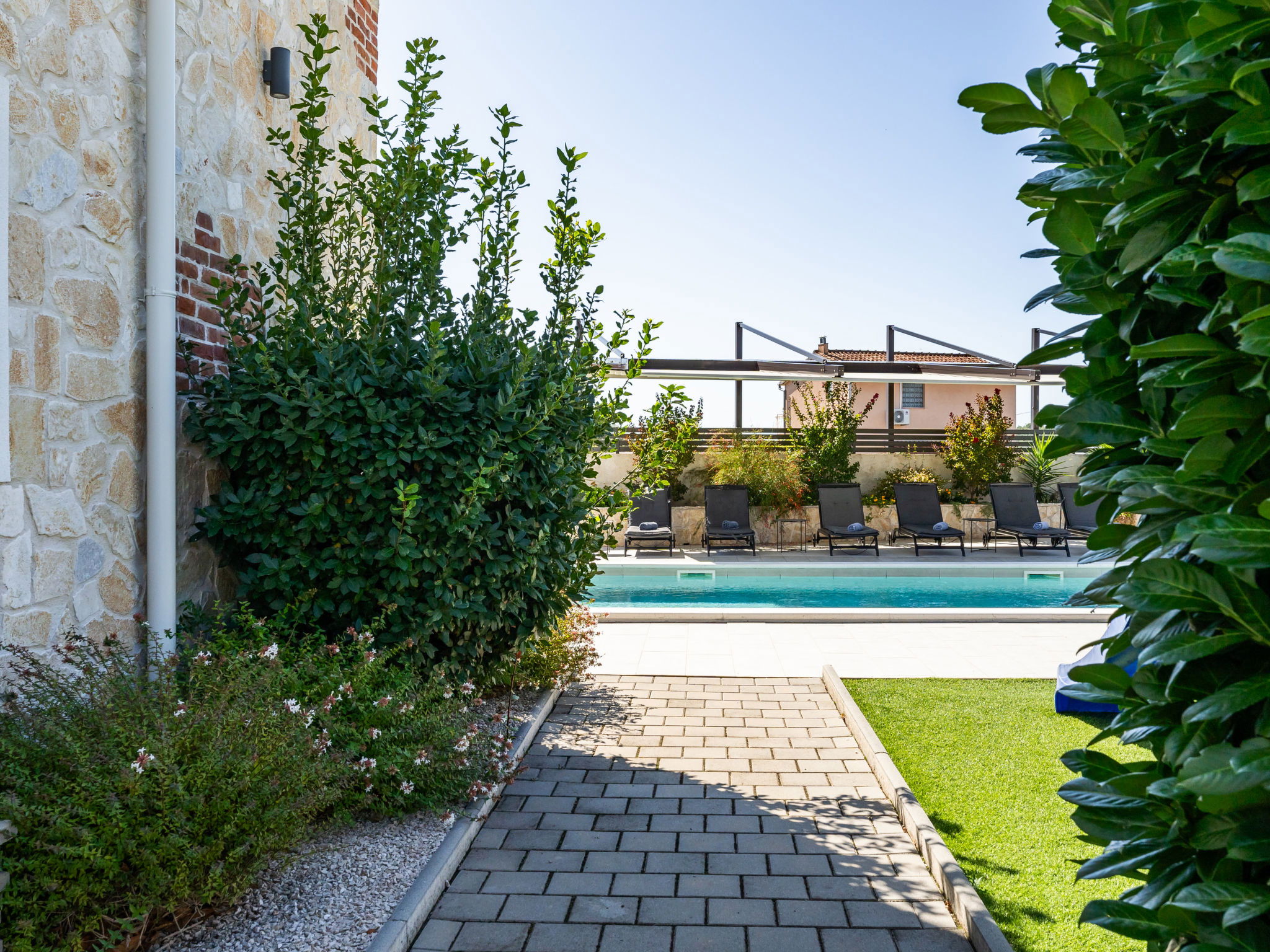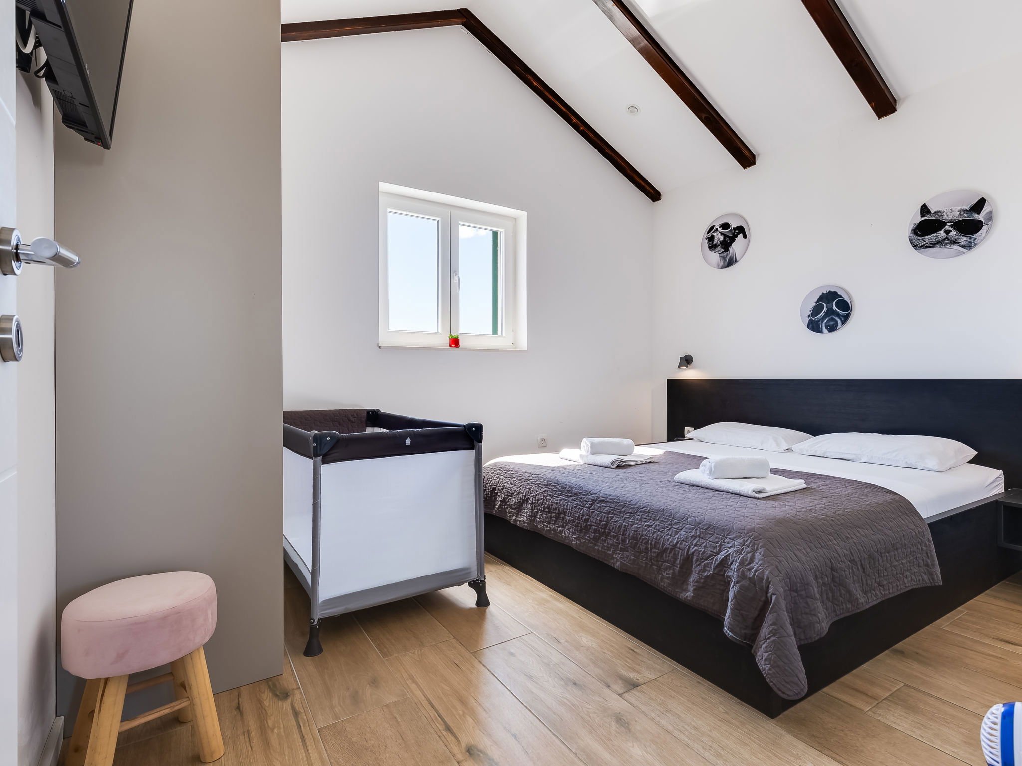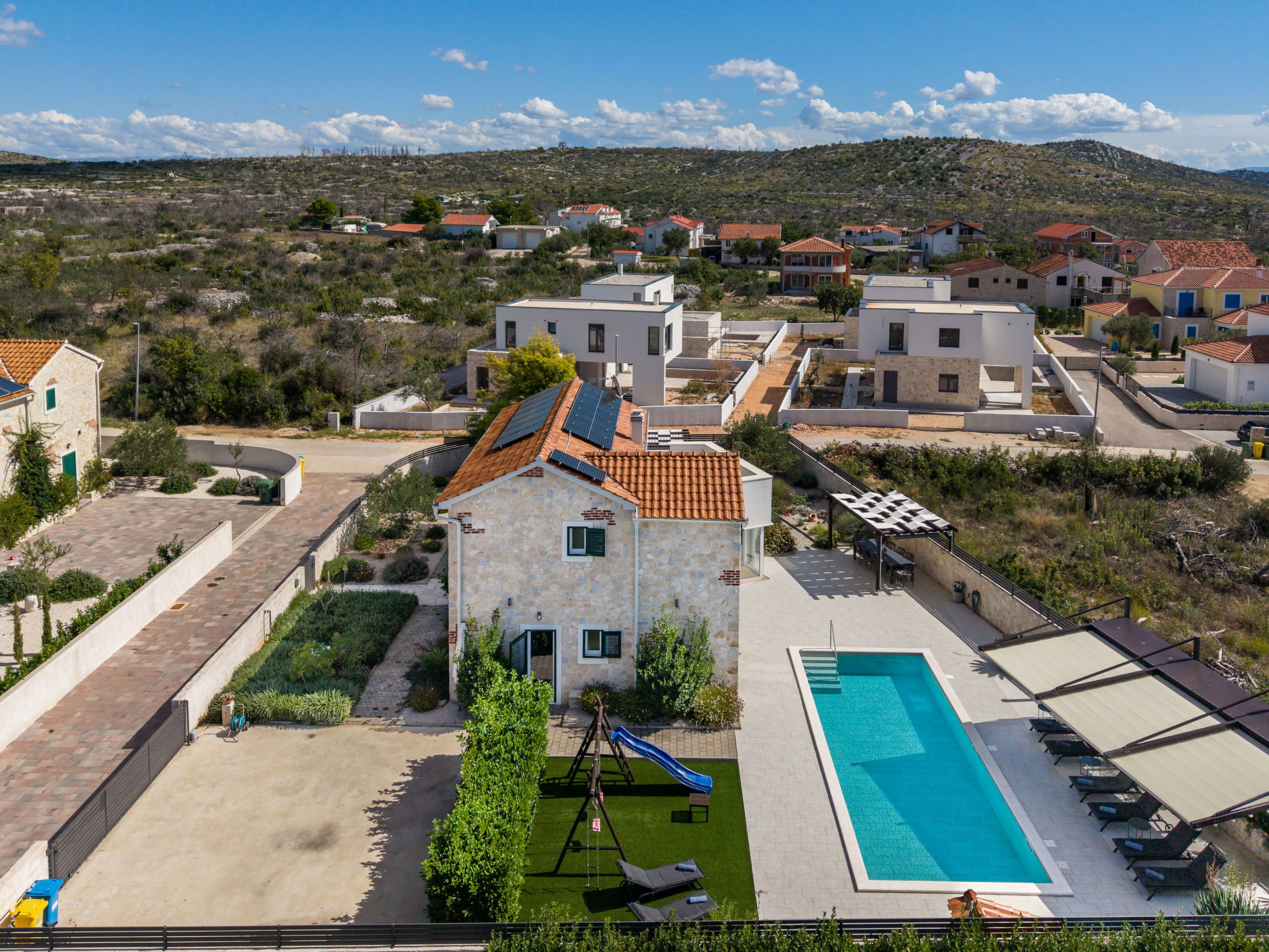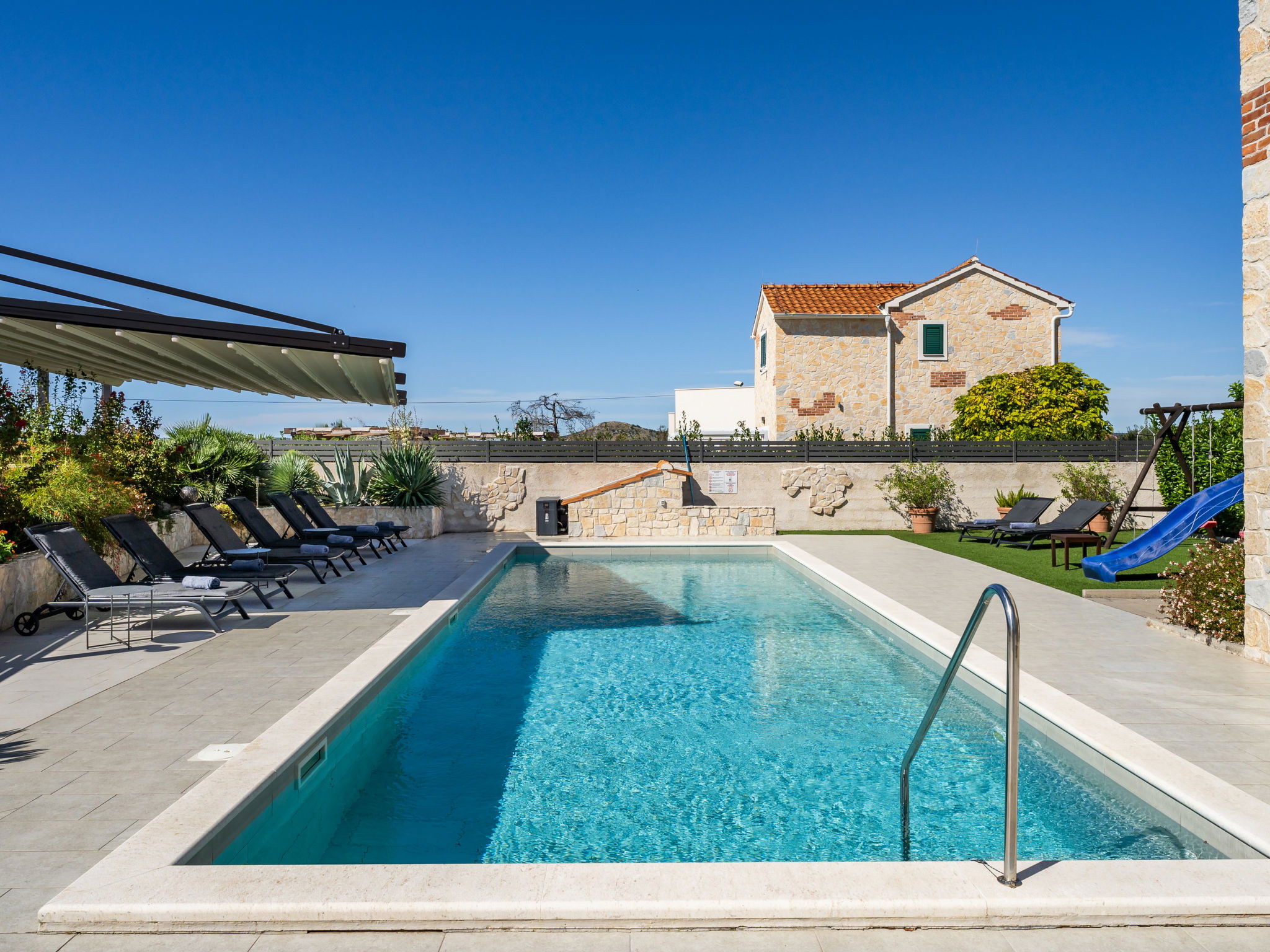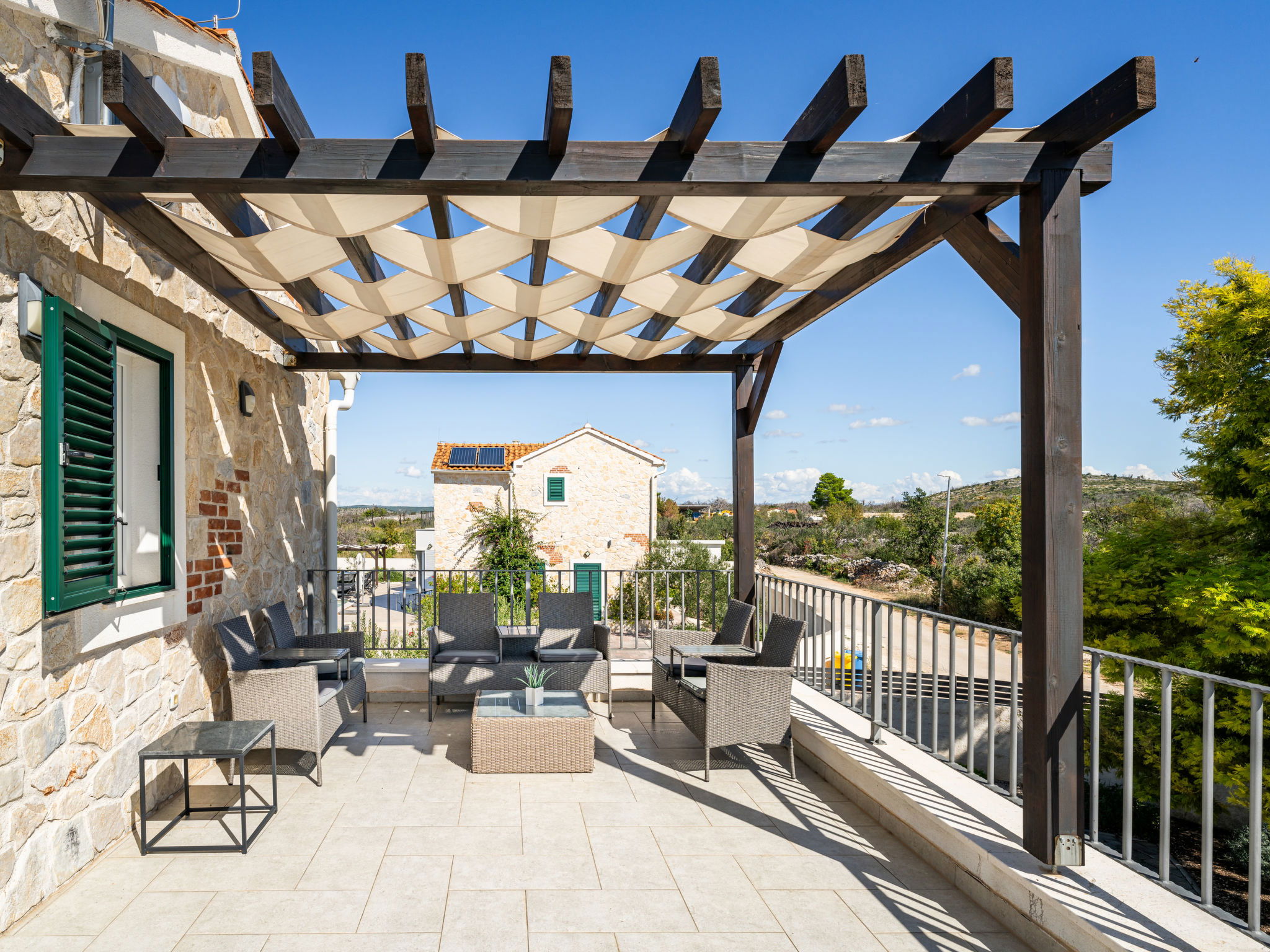 Villa "Carmen", 2 storeys, built in 2018. 1.5 km from the centre of Zaton, in a quiet, sunny position, 1.5 km from the sea, 2.5 km from the beach. Private: property 800 m2 (fenced), swimming pool angular, heated (11 x 4 m, depth 150 cm, seasonal availability: 01.May. - 30.Sep.) with internal staircase. Outdoor shower, hot tub, pergola, terrace (40 m2), garden furniture, barbecue. In the house: internet access, sauna, washing machine, tumble dryer. Parking (for 3 cars) at the house on the premises. Shop 1.5 km, restaurant 1.5 km, bus stop "Zaton/Križ" 500 m, pebble beach 3 km, concrete beach 2.5 km. Nearby attractions: NP Krka 20 km. Hot tub available from 01.04.-31.10.