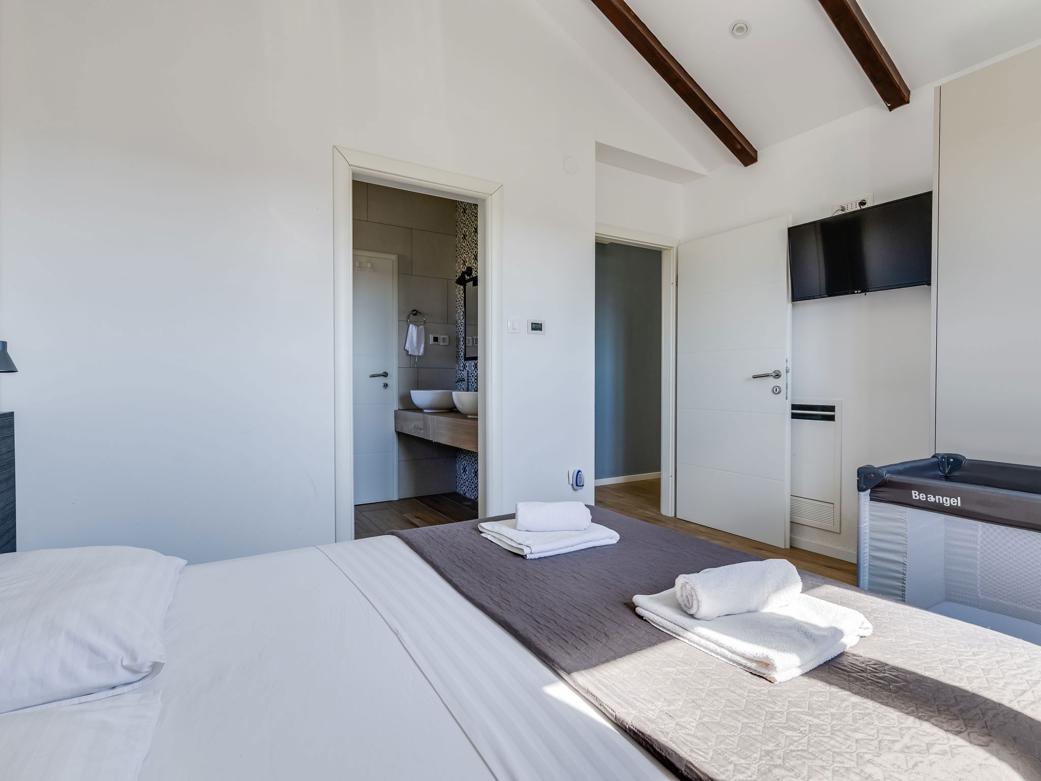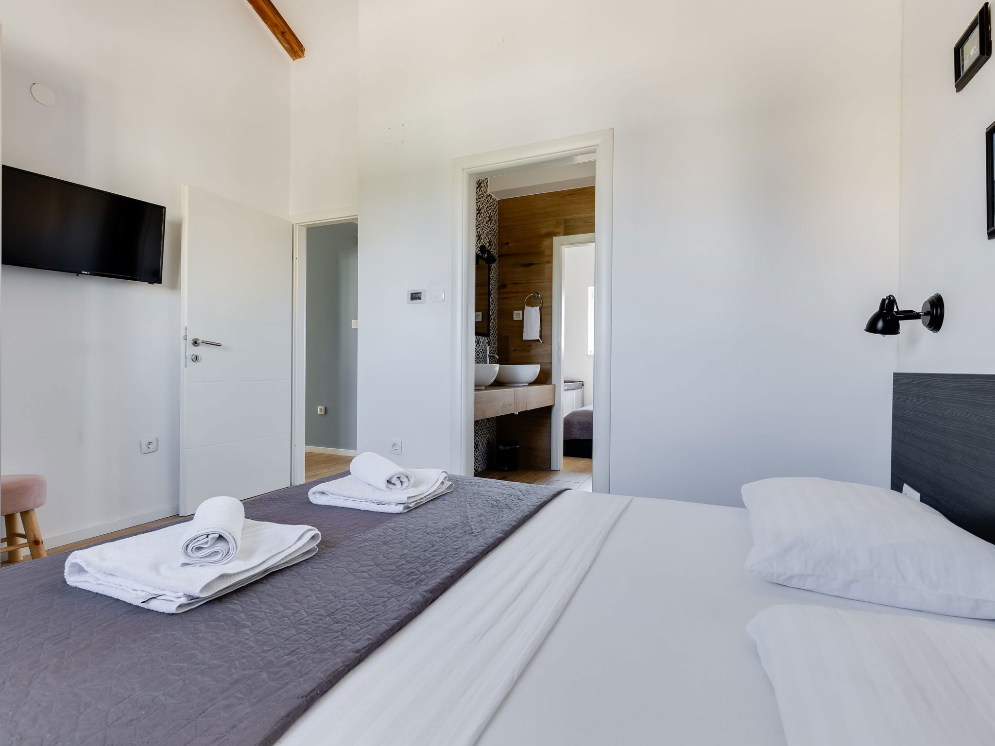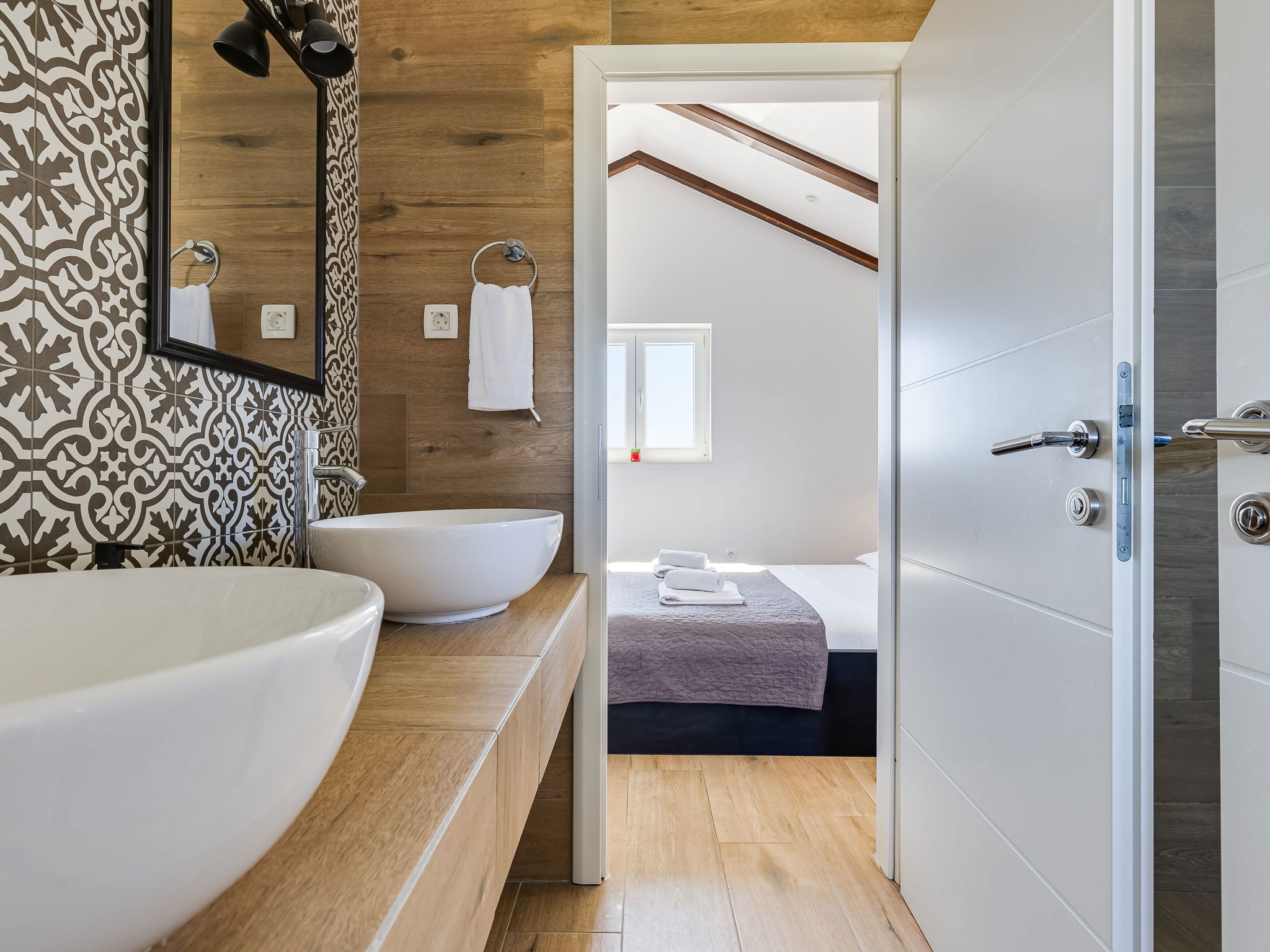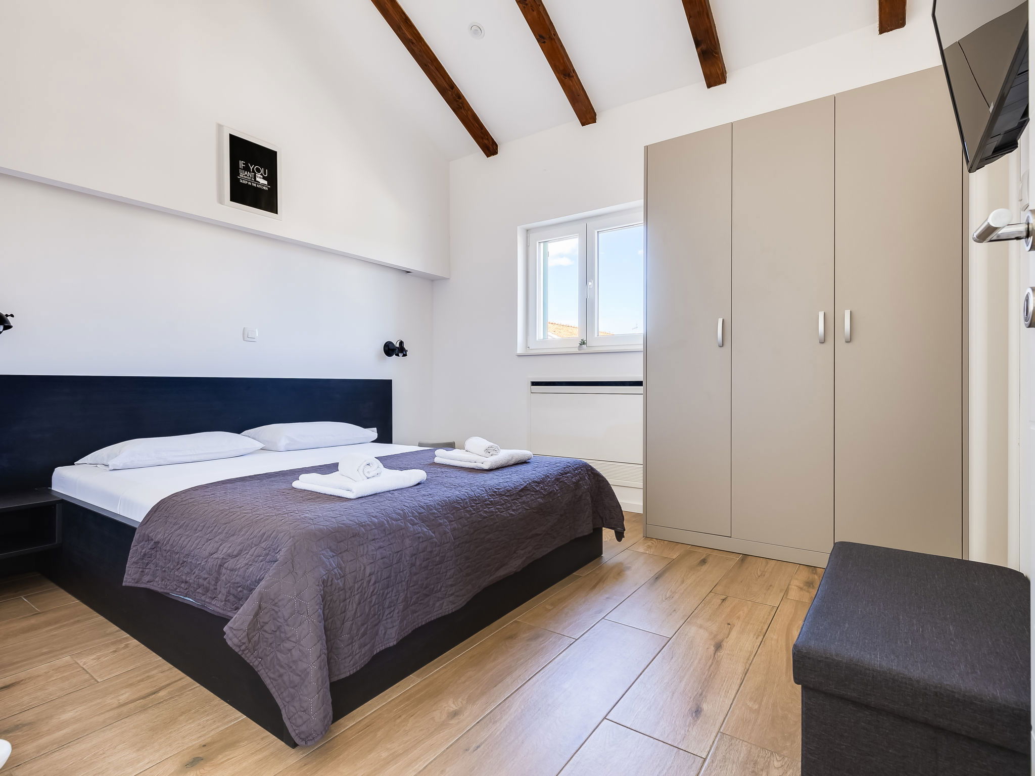 Villa "Carmen", 2 storeys, built in 2018. 1.5 km from the centre of Zaton, in a quiet, sunny position, 1.5 km from the sea, 2.5 km from the beach. Private: property 800 m2 (fenced), swimming pool angular, heated (11 x 4 m, depth 150 cm, seasonal availability: 01.May. - 30.Sep.) with internal staircase. Outdoor shower, hot tub, pergola, terrace (40 m2), garden furniture, barbecue. In the house: internet access, sauna, washing machine, tumble dryer. Parking (for 3 cars) at the house on the premises. Shop 1.5 km, restaurant 1.5 km, bus stop "Zaton/Križ" 500 m, pebble beach 3 km, concrete beach 2.5 km. Nearby attractions: NP Krka 20 km. Hot tub available from 01.04.-31.10.