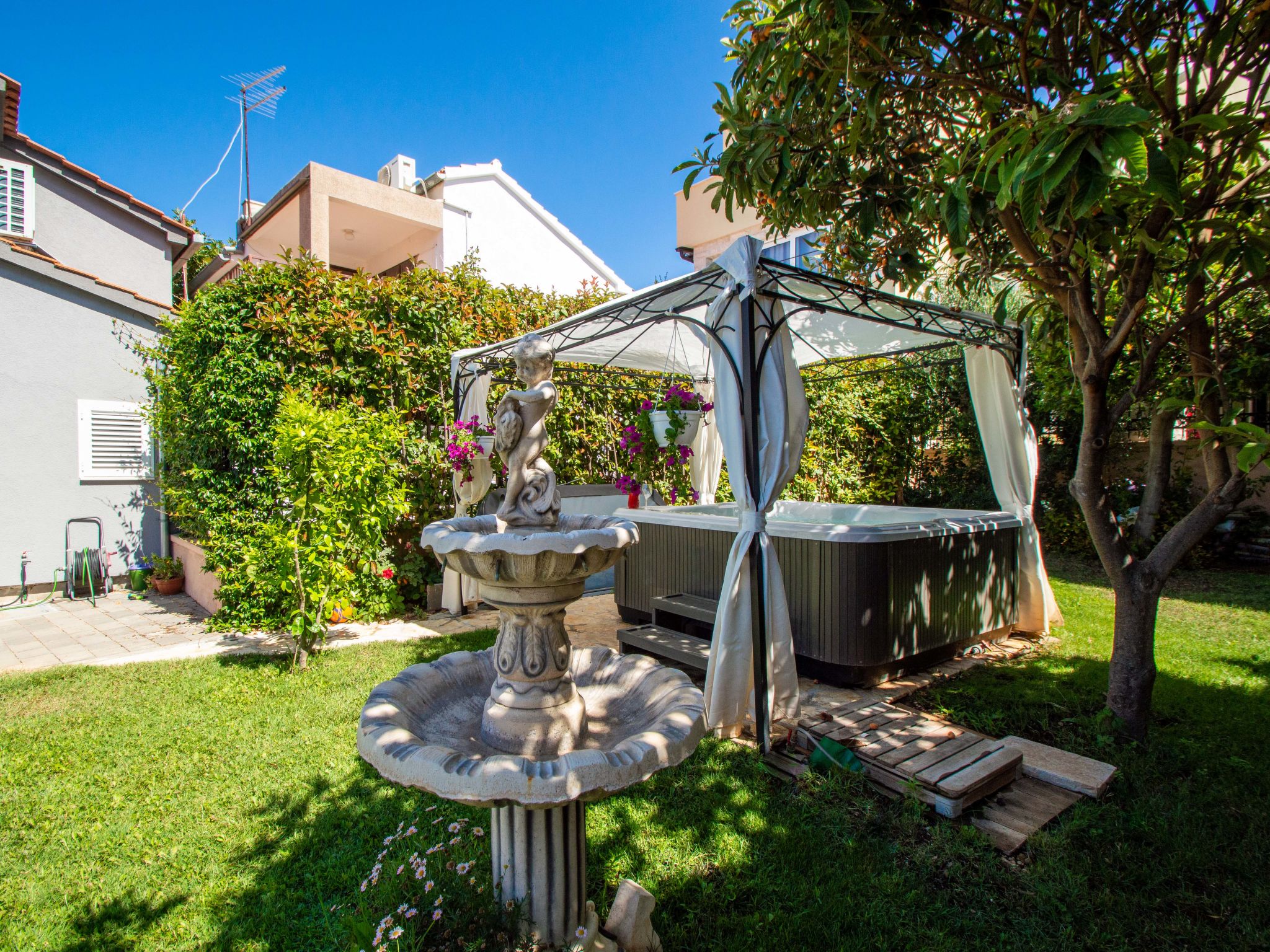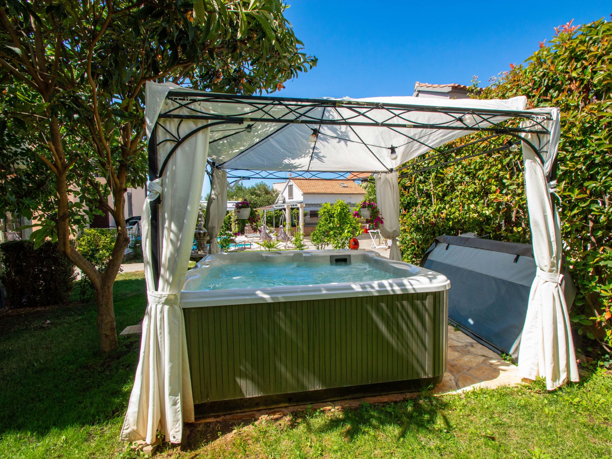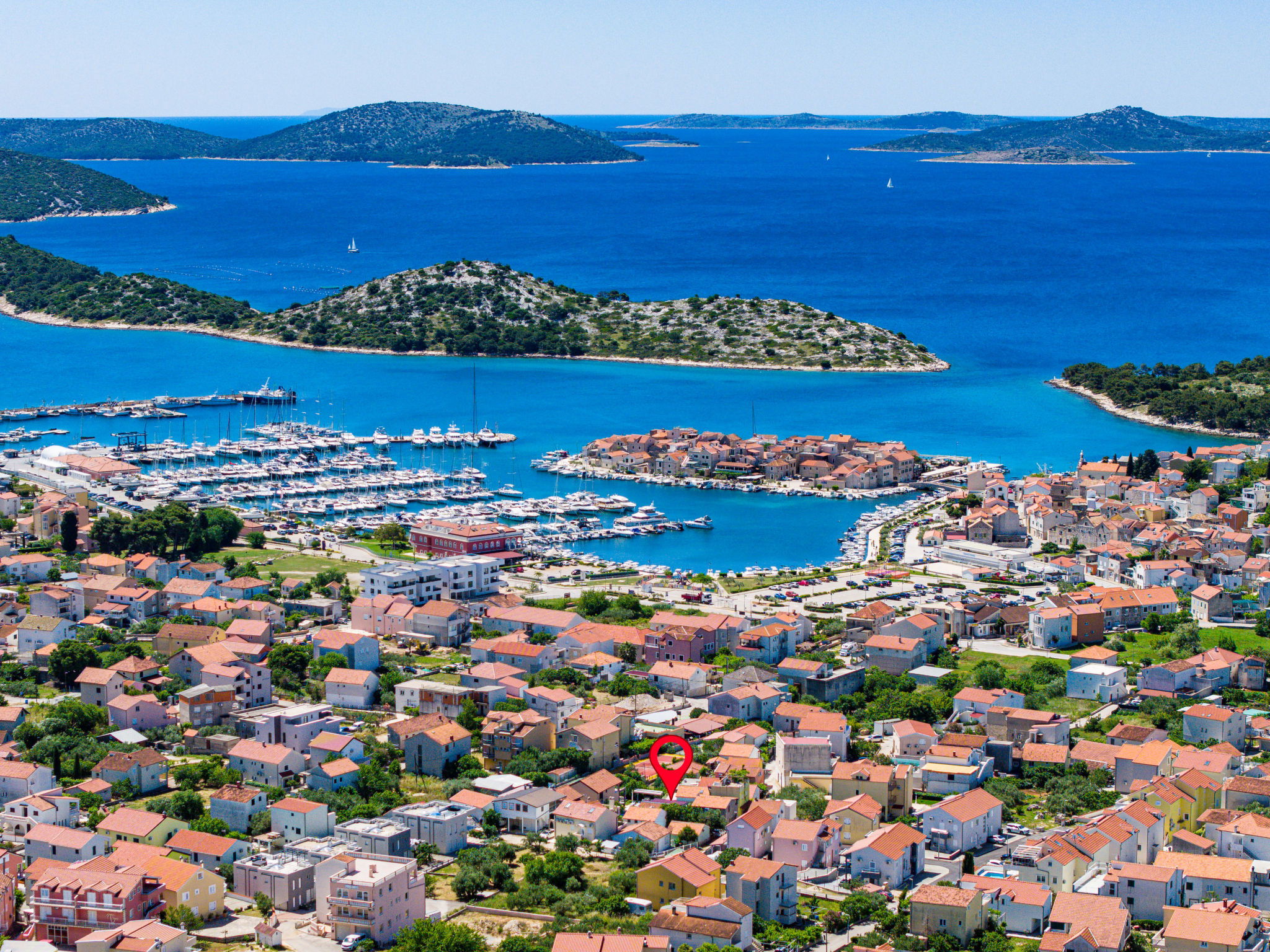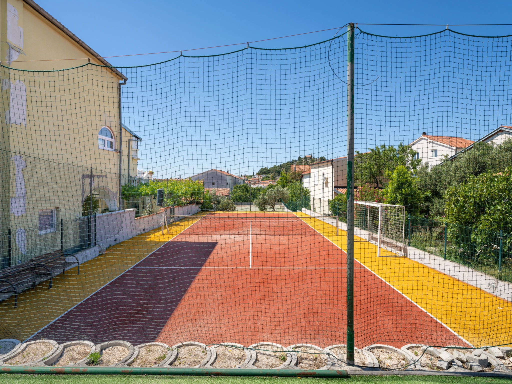 Tribunj 3 km from Vodice: Single-family house "Tina", 2 storeys. In a quiet, sunny position, 450 m from the sea, 550 m from the beach. For shared use: property 2'000 m2 (fenced), swimming pool angular (8 x 4 m, depth 130 - 160 cm, seasonal availability: 11.May. - 12.Oct.) with internal staircase. Outdoor shower, hot tub, tennis, basketball, barbecue. In the house: internet access, washing machine. Airport transfer. Parking at the house on the premises. Shop 350 m, restaurant 400 m, bus stop 3.7 km, pebble beach 950 m, rocky beach, concrete beach 550 m. Marina 550 m. Nearby attractions: NP Krka 25 km. Please note: Property ref. HR4405.128, 130 is situated on the same property. Swimming pool with hydromassage. Hot tub (extra).