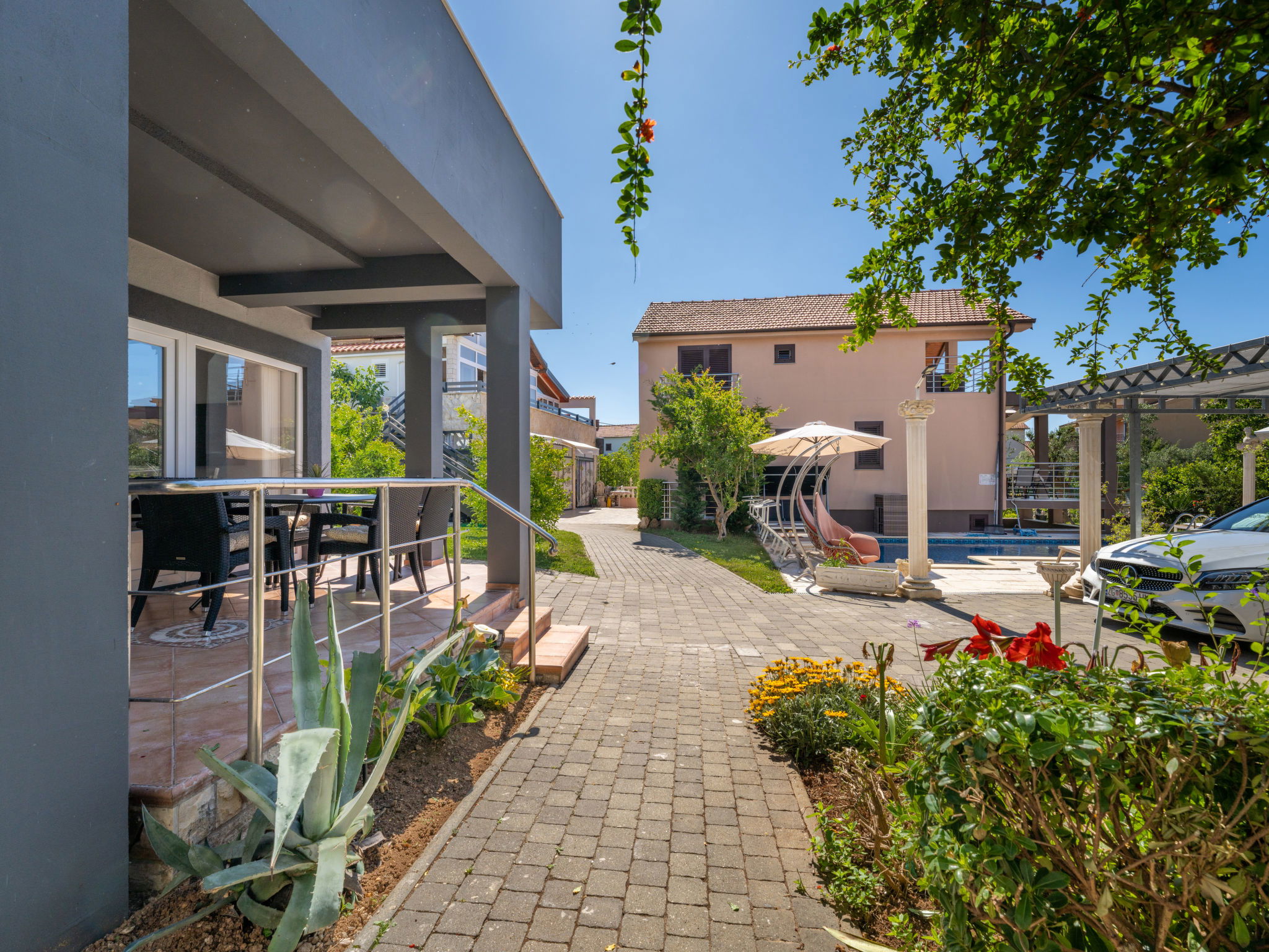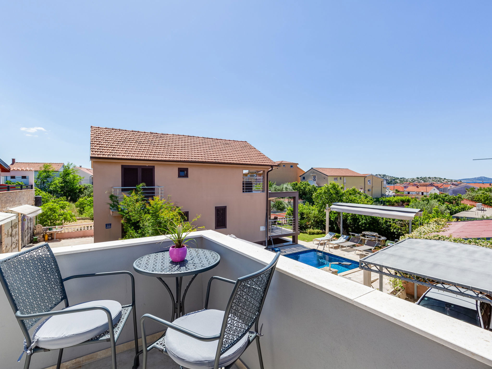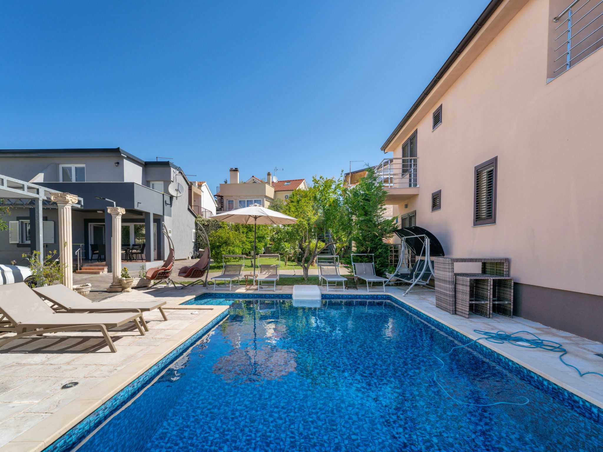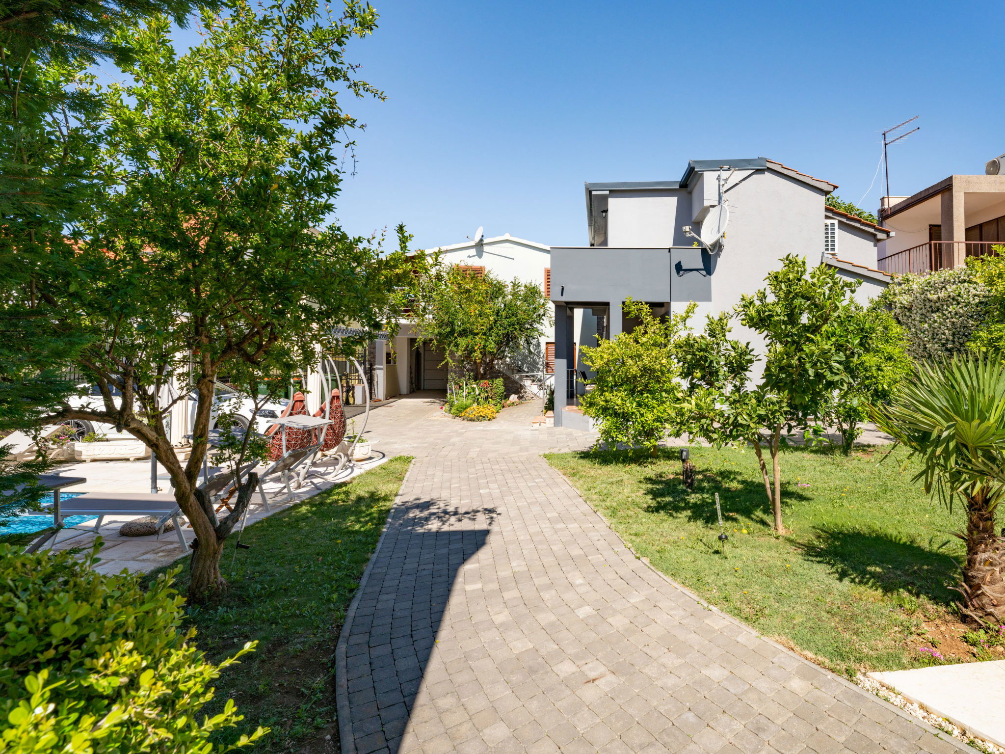 Tribunj 3 km from Vodice: Single-family house "Tina", 2 storeys. In a quiet, sunny position, 450 m from the sea, 550 m from the beach. For shared use: property 2'000 m2 (fenced), swimming pool angular (8 x 4 m, depth 130 - 160 cm, seasonal availability: 11.May. - 12.Oct.) with internal staircase. Outdoor shower, hot tub, tennis, basketball, barbecue. In the house: internet access, washing machine. Airport transfer. Parking at the house on the premises. Shop 350 m, restaurant 400 m, bus stop 3.7 km, pebble beach 950 m, rocky beach, concrete beach 550 m. Marina 550 m. Nearby attractions: NP Krka 25 km. Please note: Property ref. HR4405.128, 130 is situated on the same property. Swimming pool with hydromassage. Hot tub (extra).