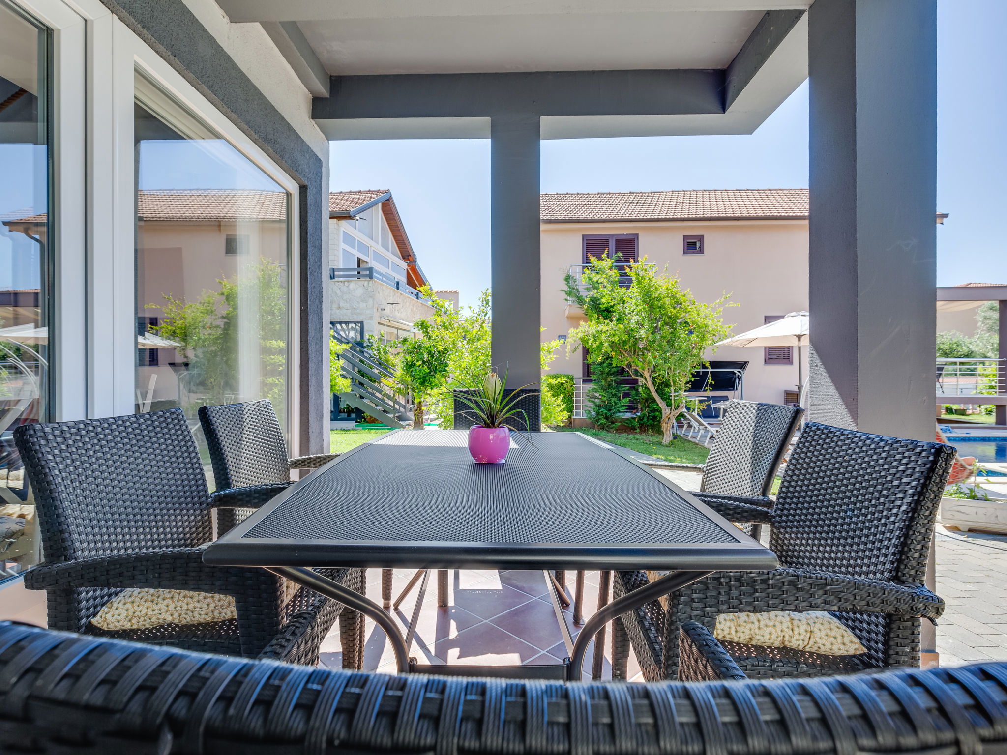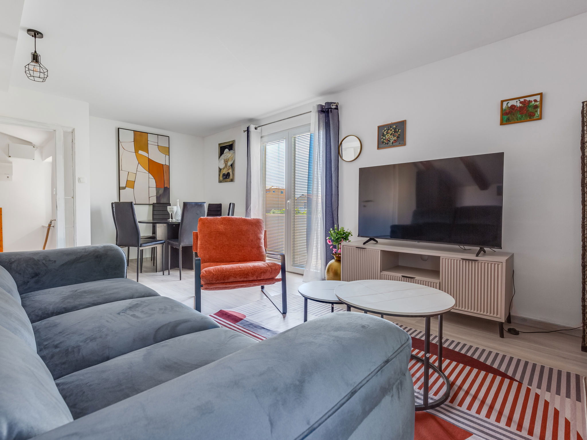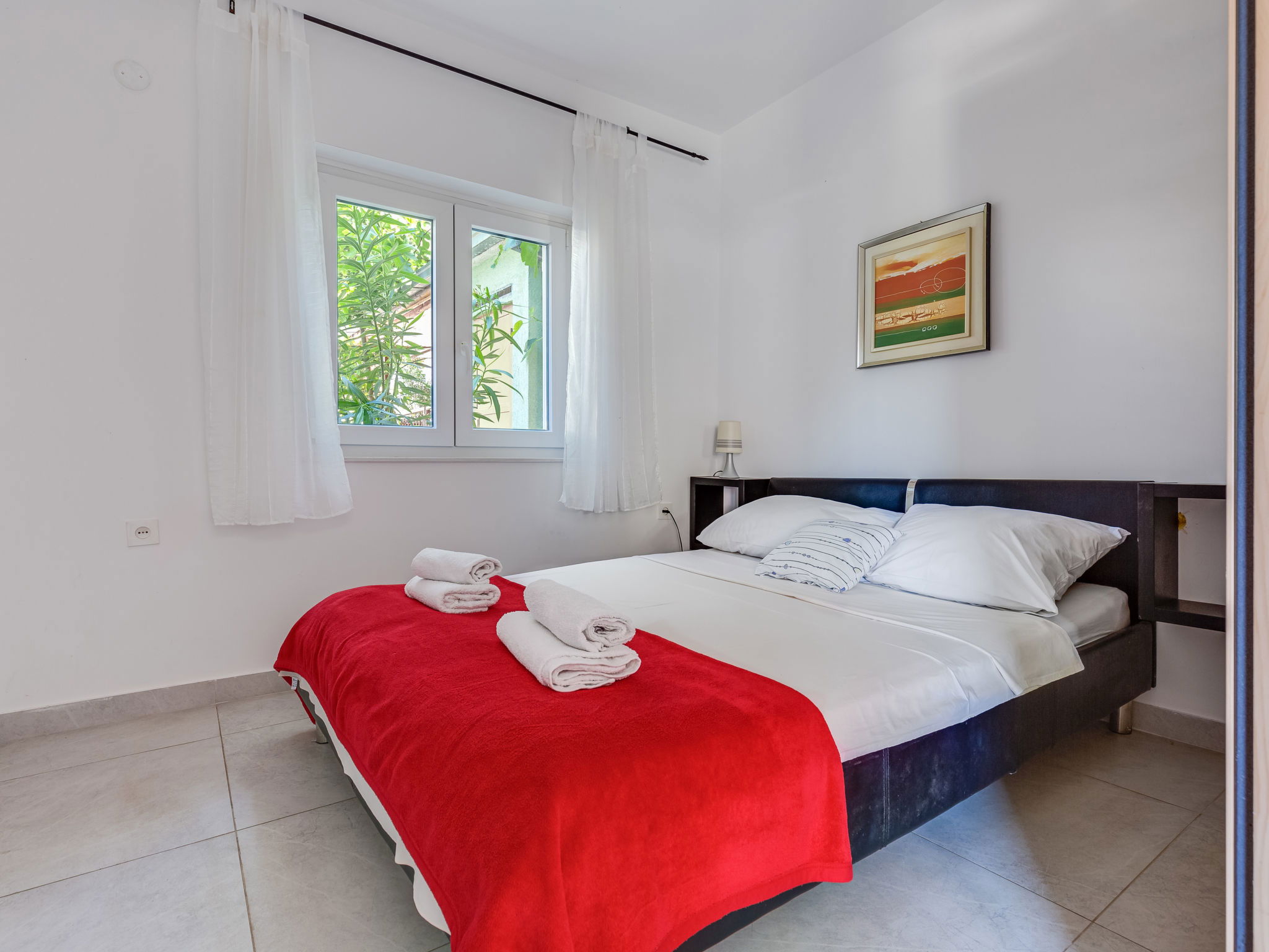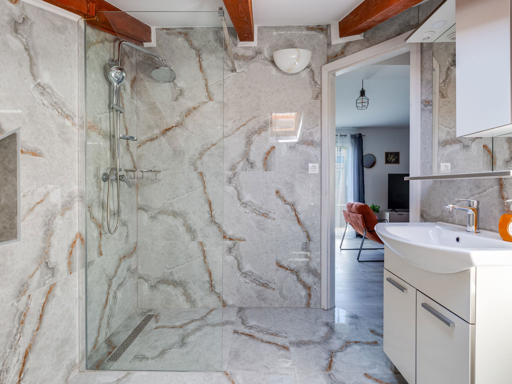 Tribunj 3 km from Vodice: Single-family house "Tina", 2 storeys. In a quiet, sunny position, 450 m from the sea, 550 m from the beach. For shared use: property 2'000 m2 (fenced), swimming pool angular (8 x 4 m, depth 130 - 160 cm, seasonal availability: 11.May. - 12.Oct.) with internal staircase. Outdoor shower, hot tub, tennis, basketball, barbecue. In the house: internet access, washing machine. Airport transfer. Parking at the house on the premises. Shop 350 m, restaurant 400 m, bus stop 3.7 km, pebble beach 950 m, rocky beach, concrete beach 550 m. Marina 550 m. Nearby attractions: NP Krka 25 km. Please note: Property ref. HR4405.128, 130 is situated on the same property. Swimming pool with hydromassage. Hot tub (extra).