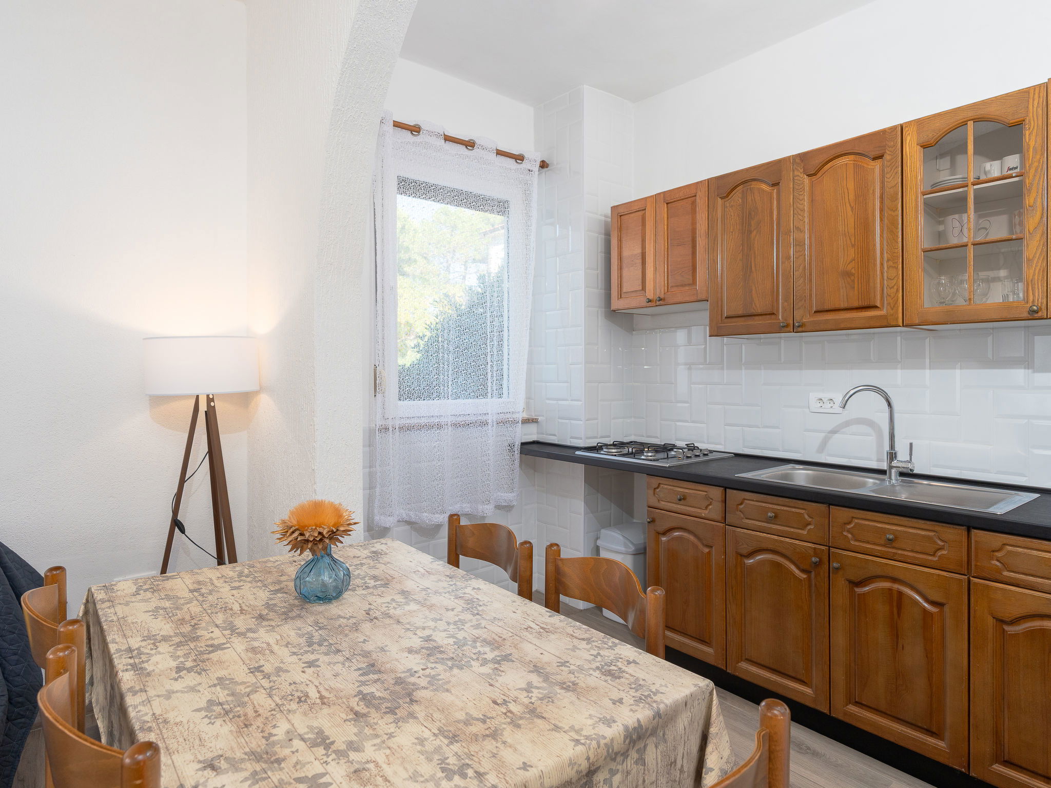 Beautiful, cosy apartment house "Vesela". Outside the resort, 1 km from the centre of Vir, in a sunny position, 400 m from the sea, 400 m from the beach, in the countryside. For shared use: garden with plants and trees, orchard, swimming pool angular (10 x 6 m, depth 150 - 170 cm, seasonal availability: 04.May. - 14.Sep.) with internal staircase. Outdoor shower, patio, garden furniture, barbecue, children's playground. In the house: internet access, WiFi. Parking at the house on the premises. Shop 500 m, restaurant 1 km, bus stop 2.2 km, shingle beach 400 m. Please note: Additional accommodations can be booked. Property ref. HR4050.123, 131 is situated on the same property. Shared bowling pitch.