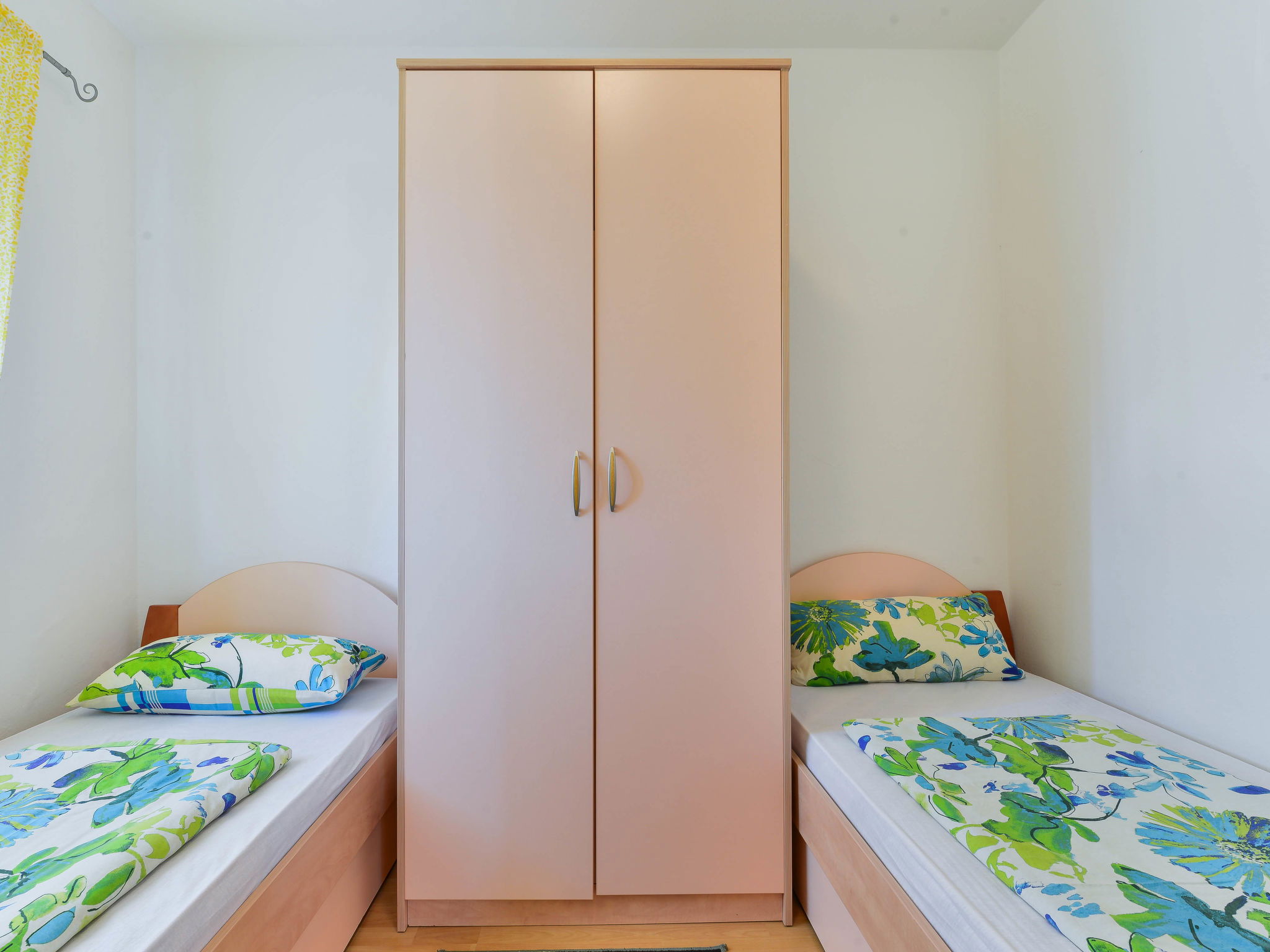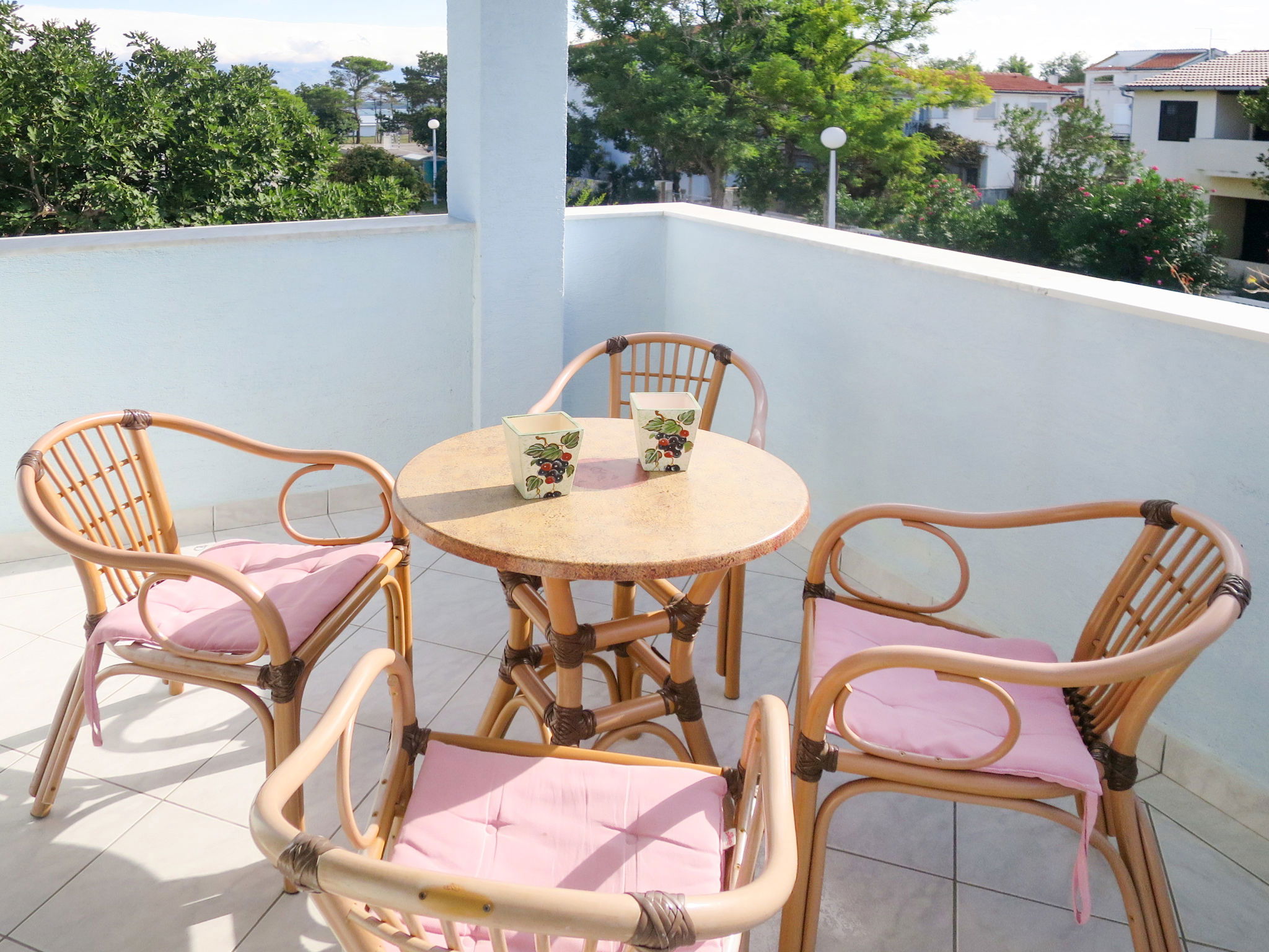 "Jadran", 3-room apartment 50 m2 on 1st floor. Living/dining room with 1 sofabed, satellite TV and air conditioning. Exit to the balcony. 1 room with 1 french bed (160 cm, length 200 cm). Exit to the balcony. 1 room with 2 beds (90 cm, length 200 cm). Exit to the balcony. Open kitchen (4 hot plates, oven, toaster, kettle, microwave, freezer, electric coffee machine). Shower/WC. No heating option. Balcony 8 m2. Balcony furniture. Facilities: washing machine. Internet (WiFi, free). Please note: non-smoking house. Maximum 1 pet/ dog allowed.